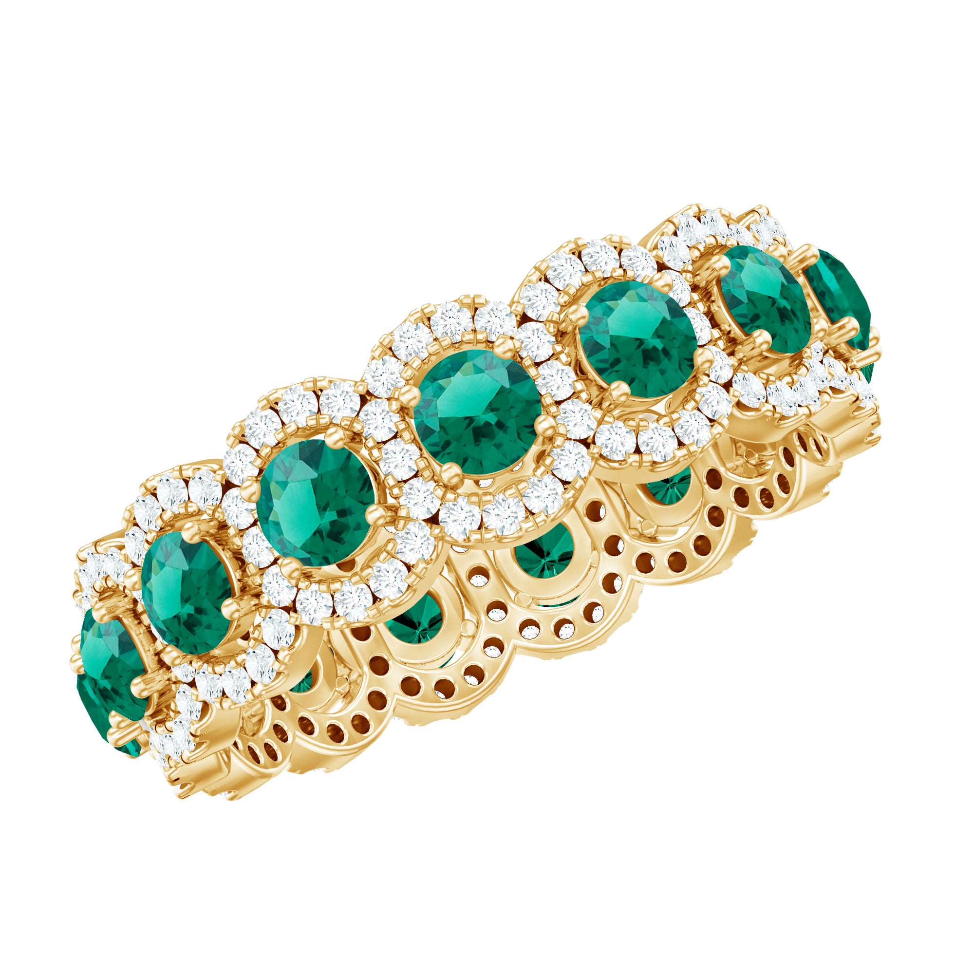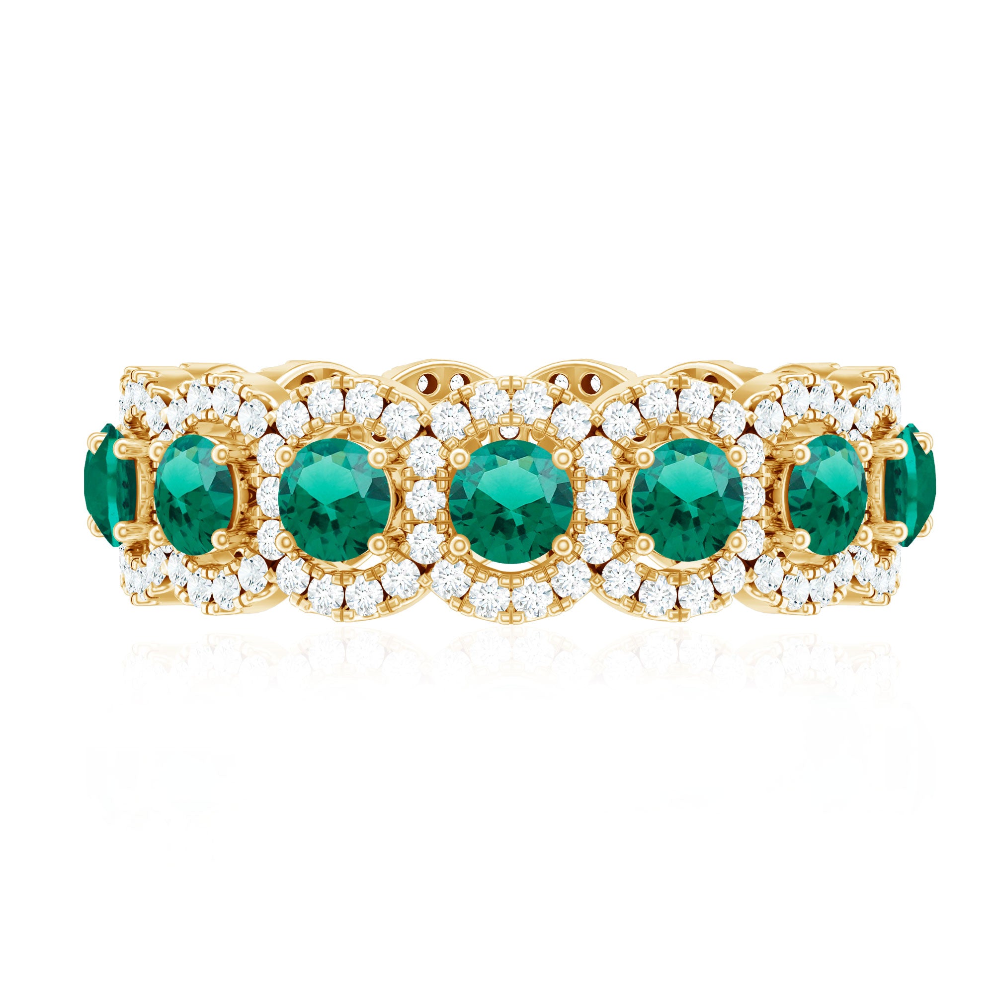 An added layer of sparkle is always a big yes! And that’s practically what drives the appeal for Gemstone Halo Rings. That’s because this style is all about sparkles and is characterized by a row of petite stones (usually diamond or moissanite) that encircle the center stone. Also, a pop of color of a colored gemstone accompanied by brilliance of diamonds/moissanite can get too hard to resist.
