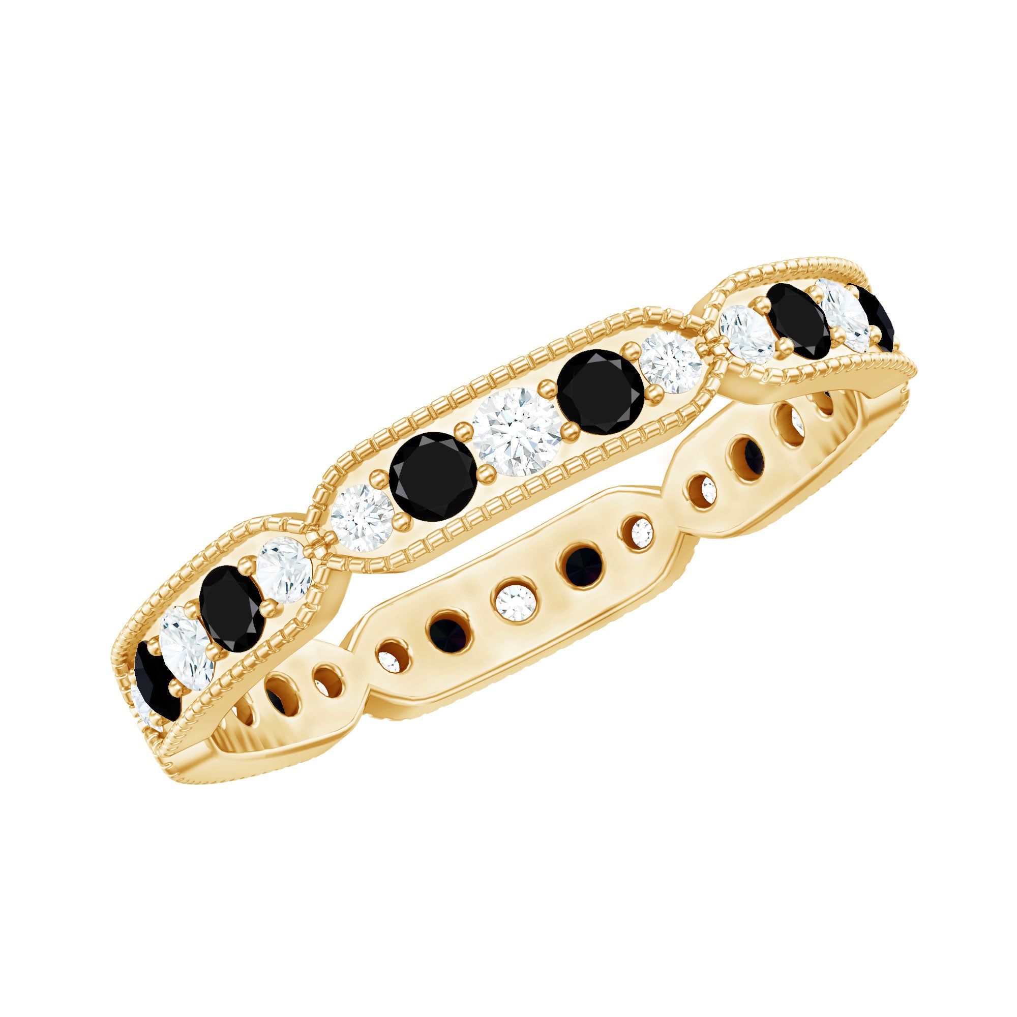 Typically, it is a type of metal ring that features gemstones set in a continuous band around the circumference of the ring. If you’re seeking something simple to flaunt regularly, a band with subtle colored stones such as Morganite, Aquamarine, Moissanite, or a Classic 14K White Gold Gemstone Band could be the one. While if you’re a little more fond of a pop of color, deeply hued stones such as Ruby, Blue Sapphire, Emerald etc., or a Yellow or Rose Gold Gemstone Band might do the job right.