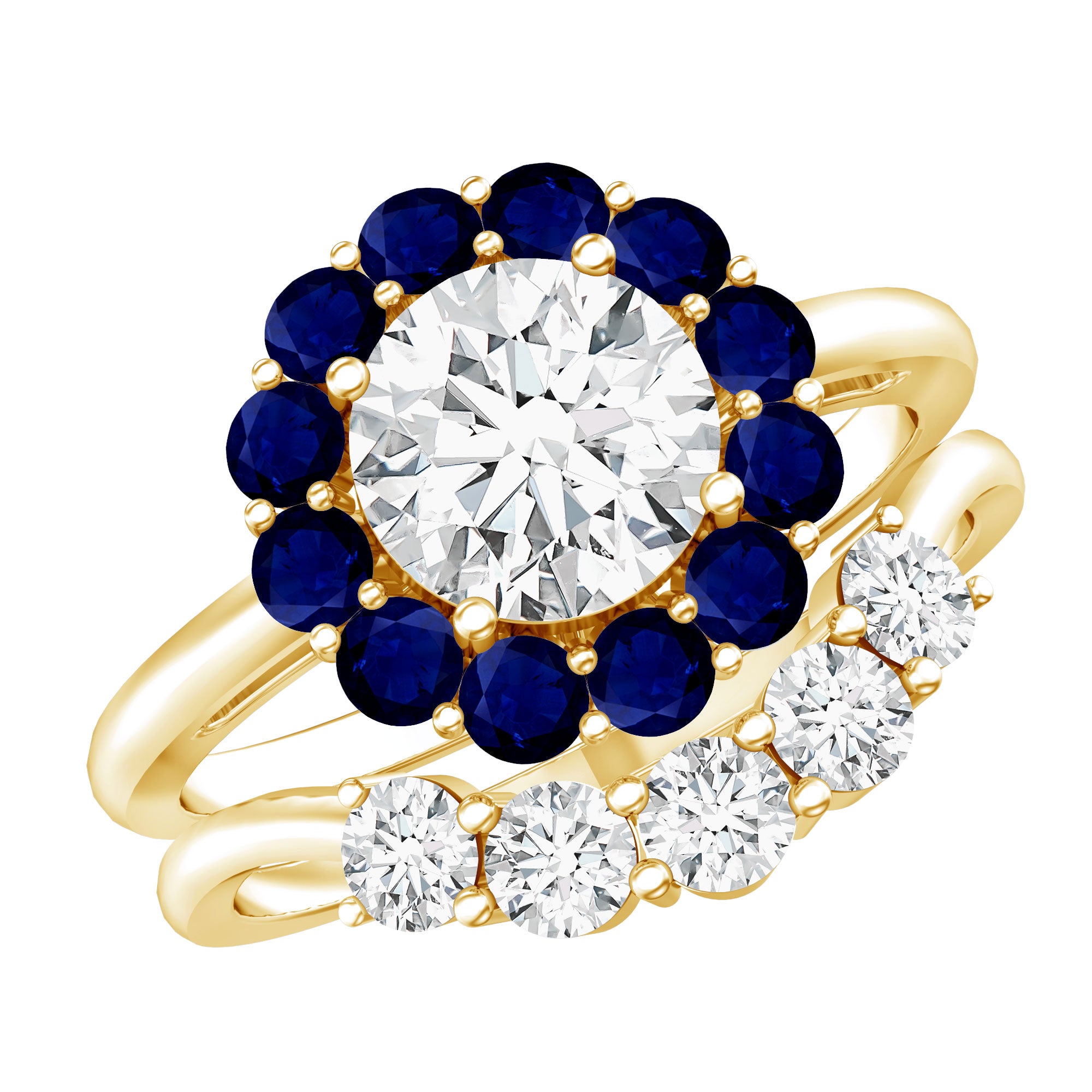 An added layer of sparkle is always a big yes! And that’s practically what drives the appeal for Gemstone Halo Rings. That’s because this style is all about sparkles and is characterized by a row of petite stones (usually diamond or moissanite) that encircle the center stone. Also, a pop of color of a colored gemstone accompanied by brilliance of diamonds/moissanite can get too hard to resist.