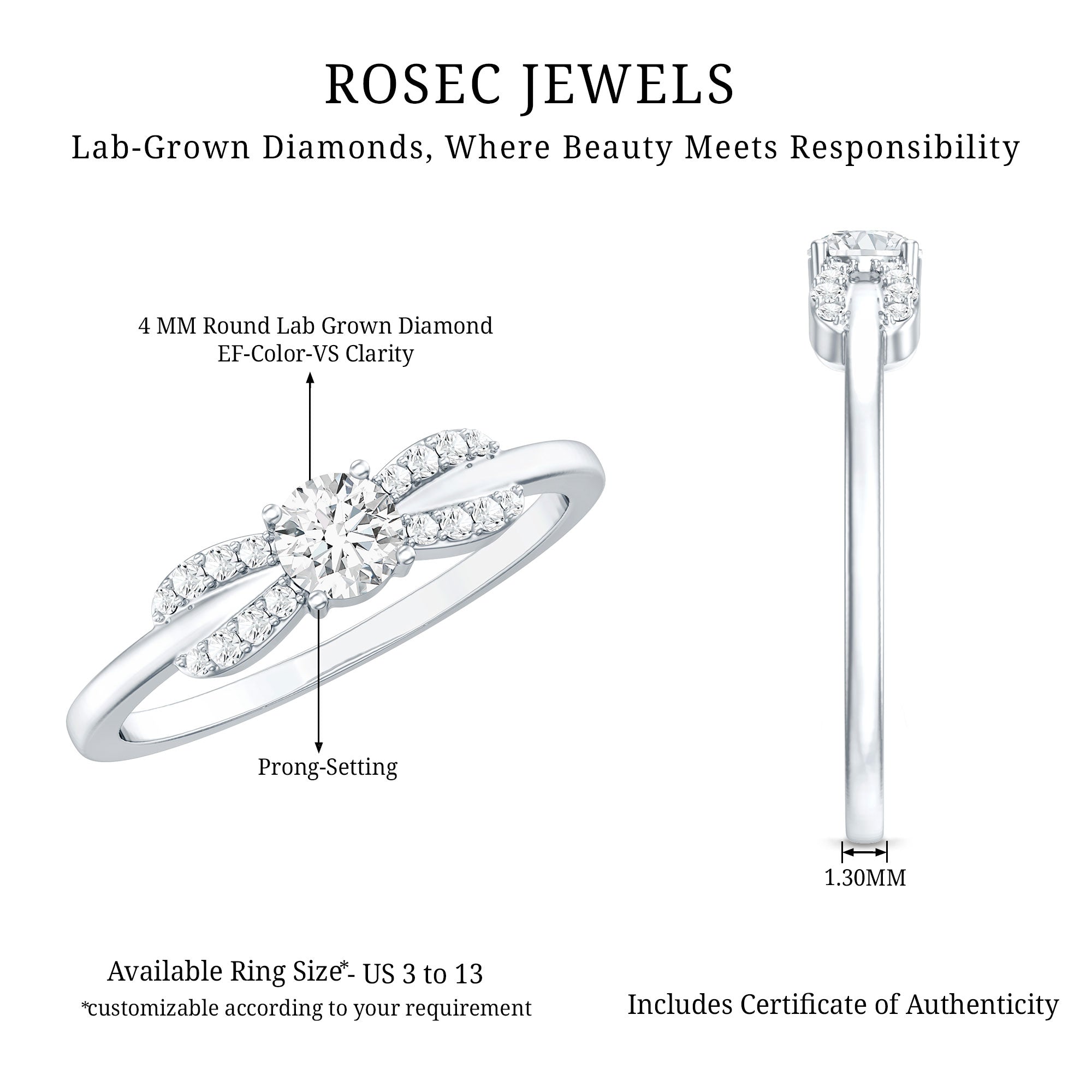 The Center Stone could be of the most traditional round shape or be on the fancier end of the spectrum (pear, marquise, etc.) or even ooze a vintage vibe (Asscher, emerald, etc). You’d be surprised to note what big a difference the shape plays in defining the aesthetics of your Solitaire Ring. The options are endless and everything ultimately boils down to your preference.