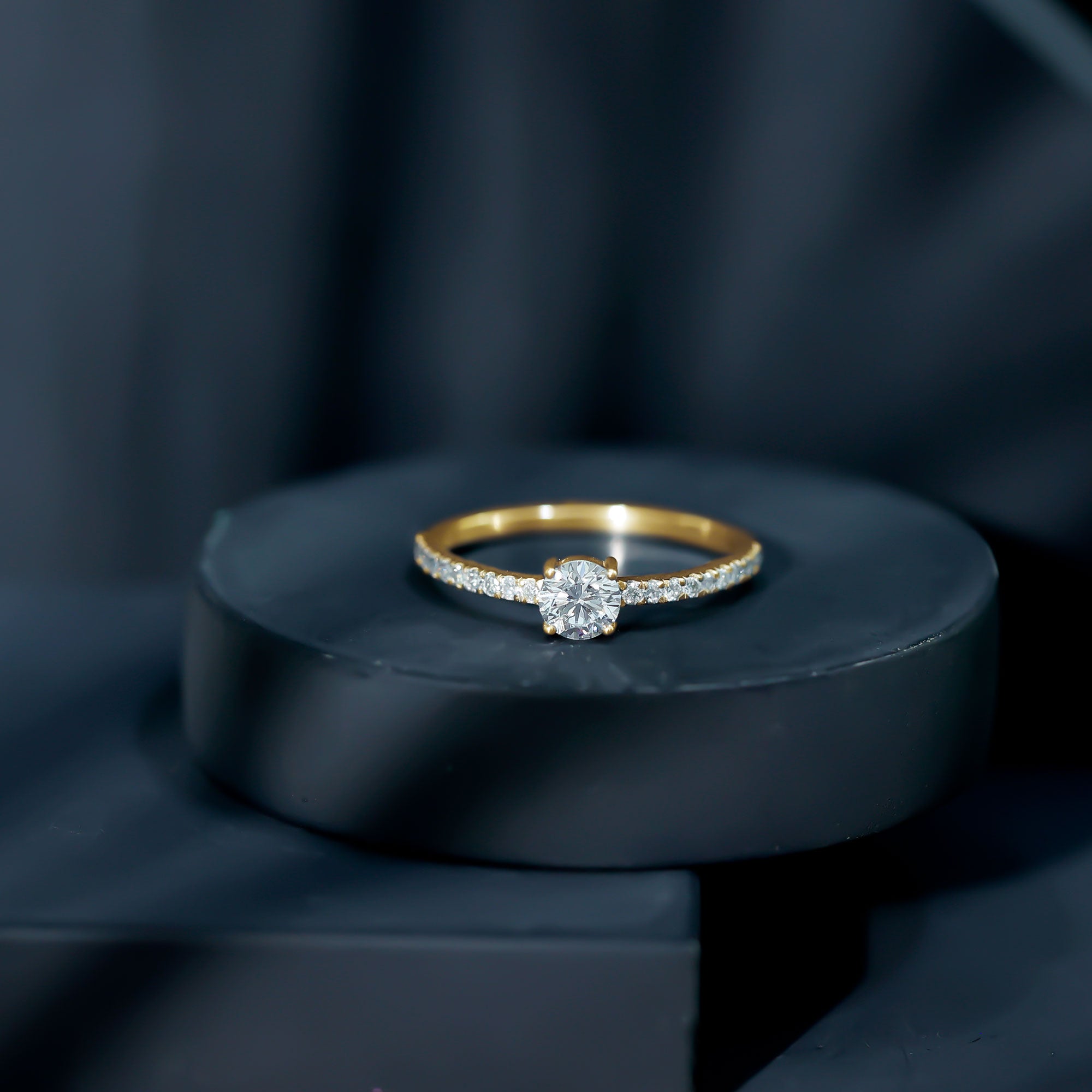 The Center Stone could be of the most traditional round shape or be on the fancier end of the spectrum (pear, marquise, etc.) or even ooze a vintage vibe (Asscher, emerald, etc). You’d be surprised to note what big a difference the shape plays in defining the aesthetics of your Solitaire Ring. The options are endless and everything ultimately boils down to your preference.