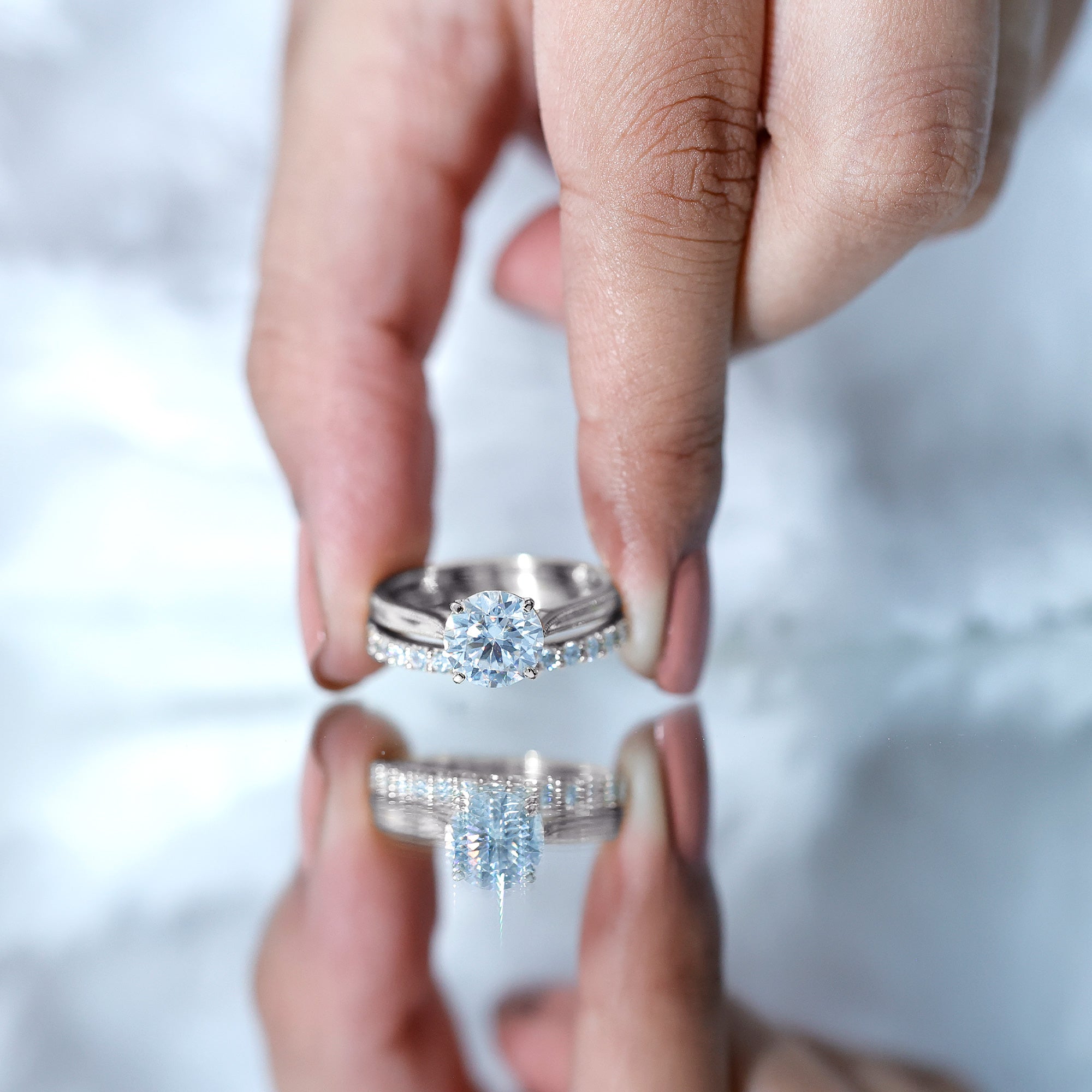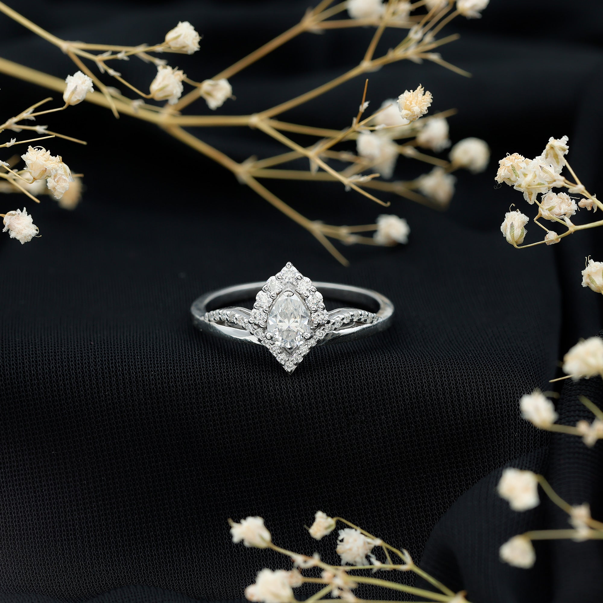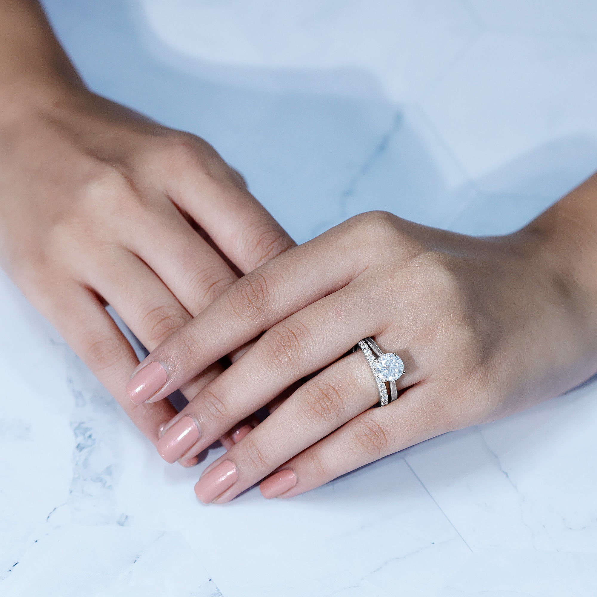 An added layer of sparkle is always a big yes! And that’s practically what drives the appeal for Gemstone Halo Rings. That’s because this style is all about sparkles and is characterized by a row of petite stones (usually diamond or moissanite) that encircle the center stone. Also, a pop of color of a colored gemstone accompanied by brilliance of diamonds/moissanite can get too hard to resist.