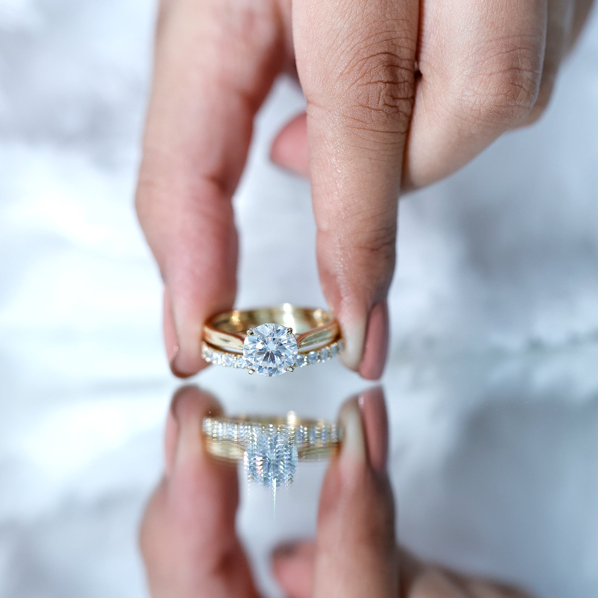 Nothing commemorates eternal love better than gemstone eternity bands. The style itself is enough to speak of that. Well, Eternity Bands feature a row of uniformly sized gemstones studded all along the band in an unbreakable circle (reflecting on your everlasting love). Eternity Bands in our collection can be adorned with the most classic colored stones or even more flashy ones, all crafted in white, yellow, and rose gold.