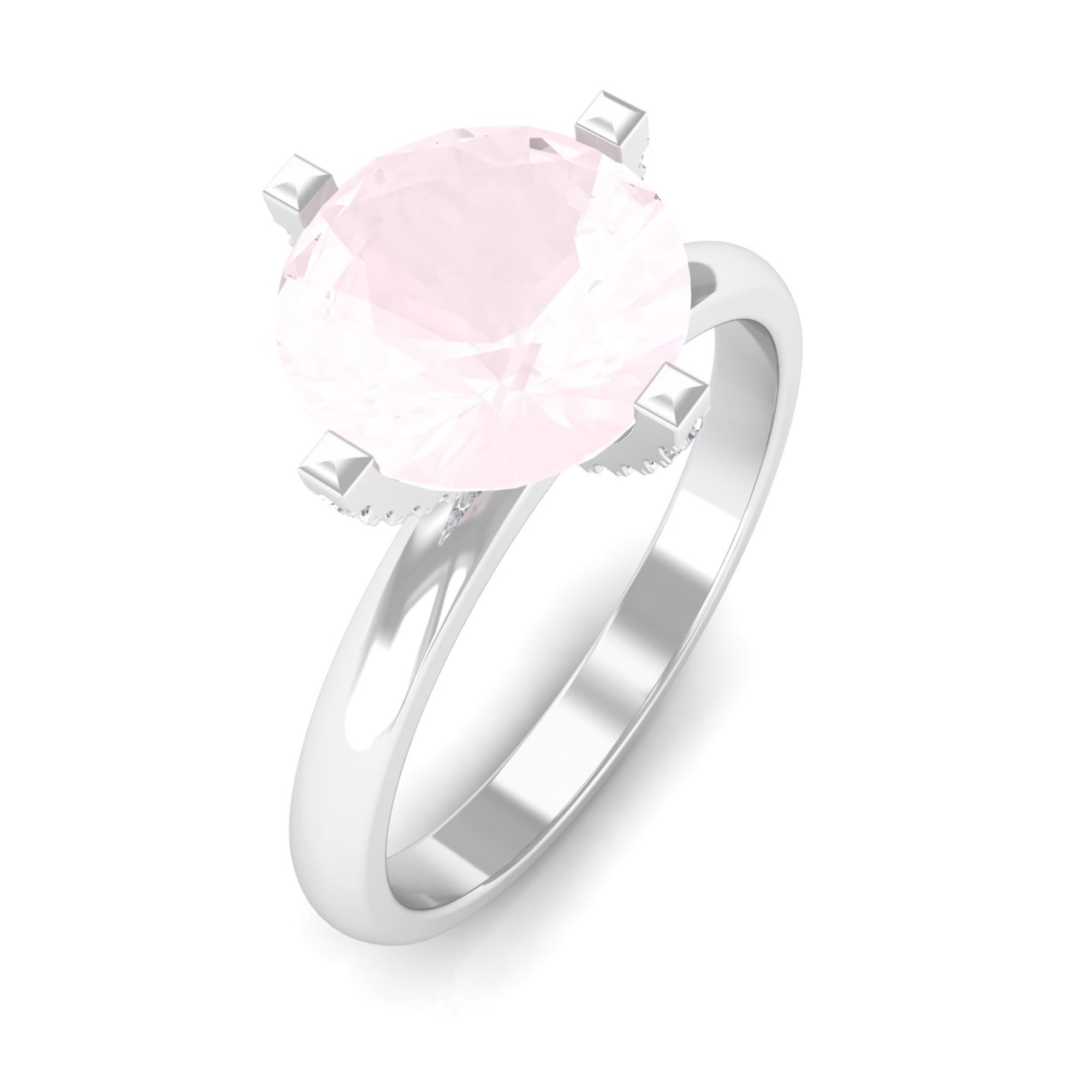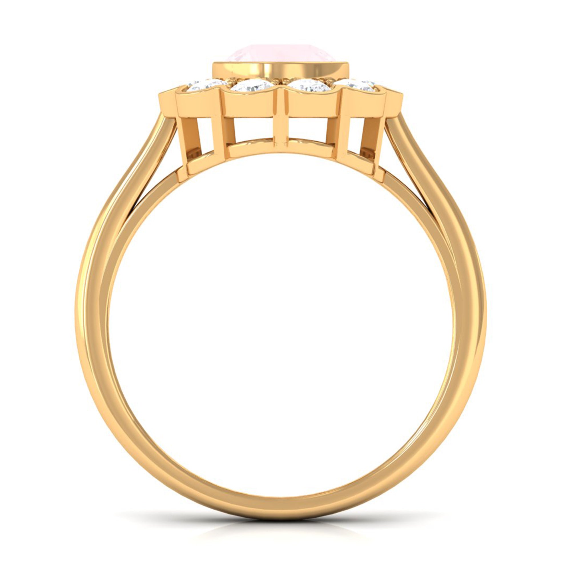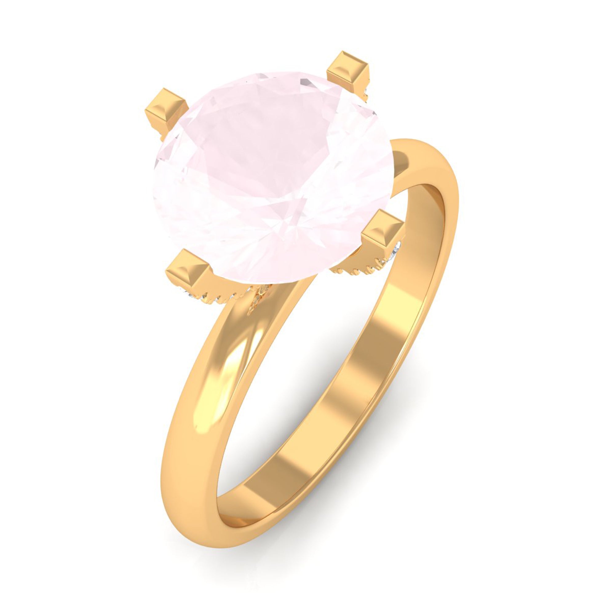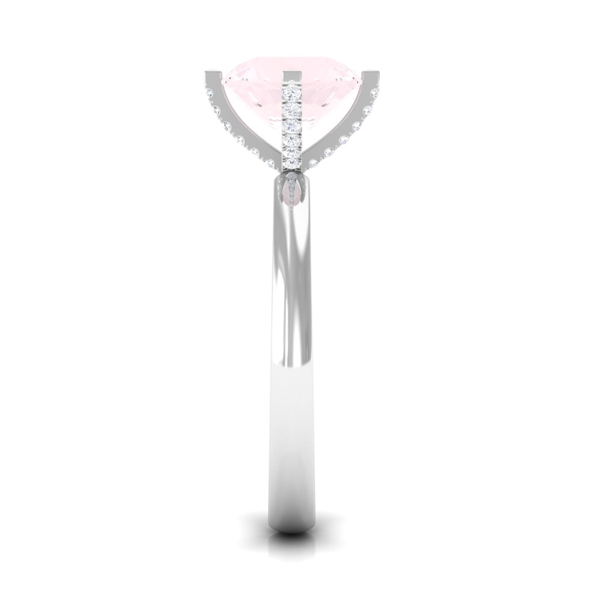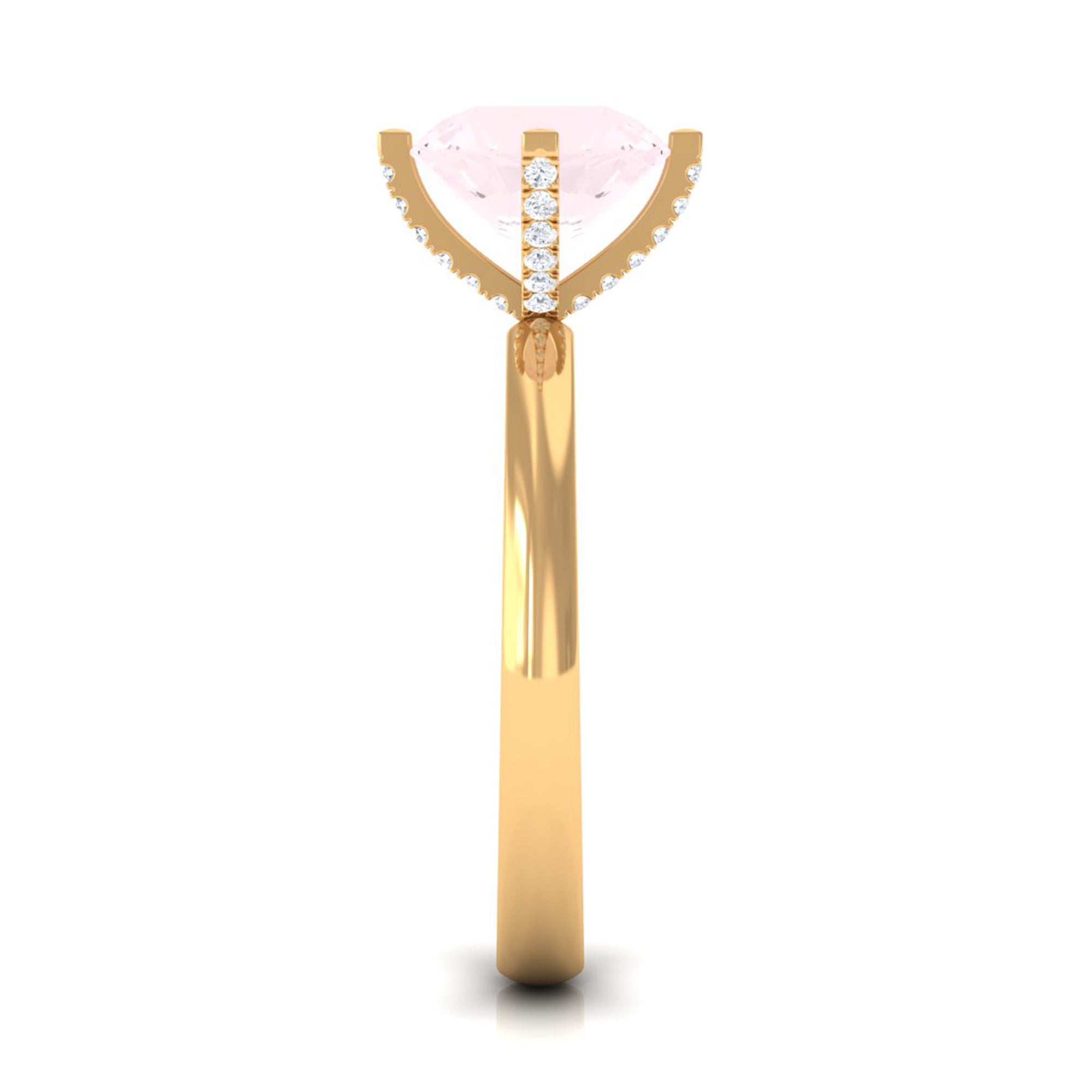 Just like the name suggests, the Beautiful Center Stone of Rose Quartz solely takes all the limelight in this ring style. Its understated yet evergreen appeal makes it a favorite for those looking for a Classic Rose Quartz Engagement Ring. Moreover, it is quite versatile in the sense that it caters to many aesthetics. While Round Shape Rose Quartz Rings ooze a conventional charm, those fashioned in fancier shapes like pear, marquise, or princess appear more flamboyant. On the other hand, shapes like an Asscher, Emerald, or Cushion appeal to those on the lookout for a subtly Vintage Rose Quartz Ring.