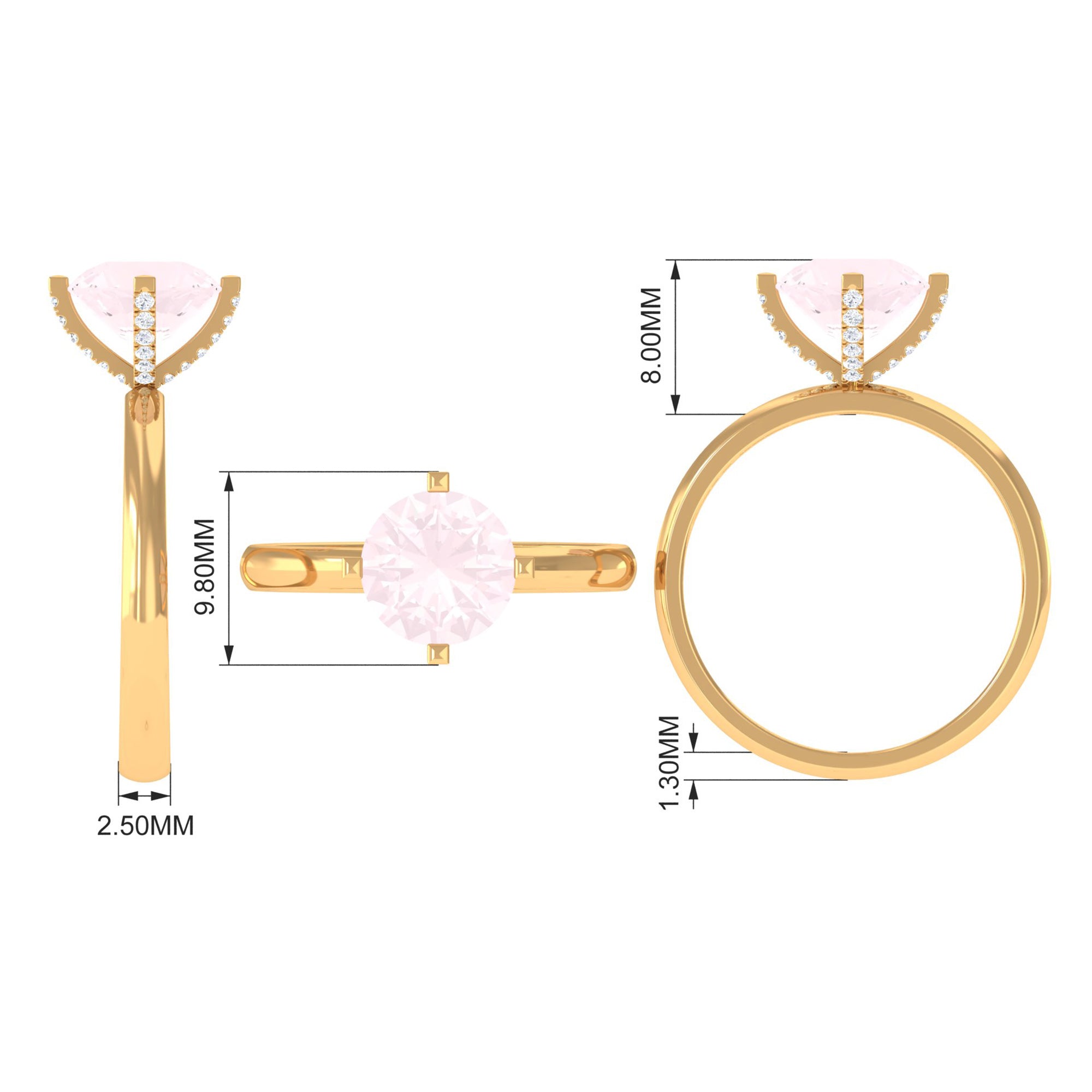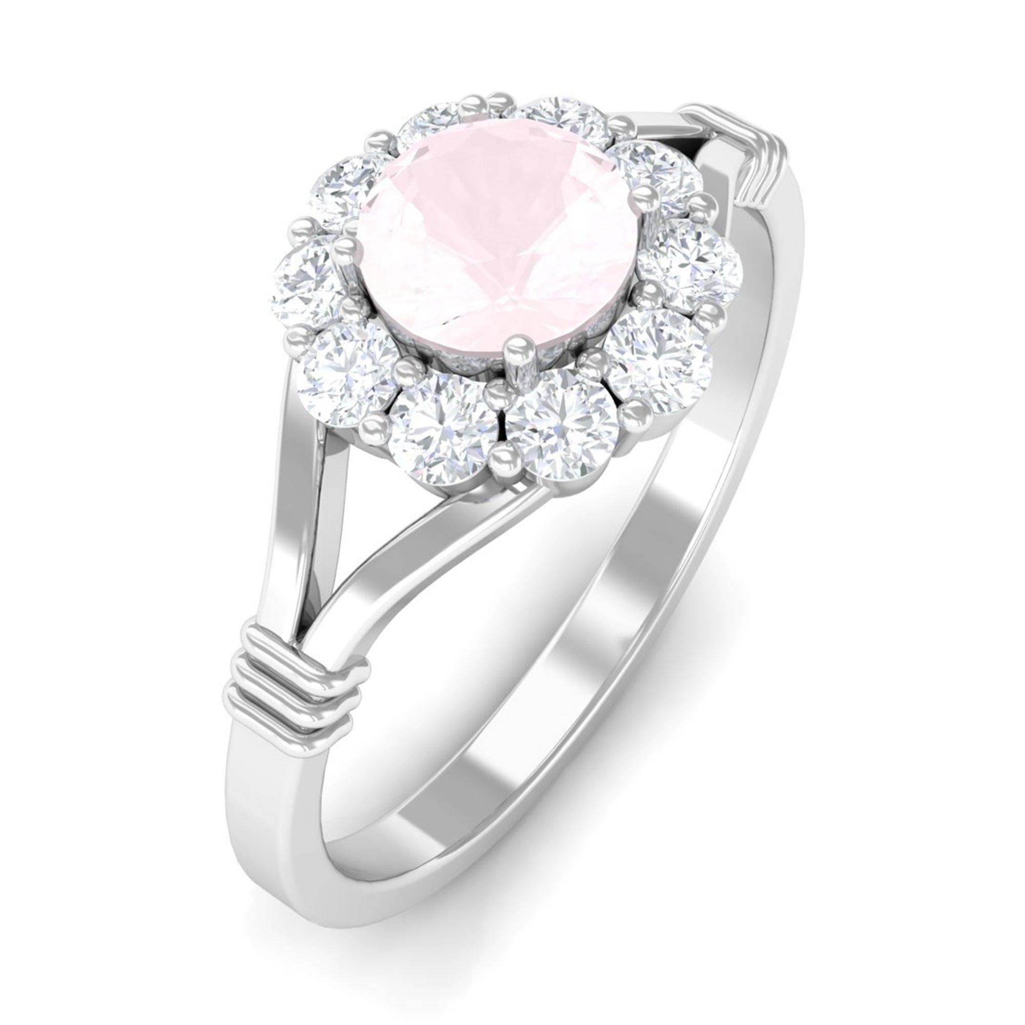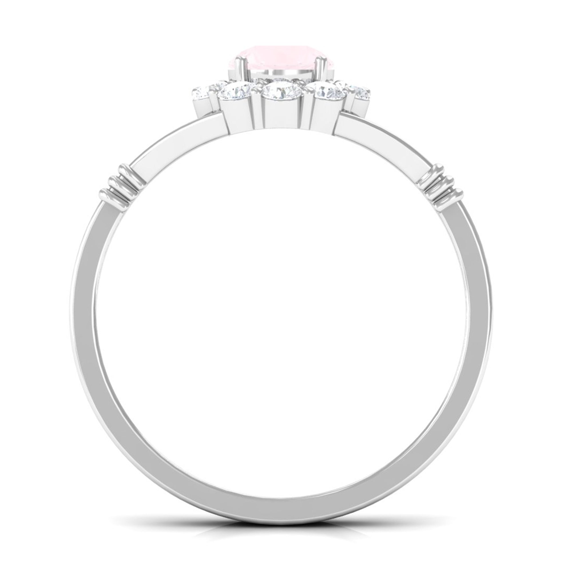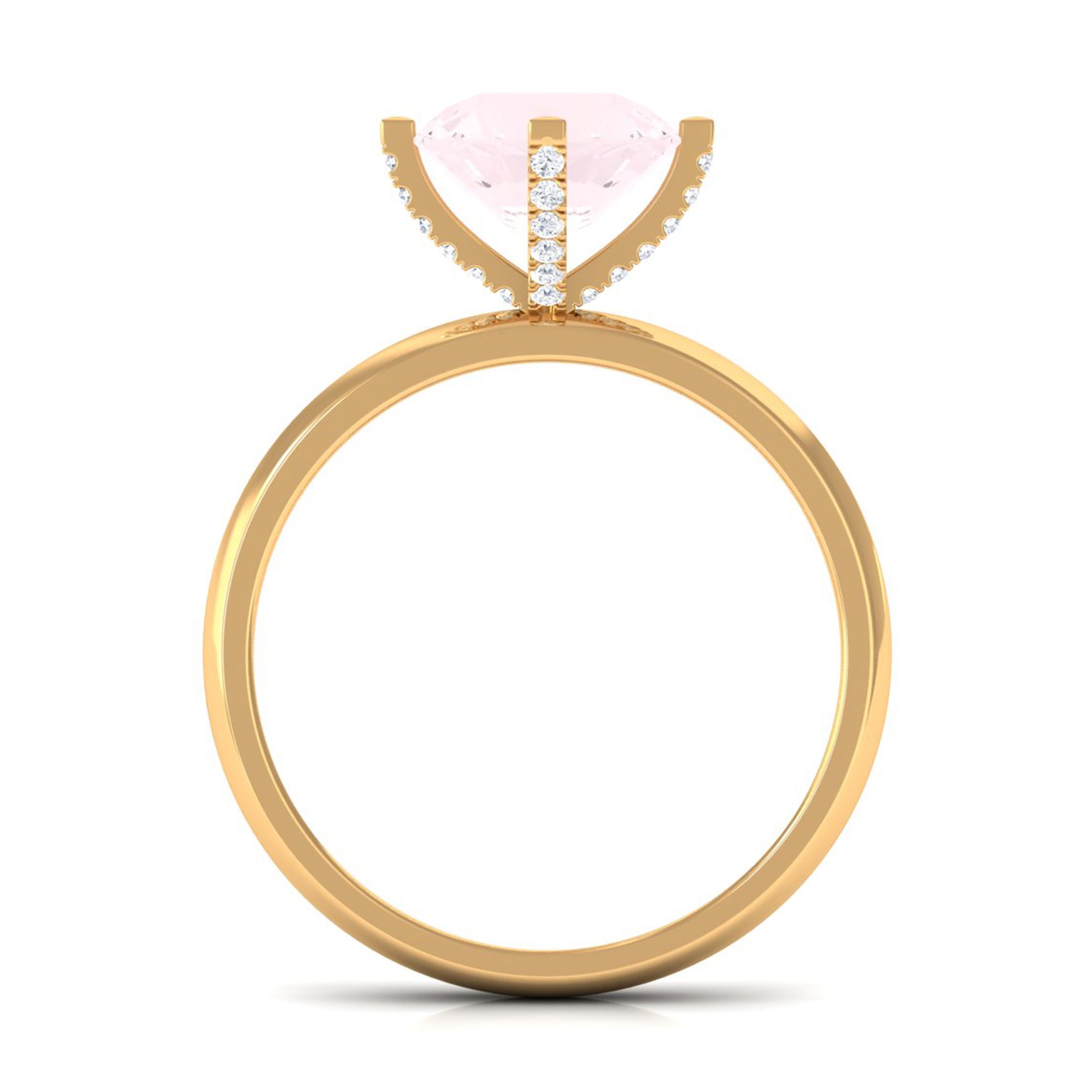 Just like the name suggests, the Beautiful Center Stone of Rose Quartz solely takes all the limelight in this ring style. Its understated yet evergreen appeal makes it a favorite for those looking for a Classic Rose Quartz Engagement Ring. Moreover, it is quite versatile in the sense that it caters to many aesthetics. While Round Shape Rose Quartz Rings ooze a conventional charm, those fashioned in fancier shapes like pear, marquise, or princess appear more flamboyant. On the other hand, shapes like an Asscher, Emerald, or Cushion appeal to those on the lookout for a subtly Vintage Rose Quartz Ring.