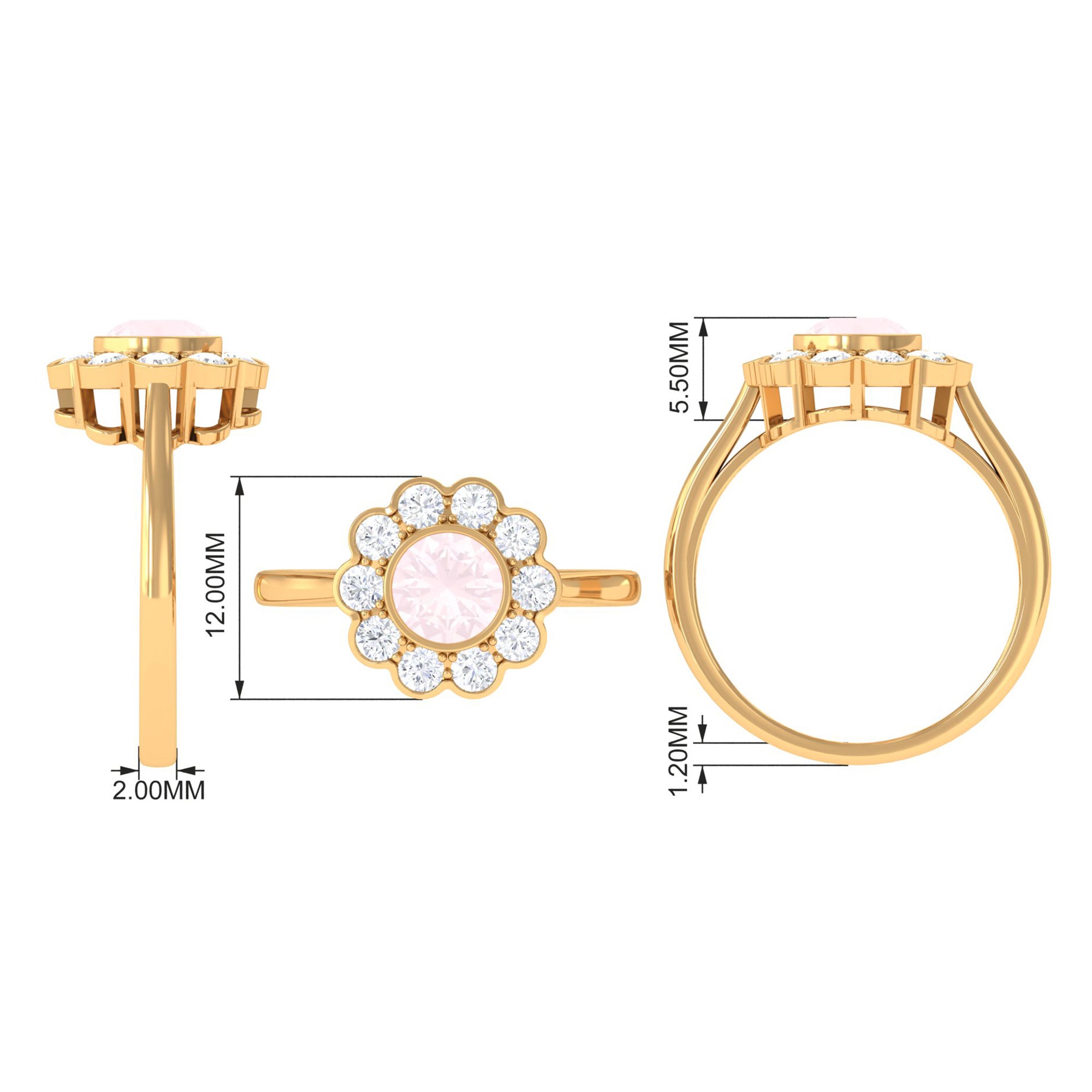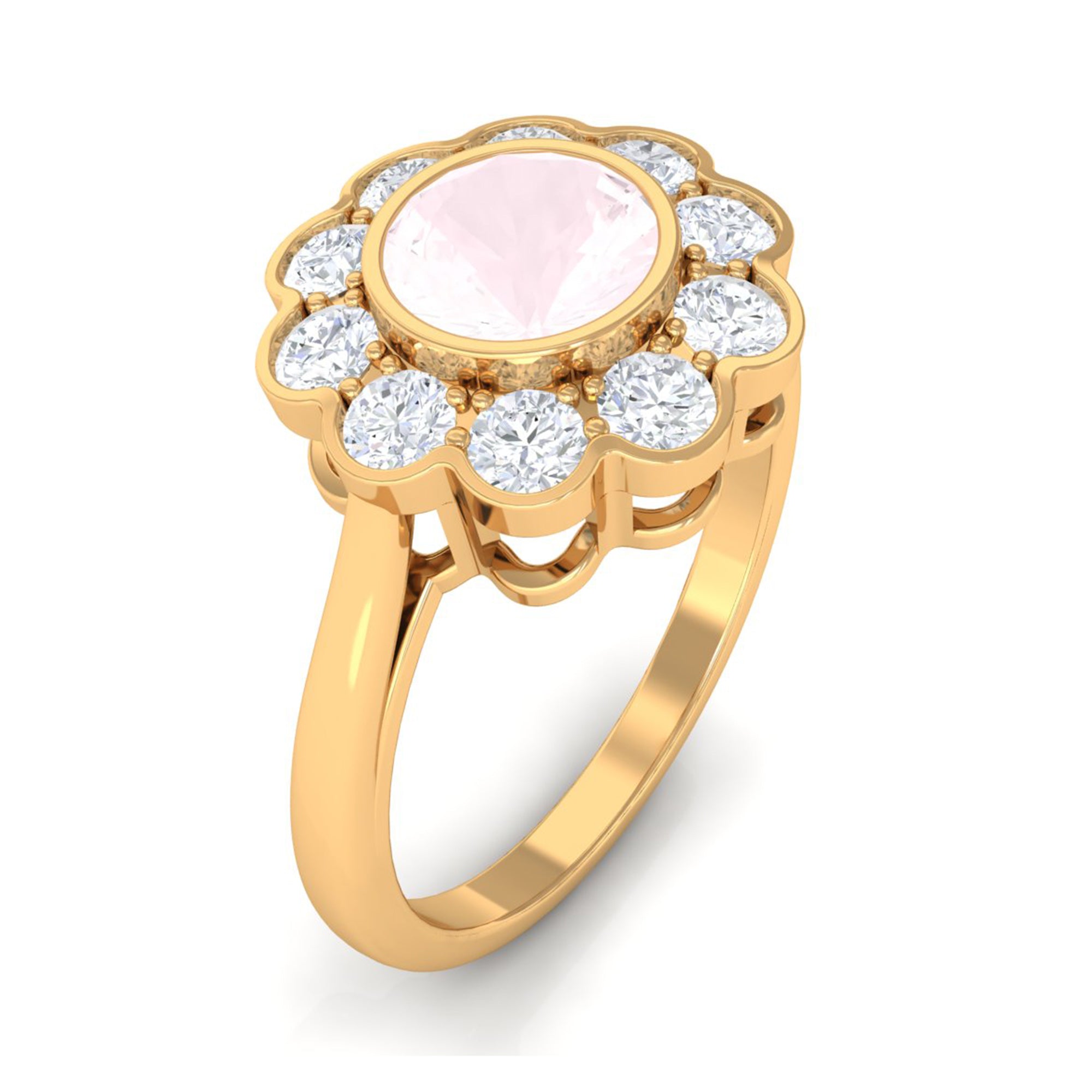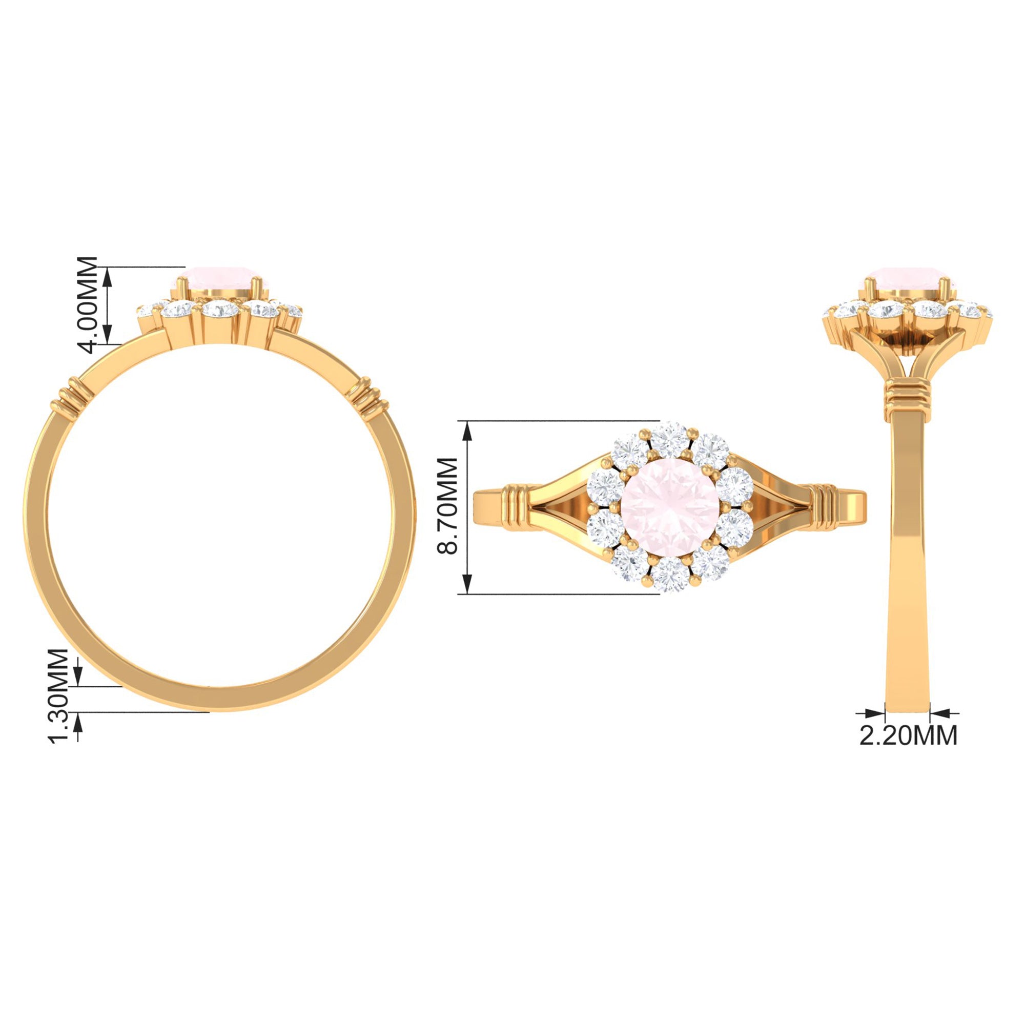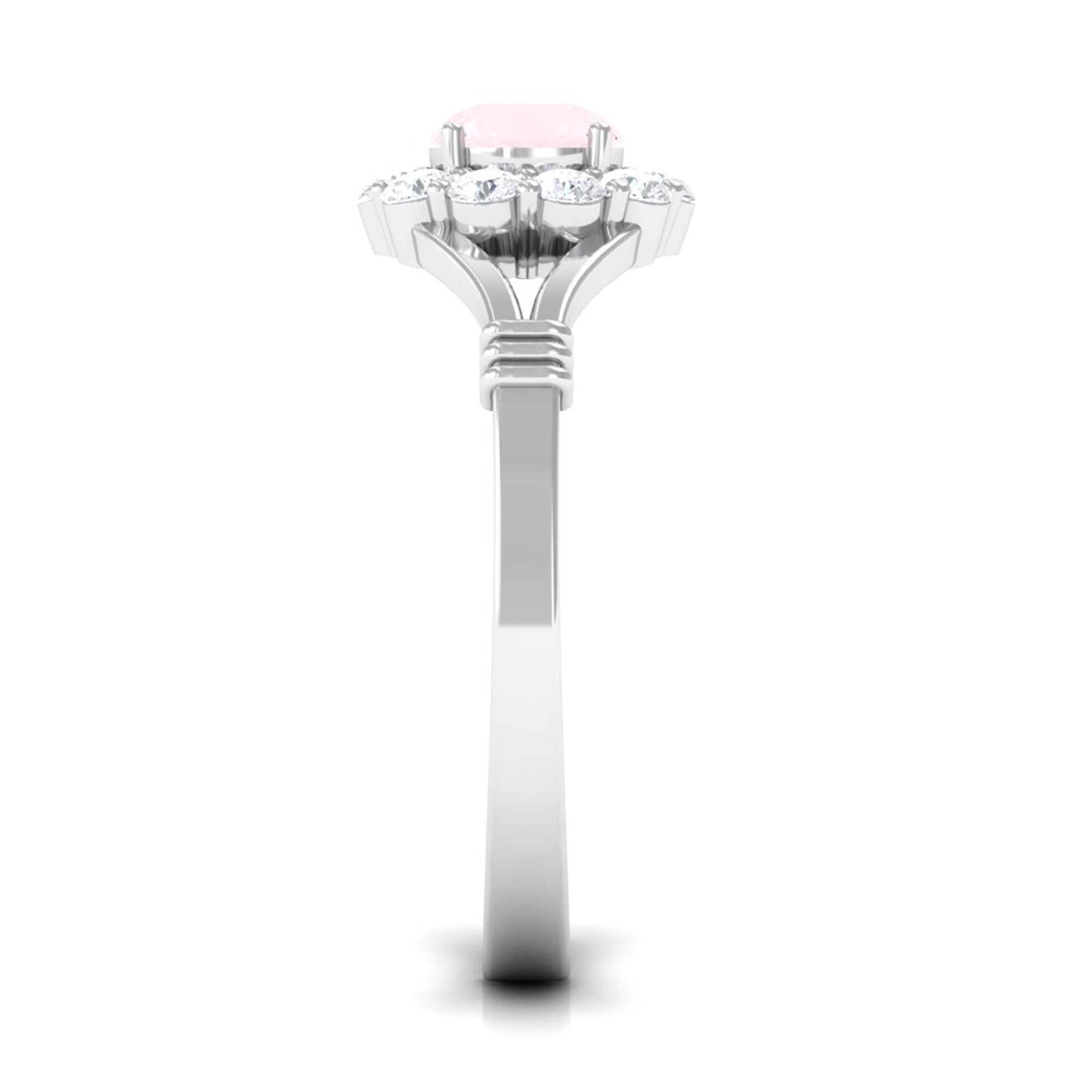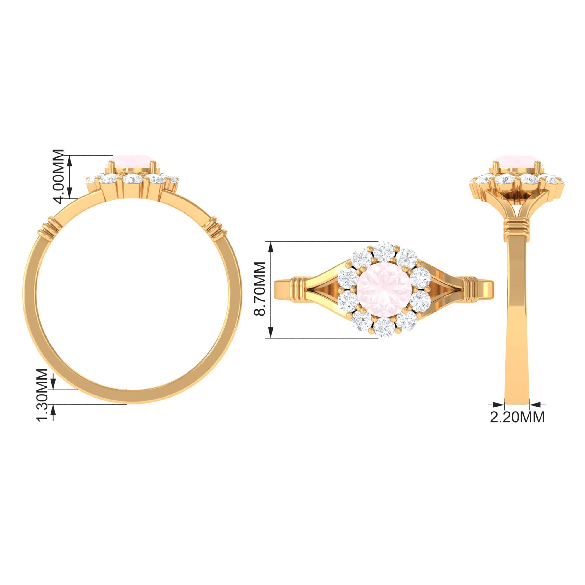 Just like the name suggests, the Beautiful Center Stone of Rose Quartz solely takes all the limelight in this ring style. Its understated yet evergreen appeal makes it a favorite for those looking for a Classic Rose Quartz Engagement Ring. Moreover, it is quite versatile in the sense that it caters to many aesthetics. While Round Shape Rose Quartz Rings ooze a conventional charm, those fashioned in fancier shapes like pear, marquise, or princess appear more flamboyant. On the other hand, shapes like an Asscher, Emerald, or Cushion appeal to those on the lookout for a subtly Vintage Rose Quartz Ring.