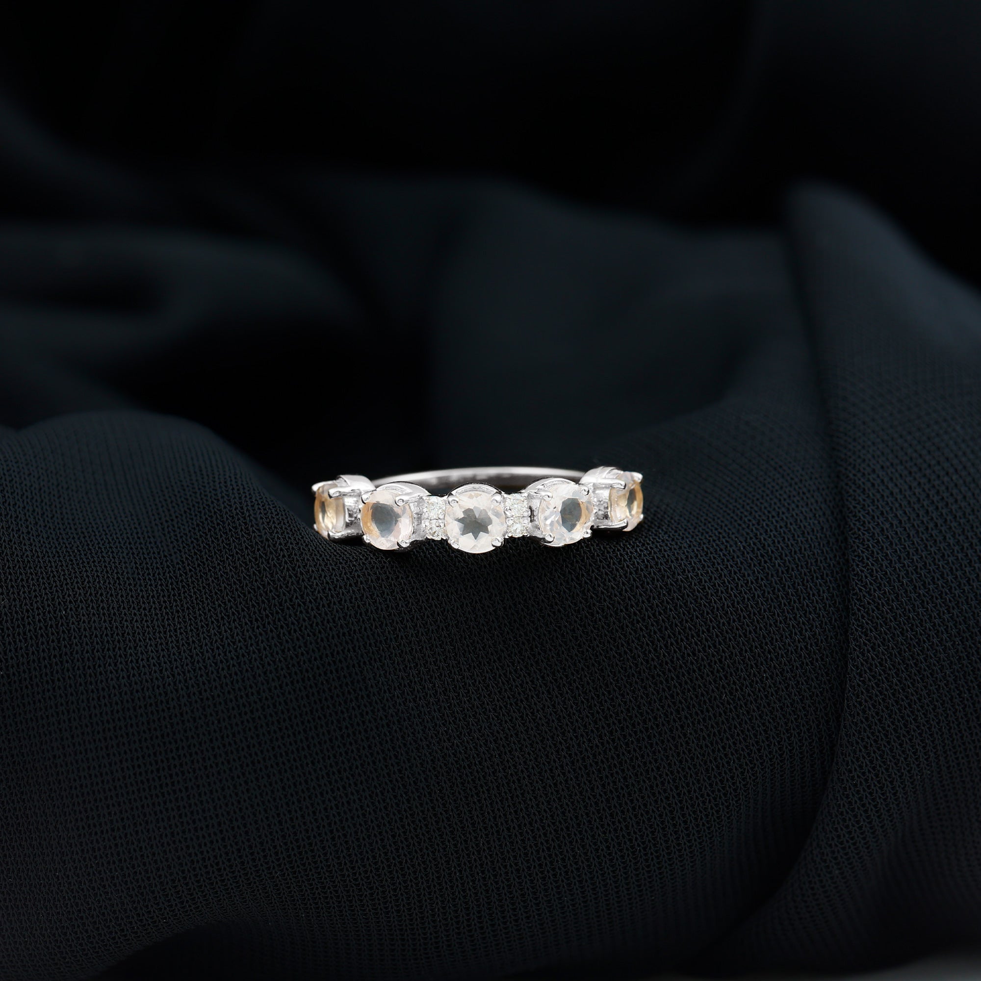 While cleaning rose quartz wedding band make use of lukewarm water and mild cleaning detergent. Soft toothbrush can be used to clean the underside of the gemstones.