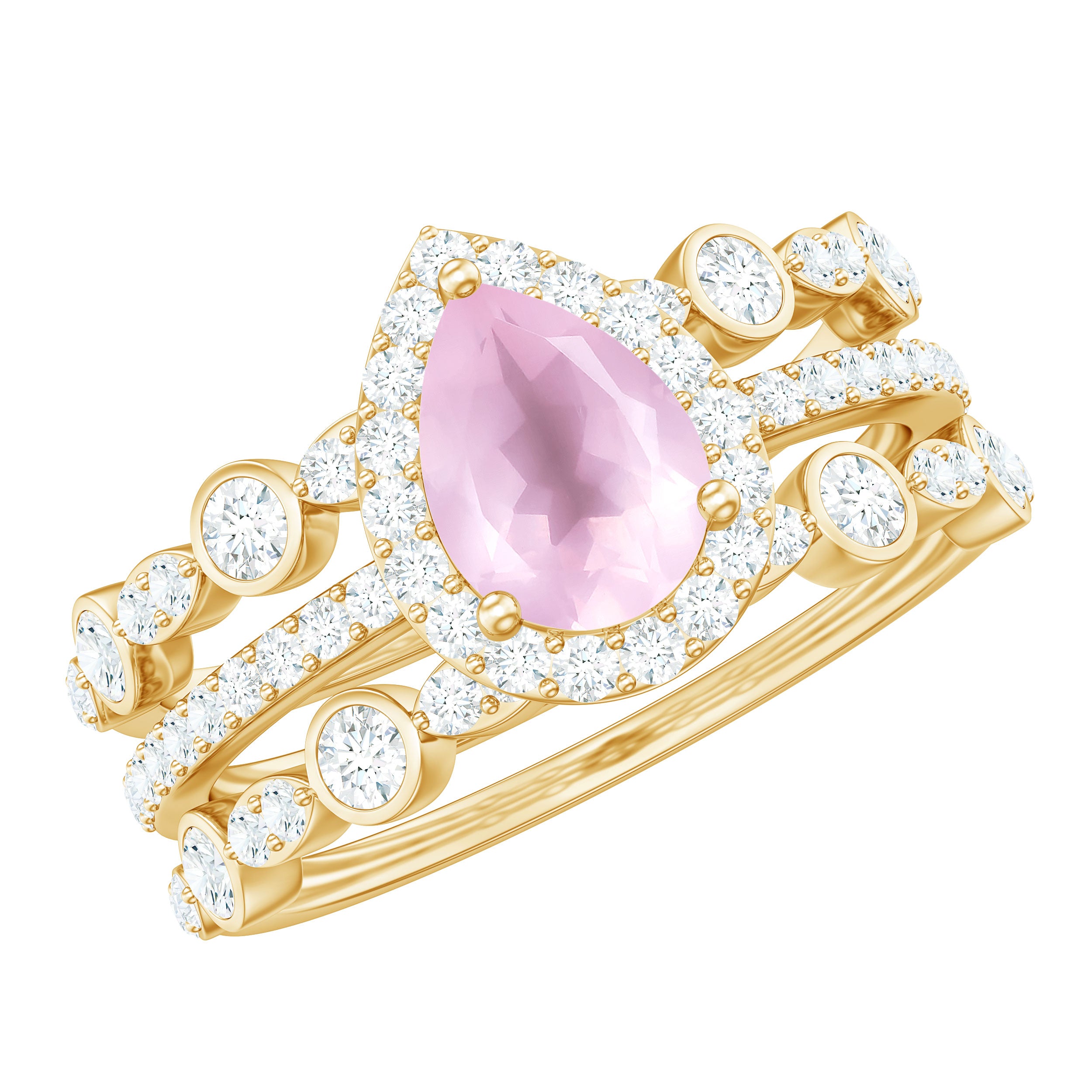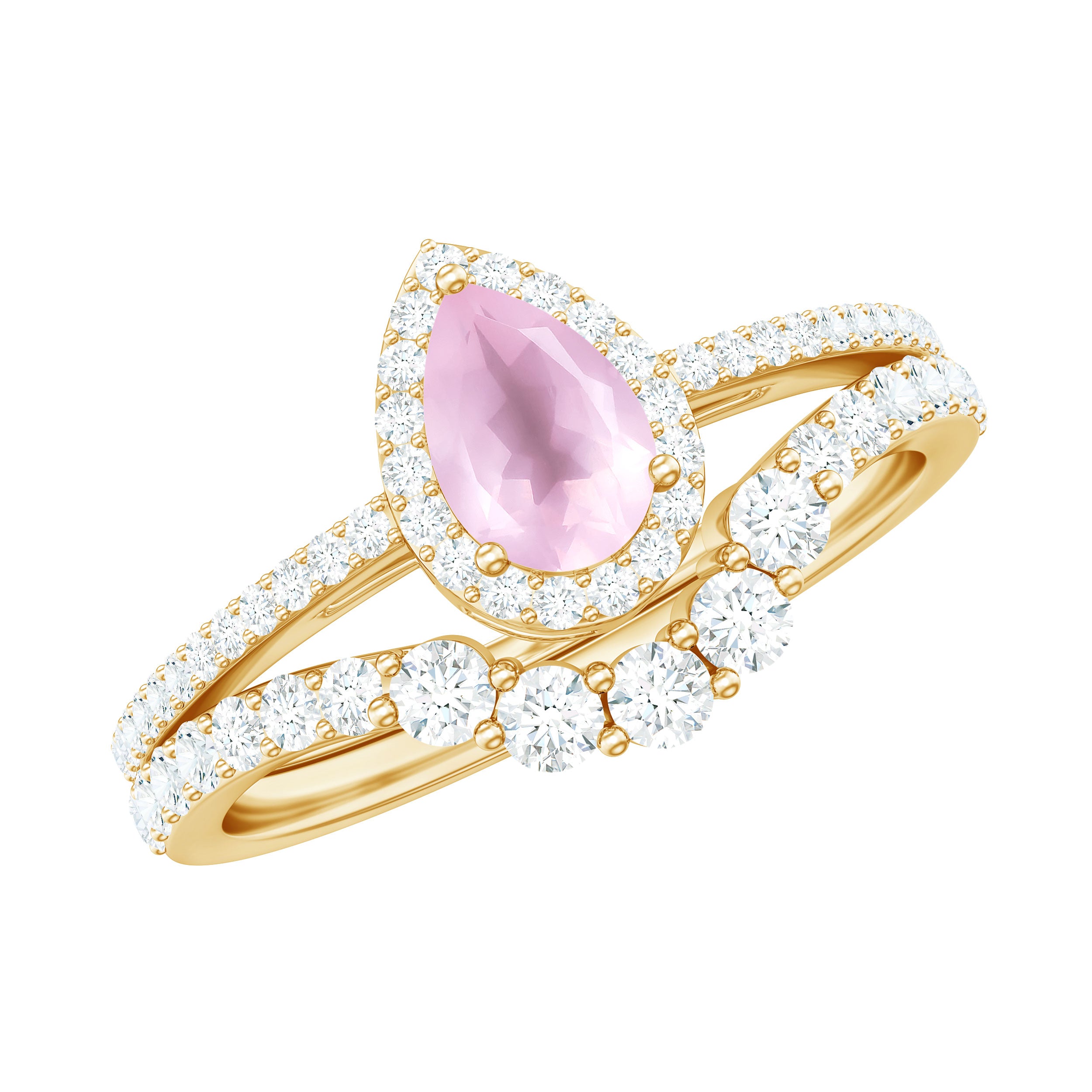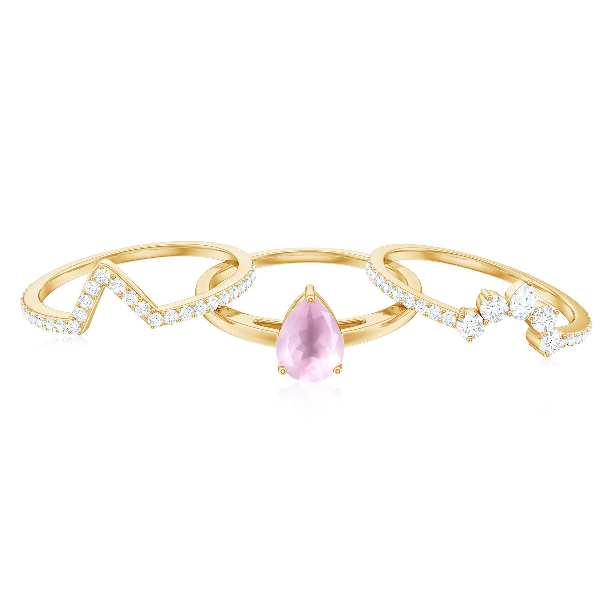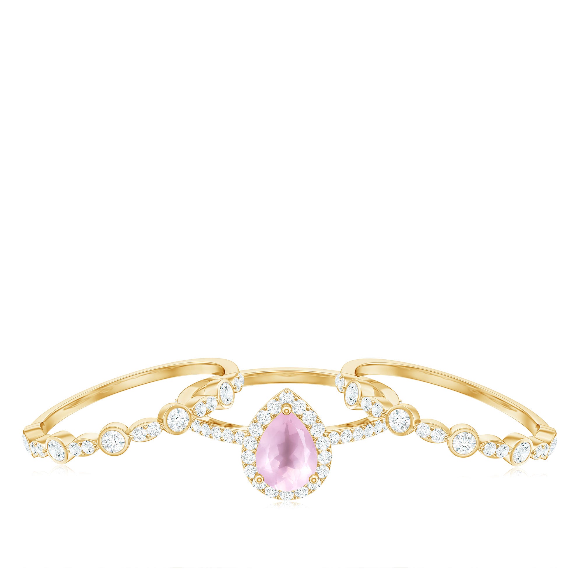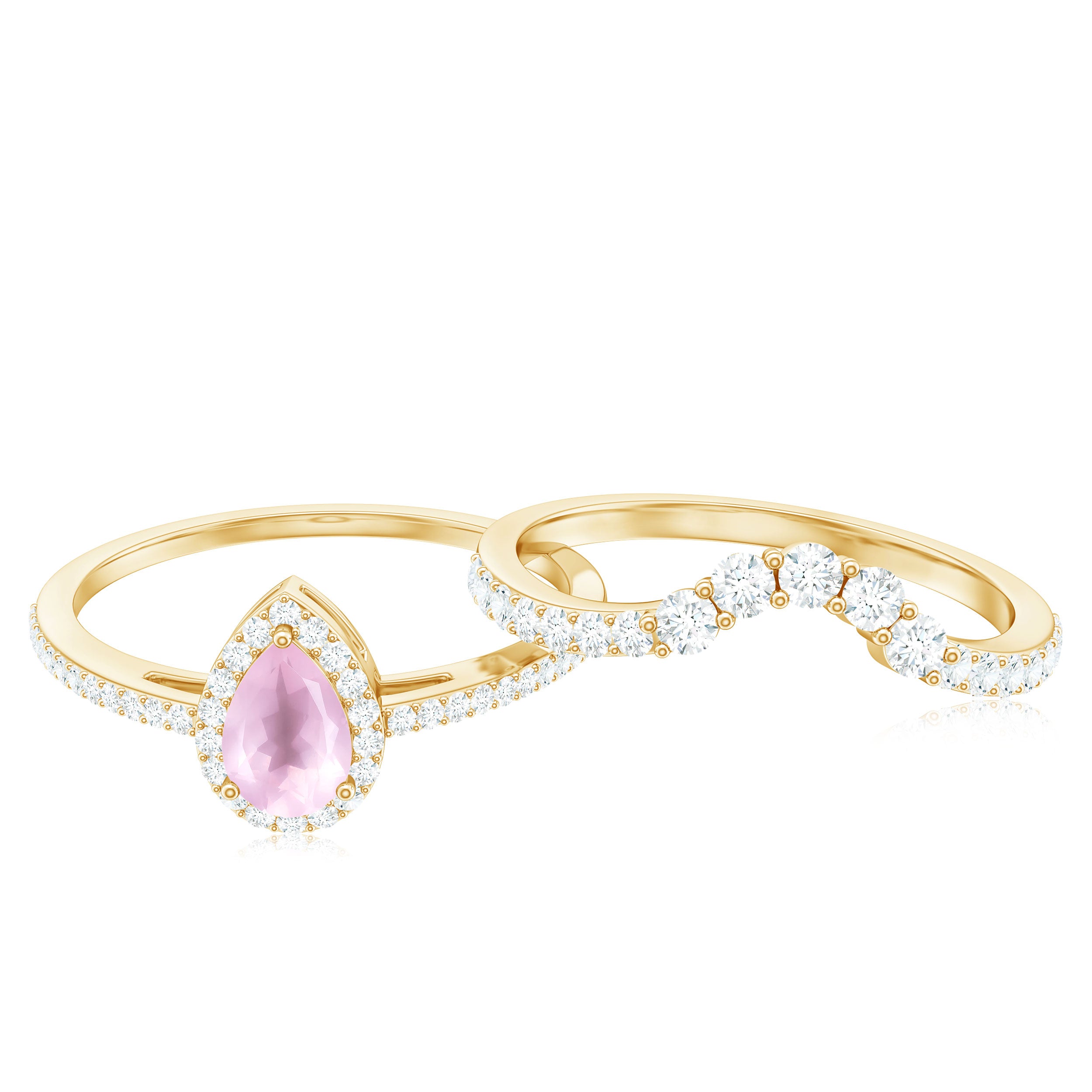 The delicate and soft pink hues of rose quartz has motivated our artisans to combine them with the alluring colors of gold further helping us in curating fantastic rose quartz band in white gold, yellow gold and rose gold. A wide diversity in our wedding ring design is effectively achieved by different rose quartz shapes, gemstone settings and metal embellishments. Therefore, Rosec Jewels’ collection of adorable rose quartz band rings are best suited for women with eyes for delicate details and romantic hues of the rose quartz.