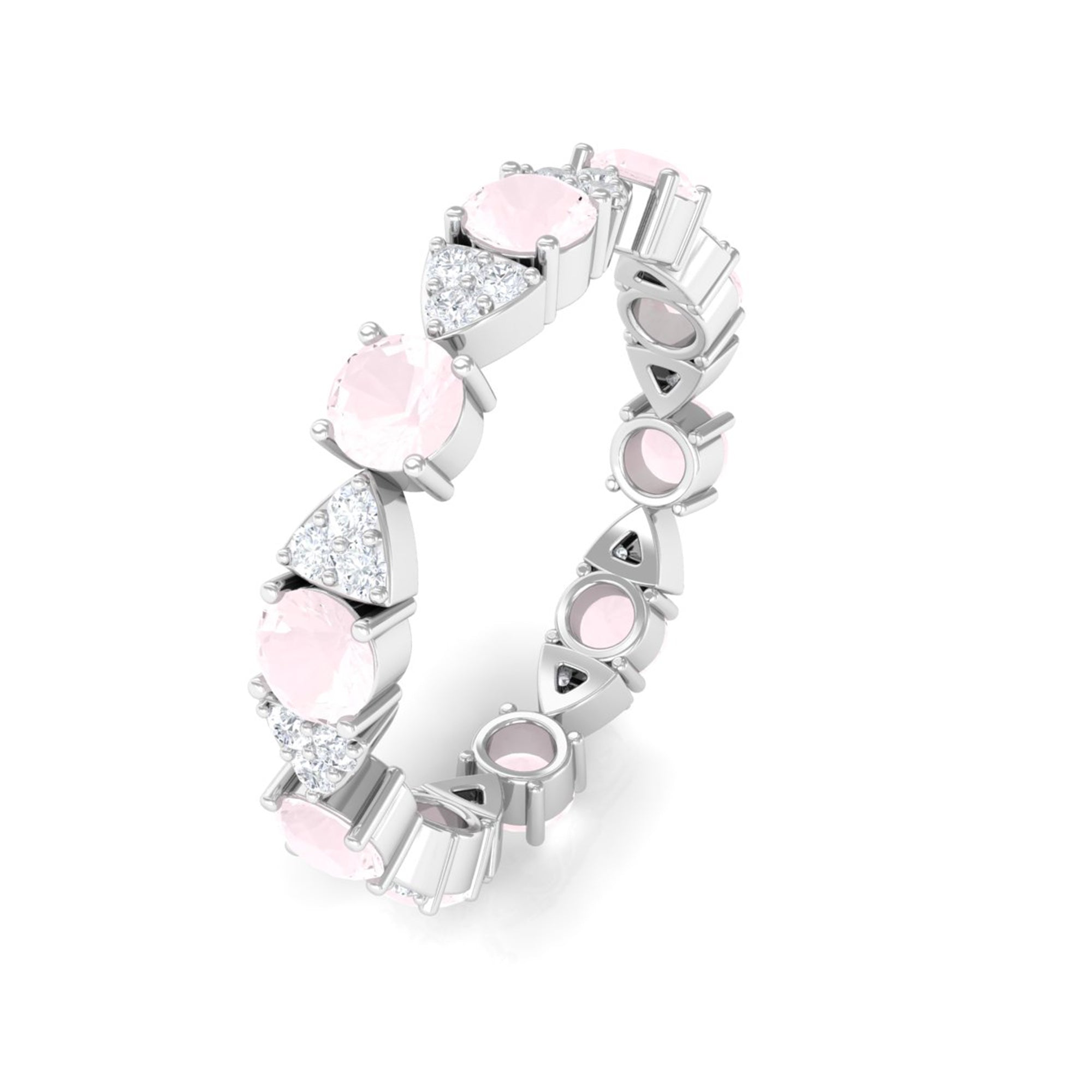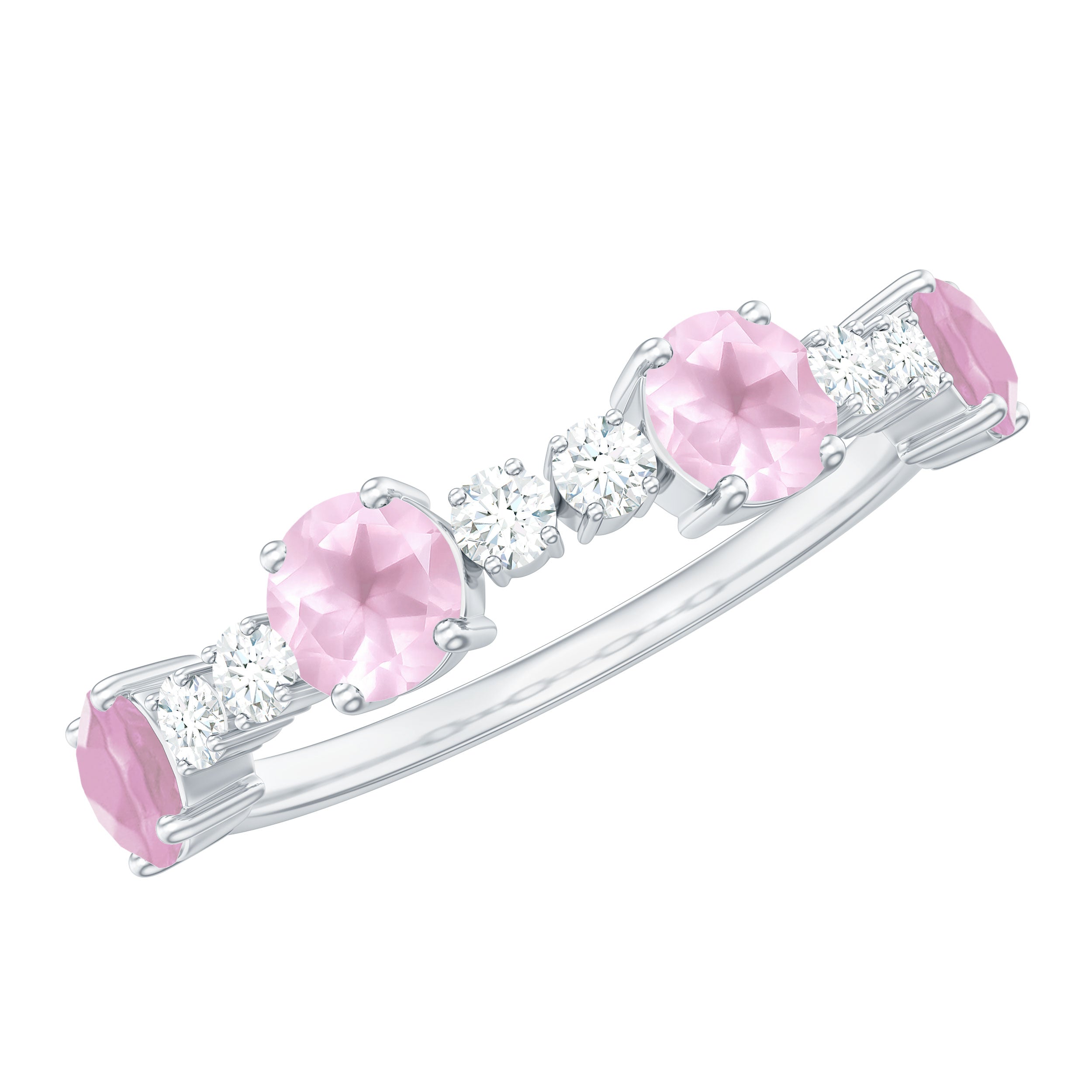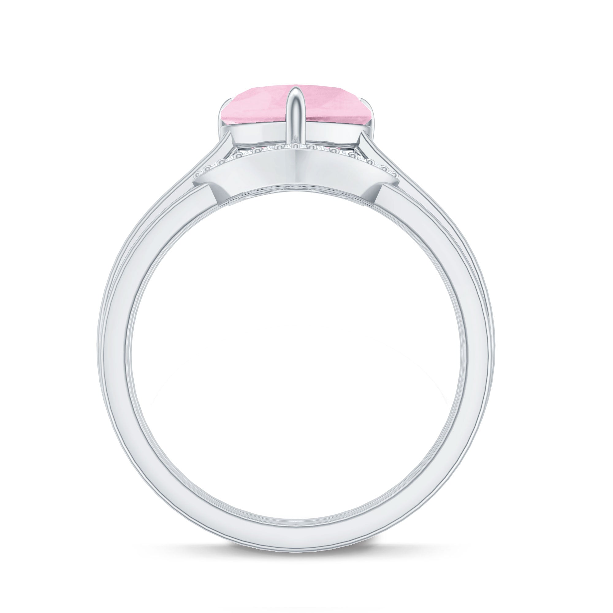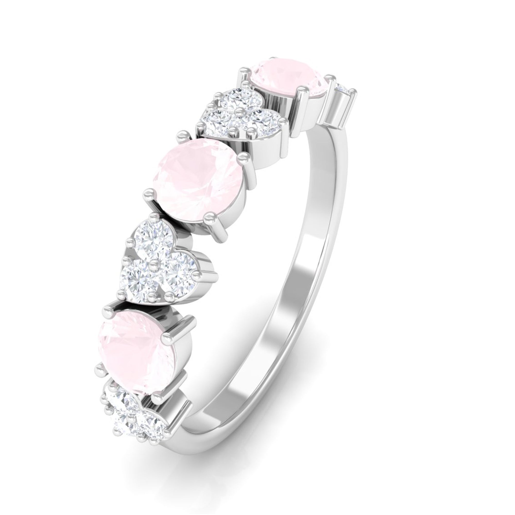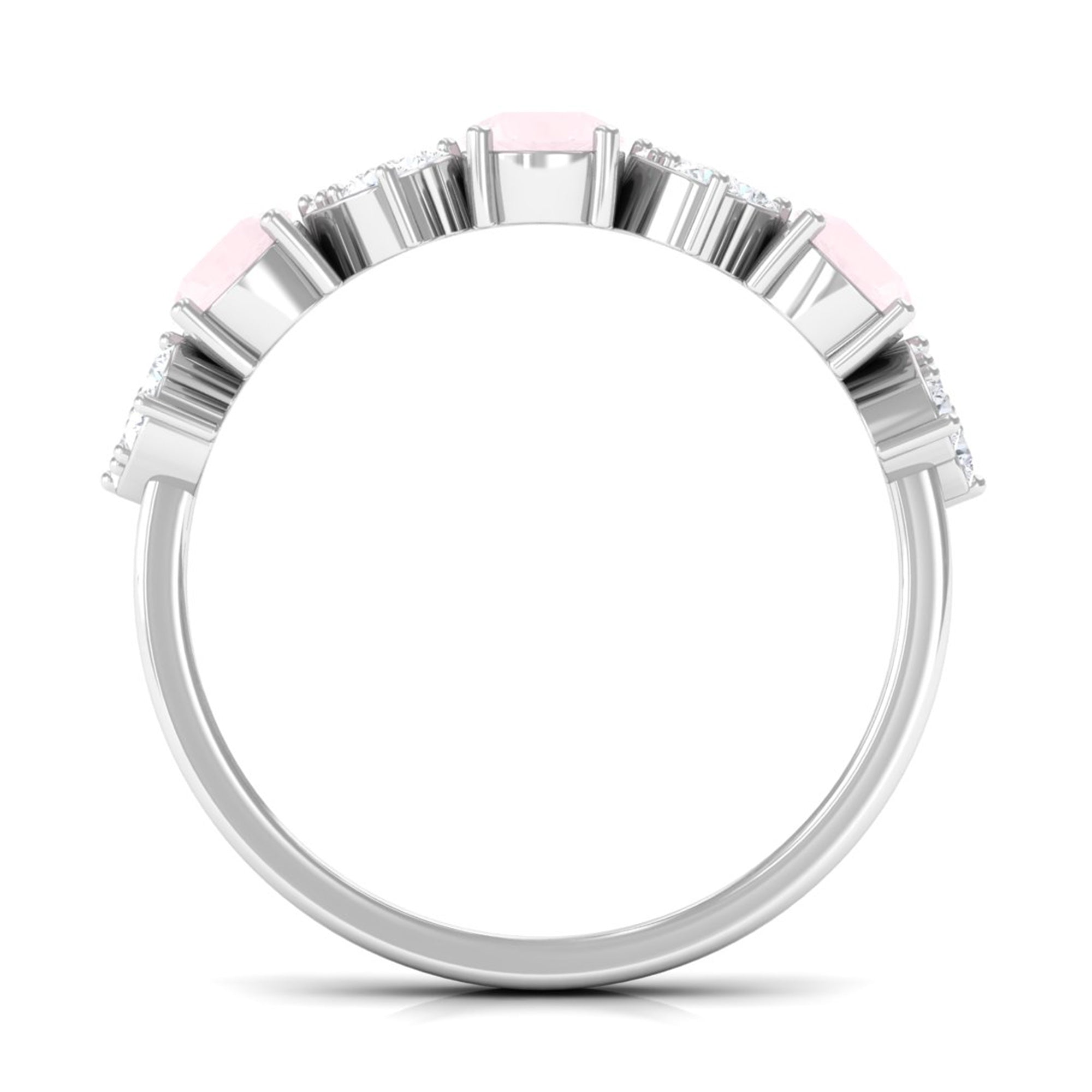 Rose quartz wedding rings from the online store of Rosec Jewels are a collection of enticing wedding rings for women to tie the knot between two souls. The romantic pink saturation of rose quartz rings makes them a popular choice among women when it comes to buying wedding rings. Thus bearing in mind, the latest trends in fashion jewelry our artisans have come out with out of the box ring styles with fine details. Rose quartz wedding band is one such sophisticated style to watch out for when it comes to buying wedding bands for women.