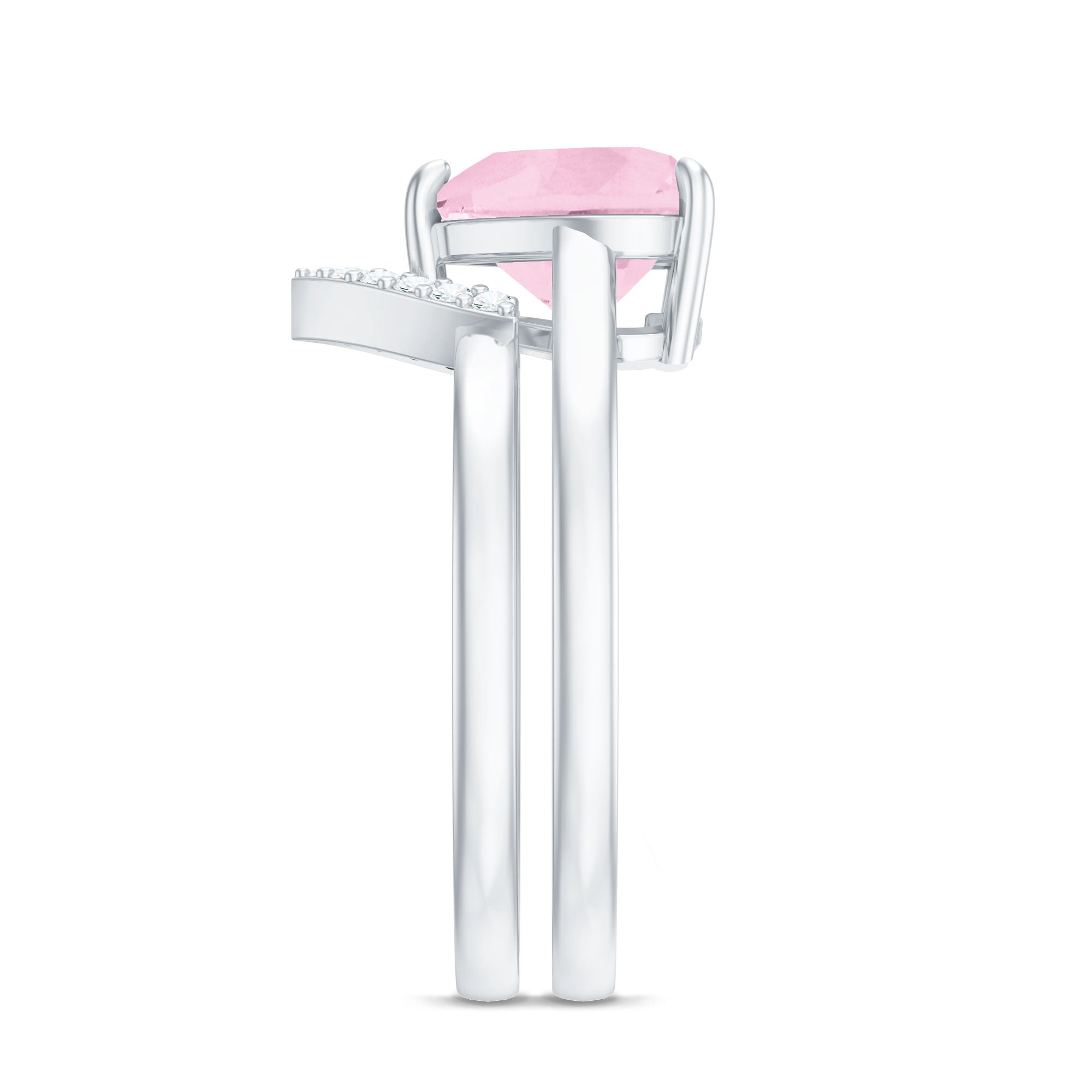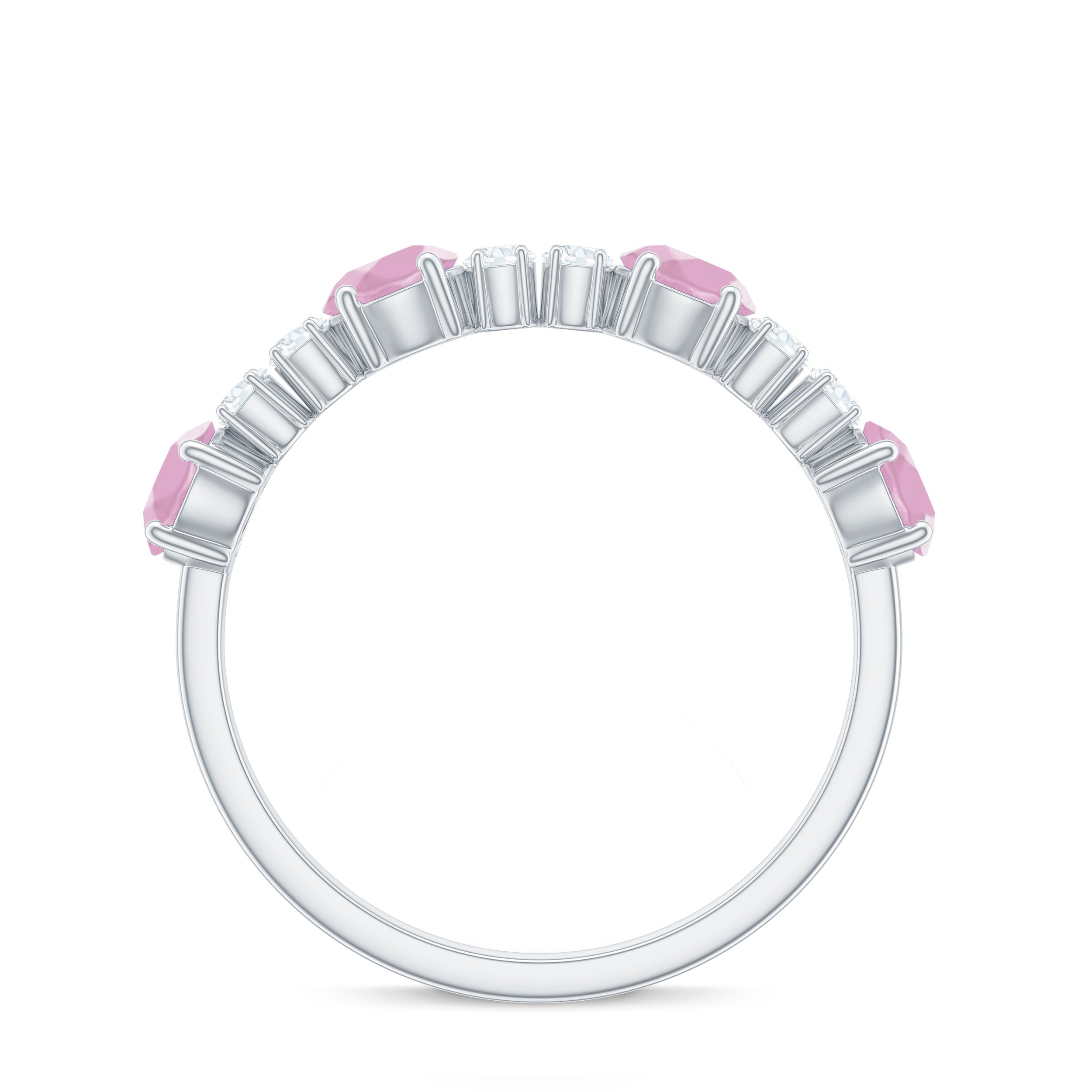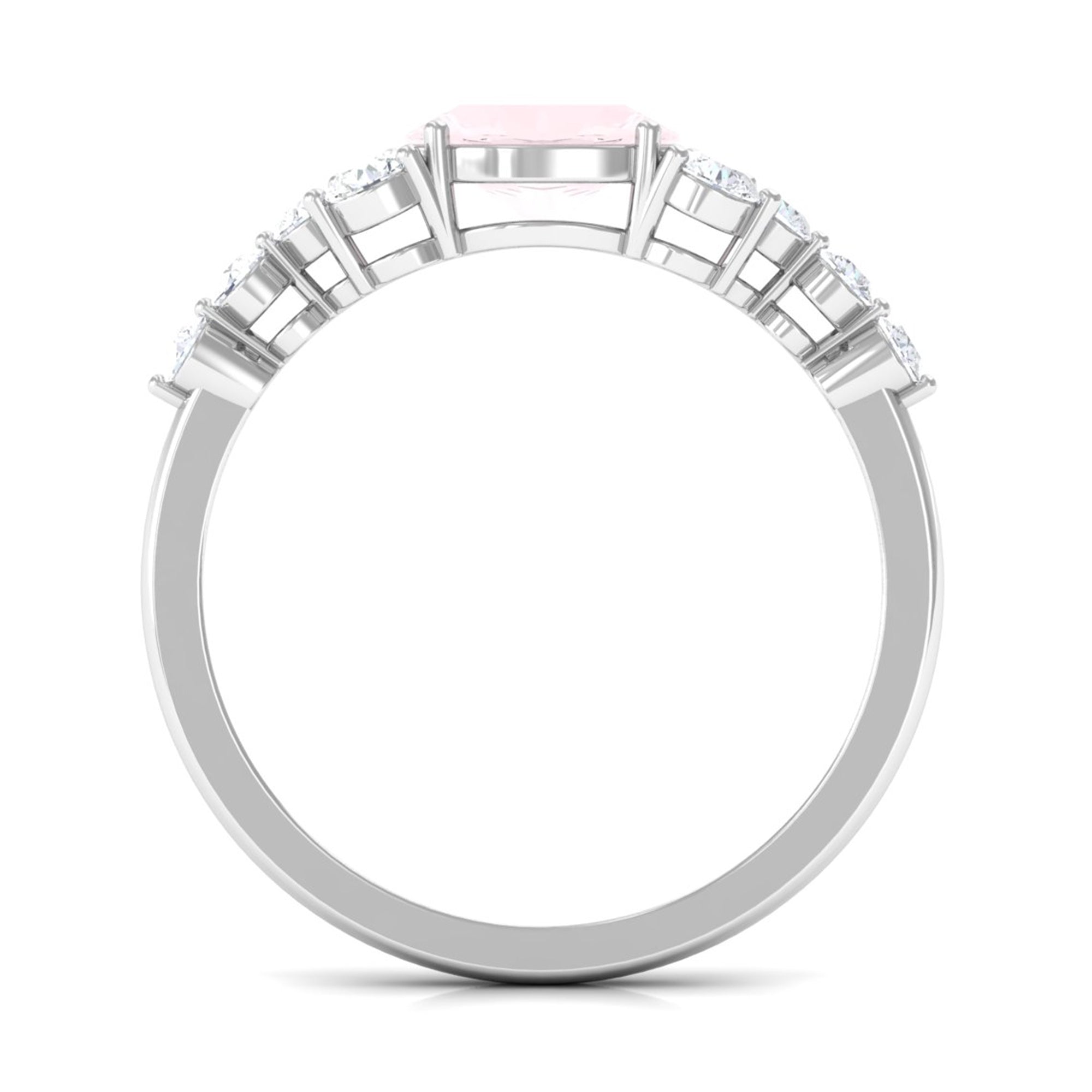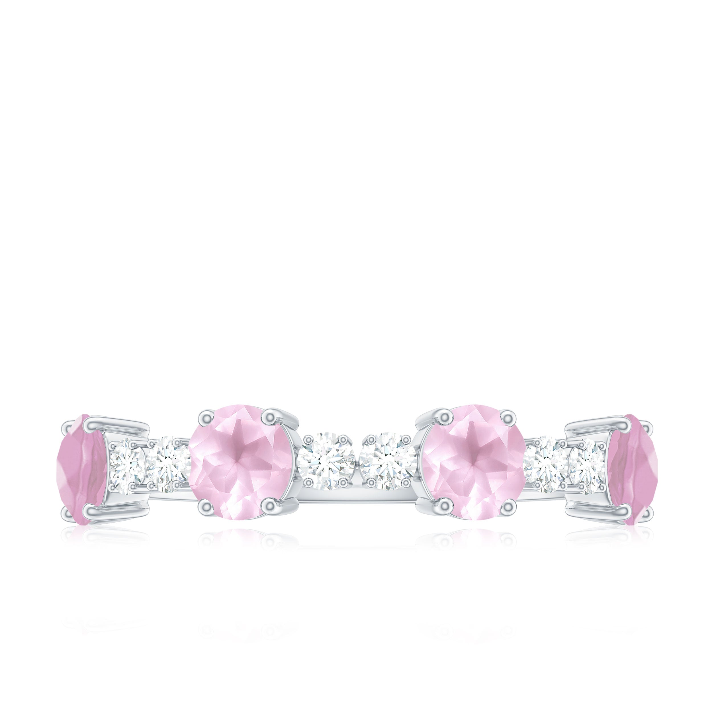 Rose quartz wedding rings from the online store of Rosec Jewels are a collection of enticing wedding rings for women to tie the knot between two souls. The romantic pink saturation of rose quartz rings makes them a popular choice among women when it comes to buying wedding rings. Thus bearing in mind, the latest trends in fashion jewelry our artisans have come out with out of the box ring styles with fine details. Rose quartz wedding band is one such sophisticated style to watch out for when it comes to buying wedding bands for women.