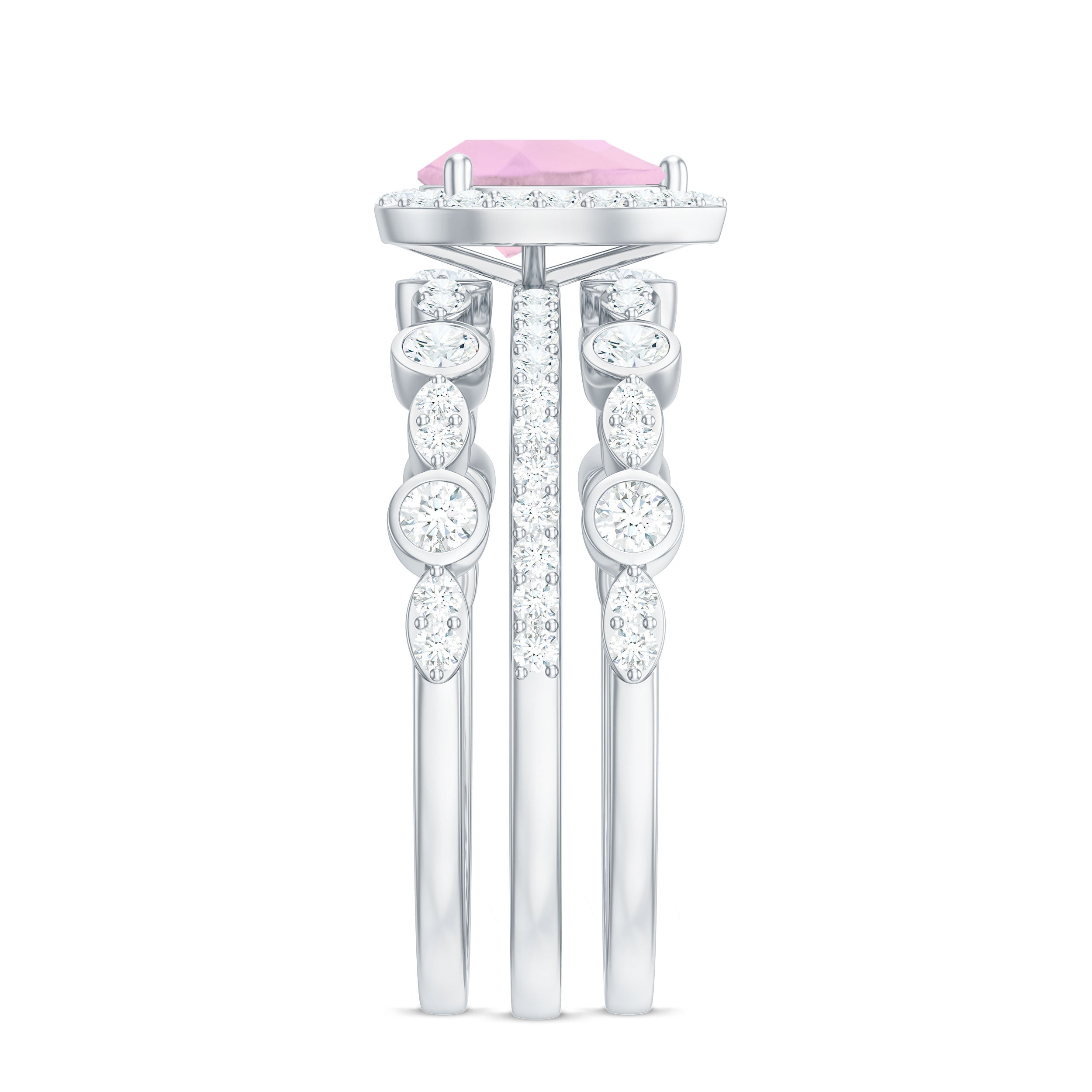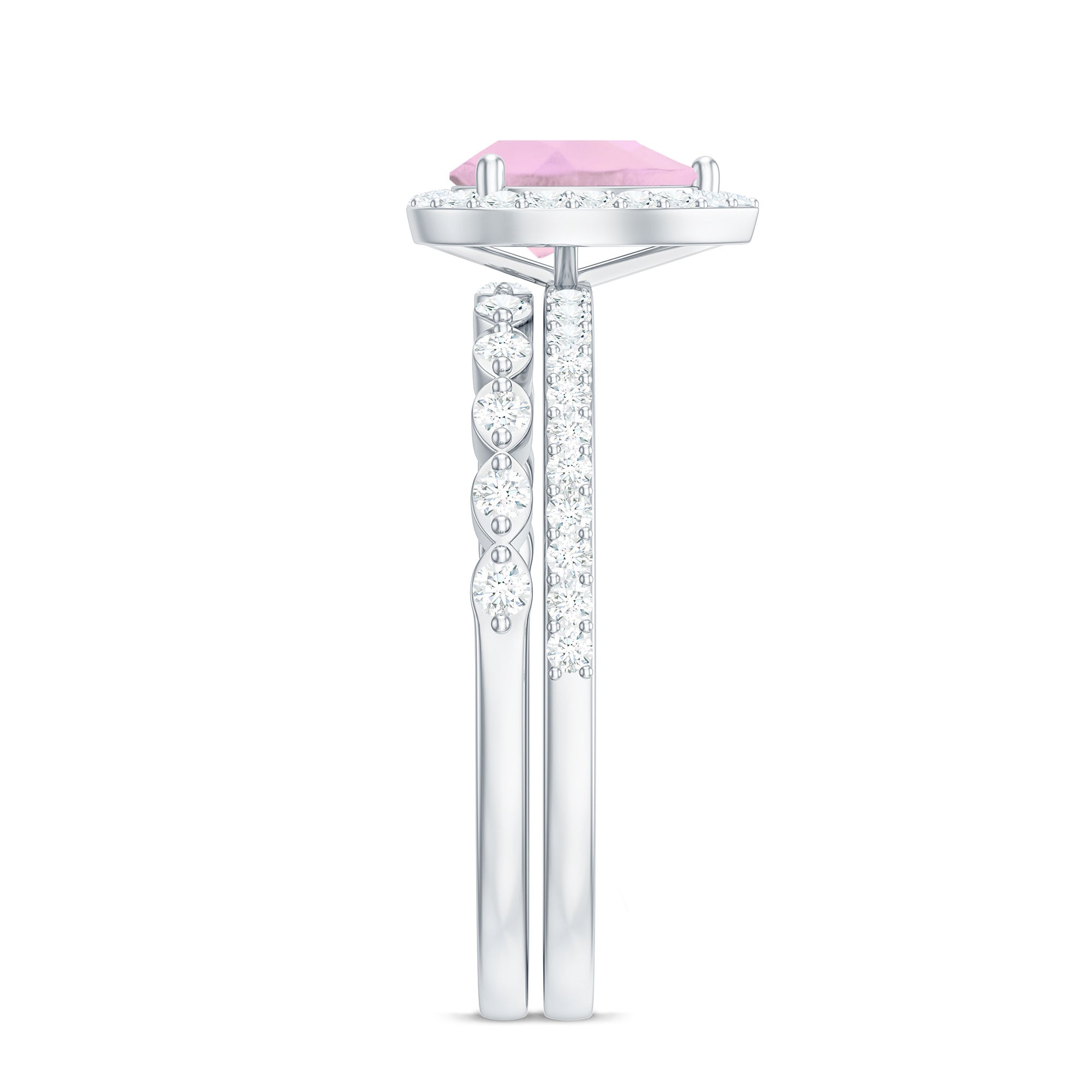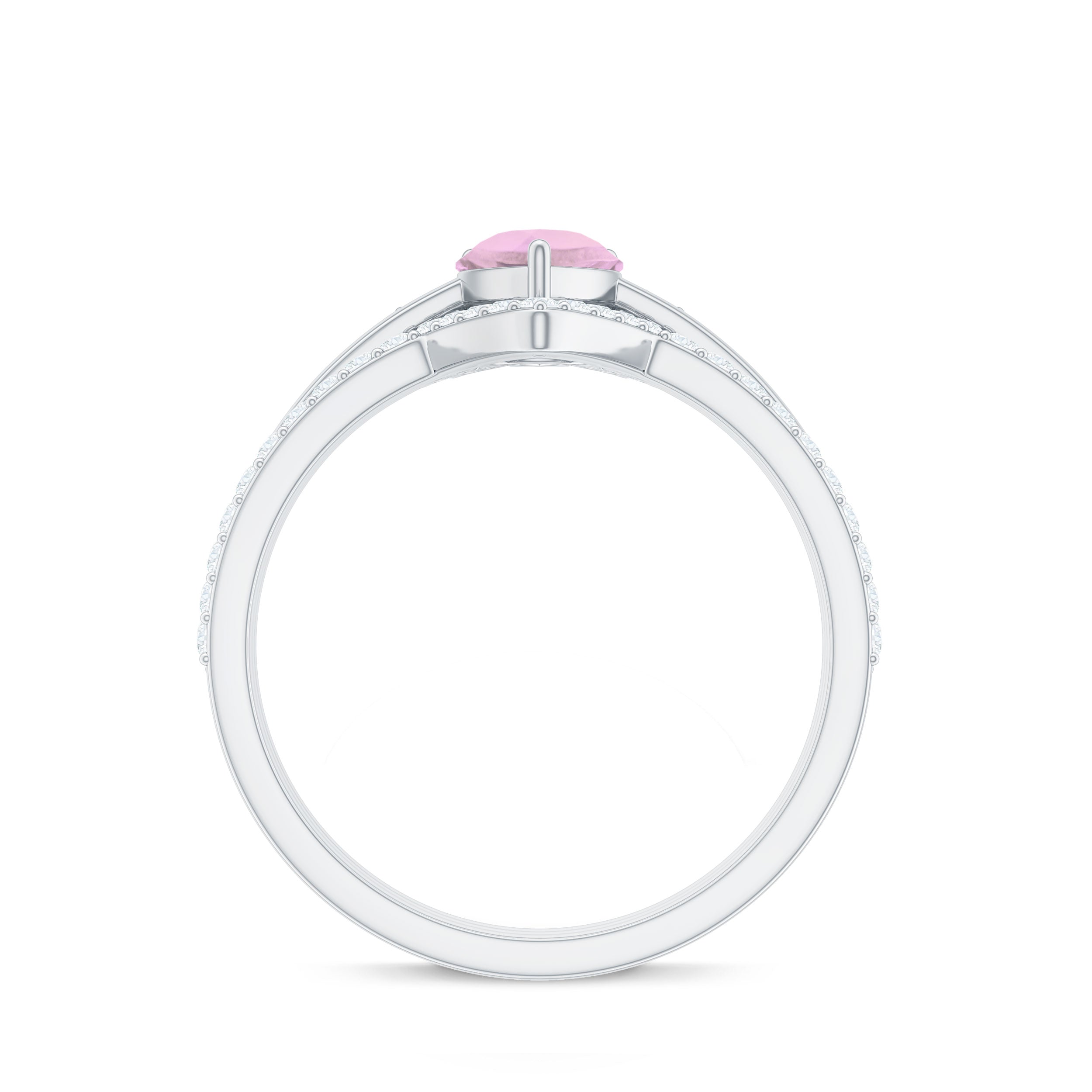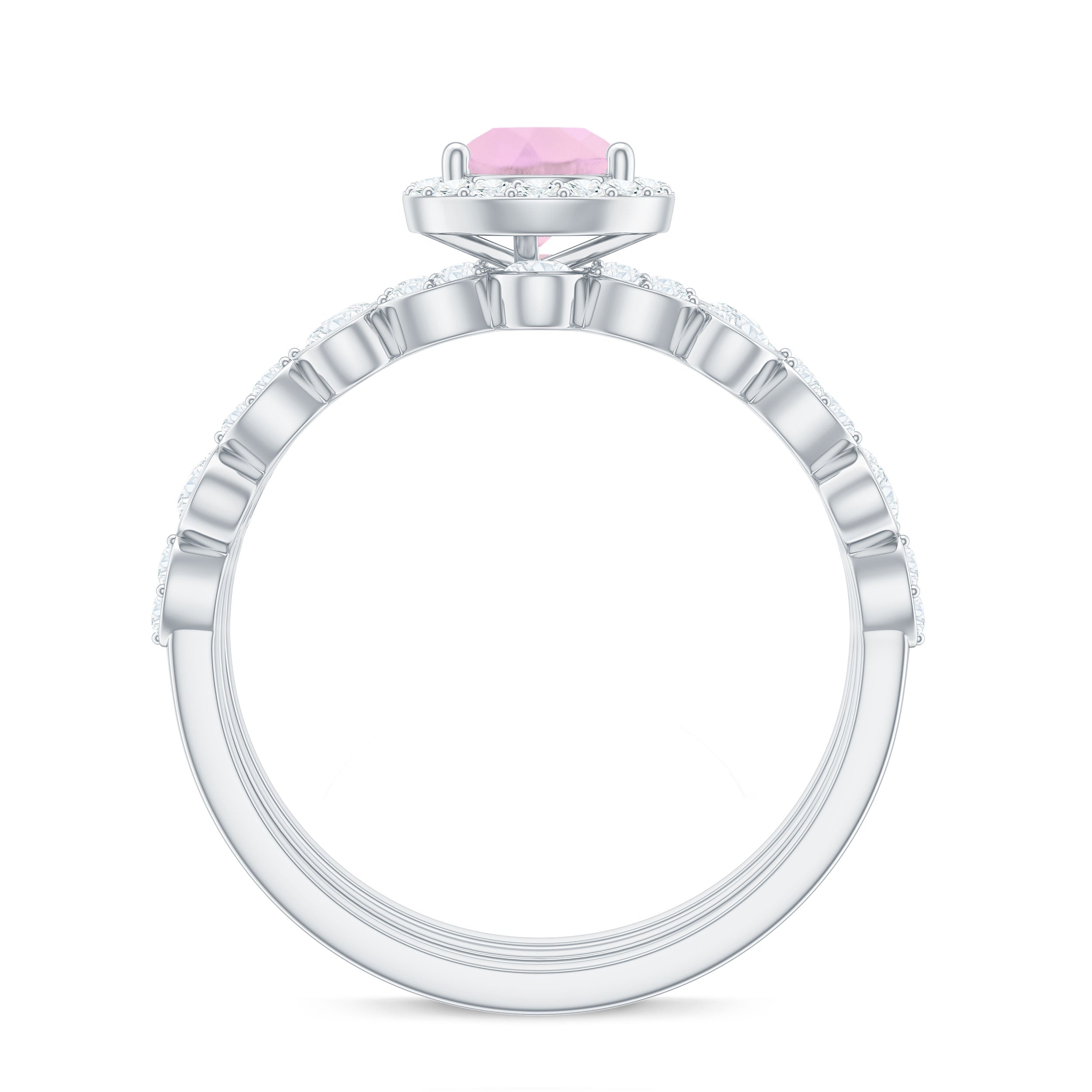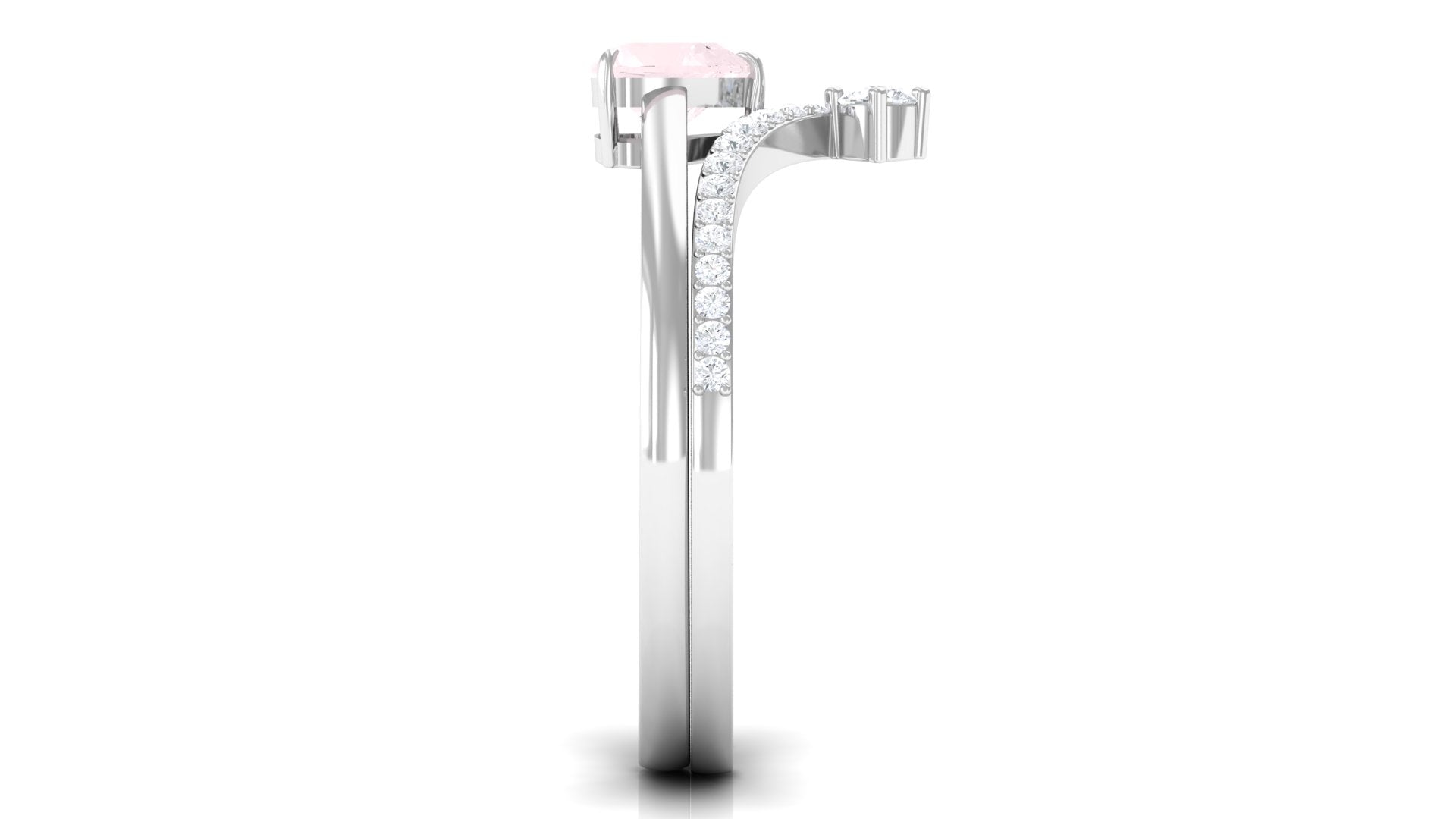 Rose quartz wedding rings from the online store of Rosec Jewels are a collection of enticing wedding rings for women to tie the knot between two souls. The romantic pink saturation of rose quartz rings makes them a popular choice among women when it comes to buying wedding rings. Thus bearing in mind, the latest trends in fashion jewelry our artisans have come out with out of the box ring styles with fine details. Rose quartz wedding band is one such sophisticated style to watch out for when it comes to buying wedding bands for women.