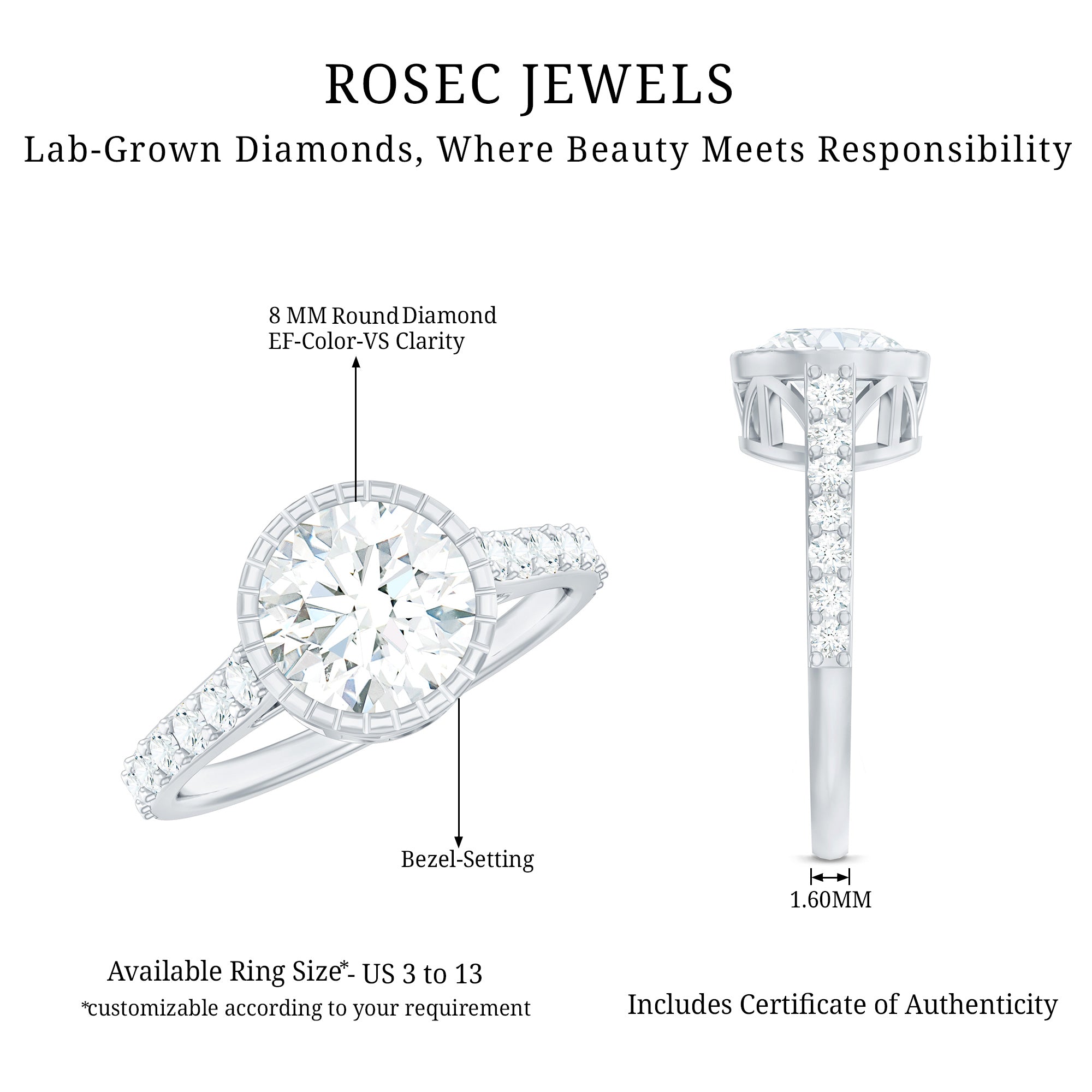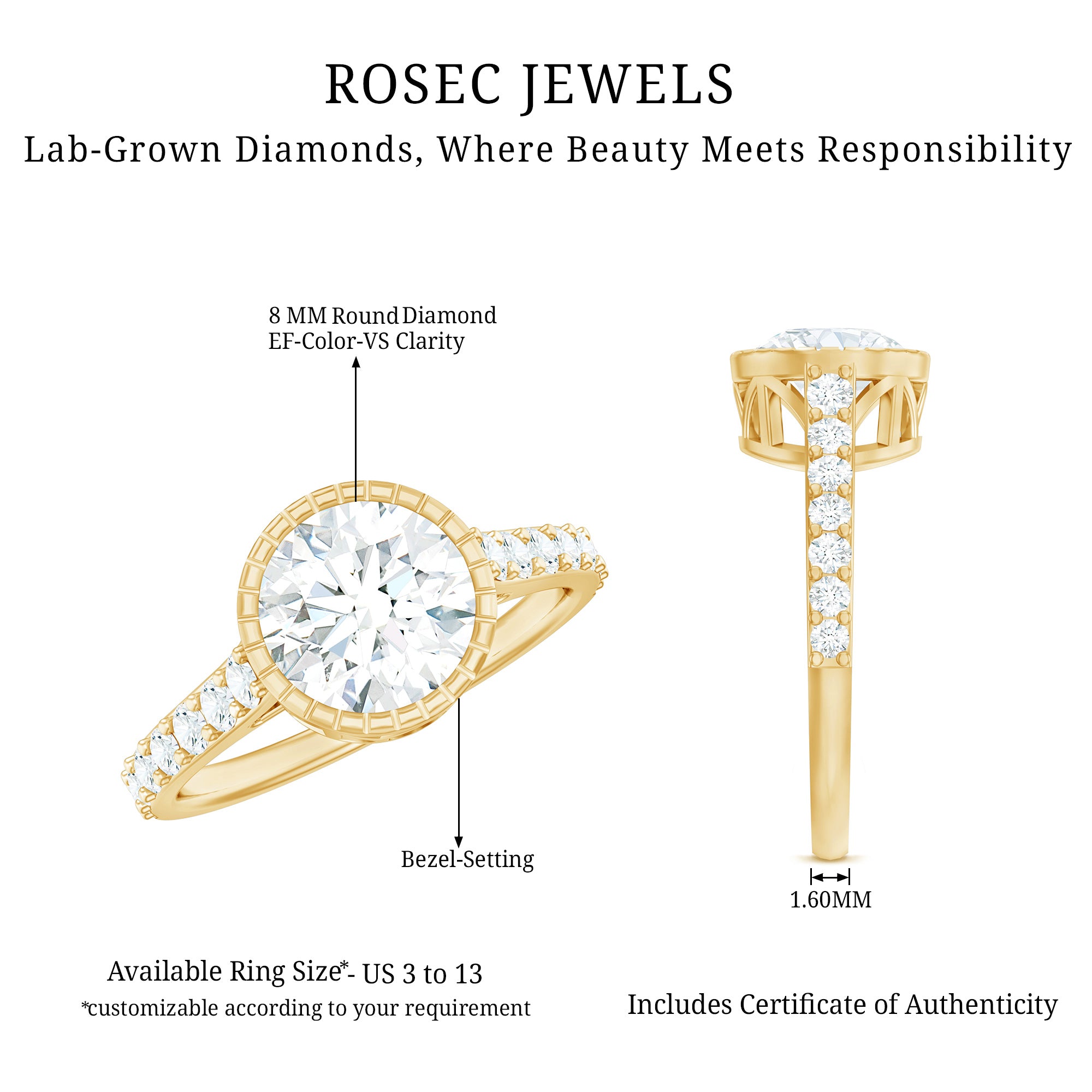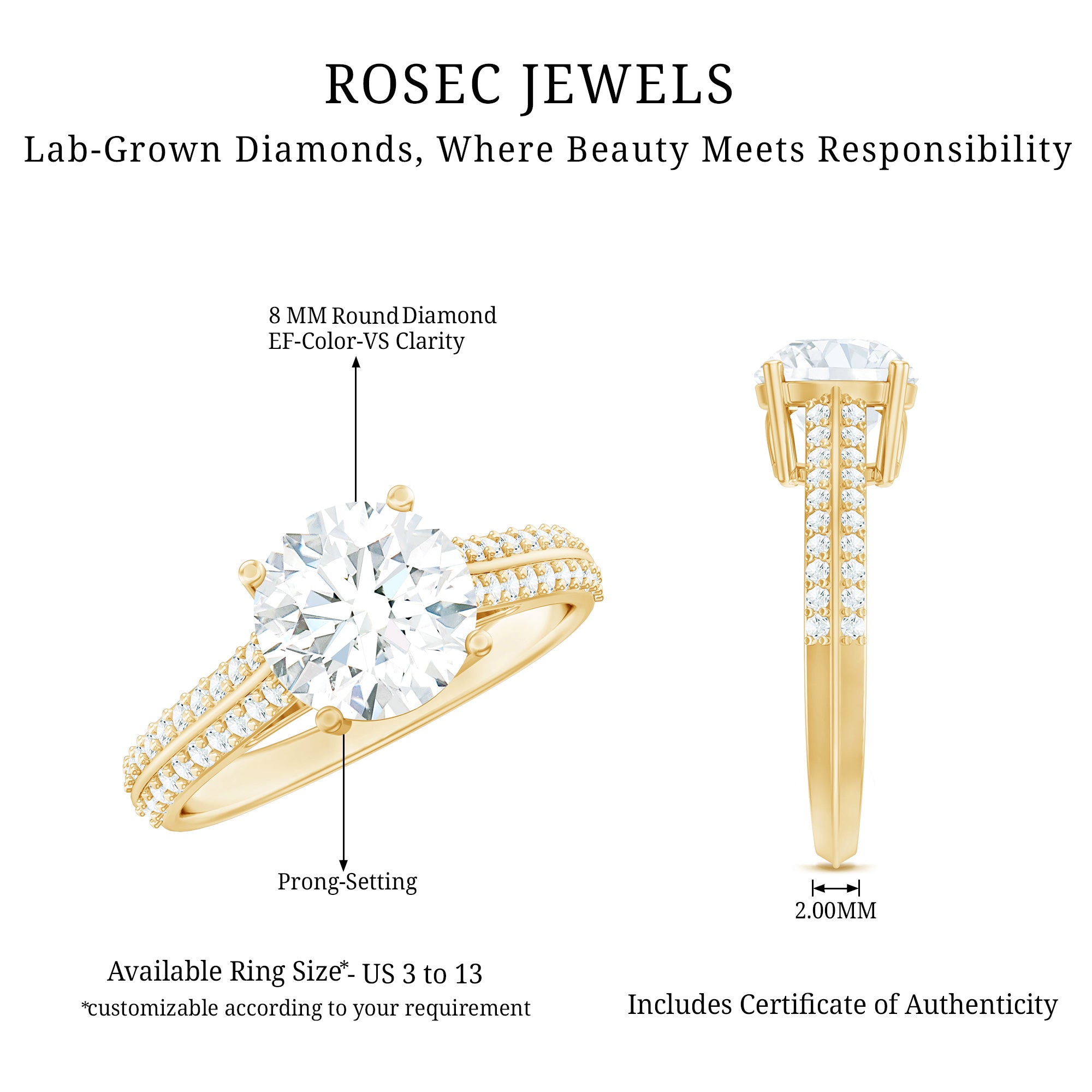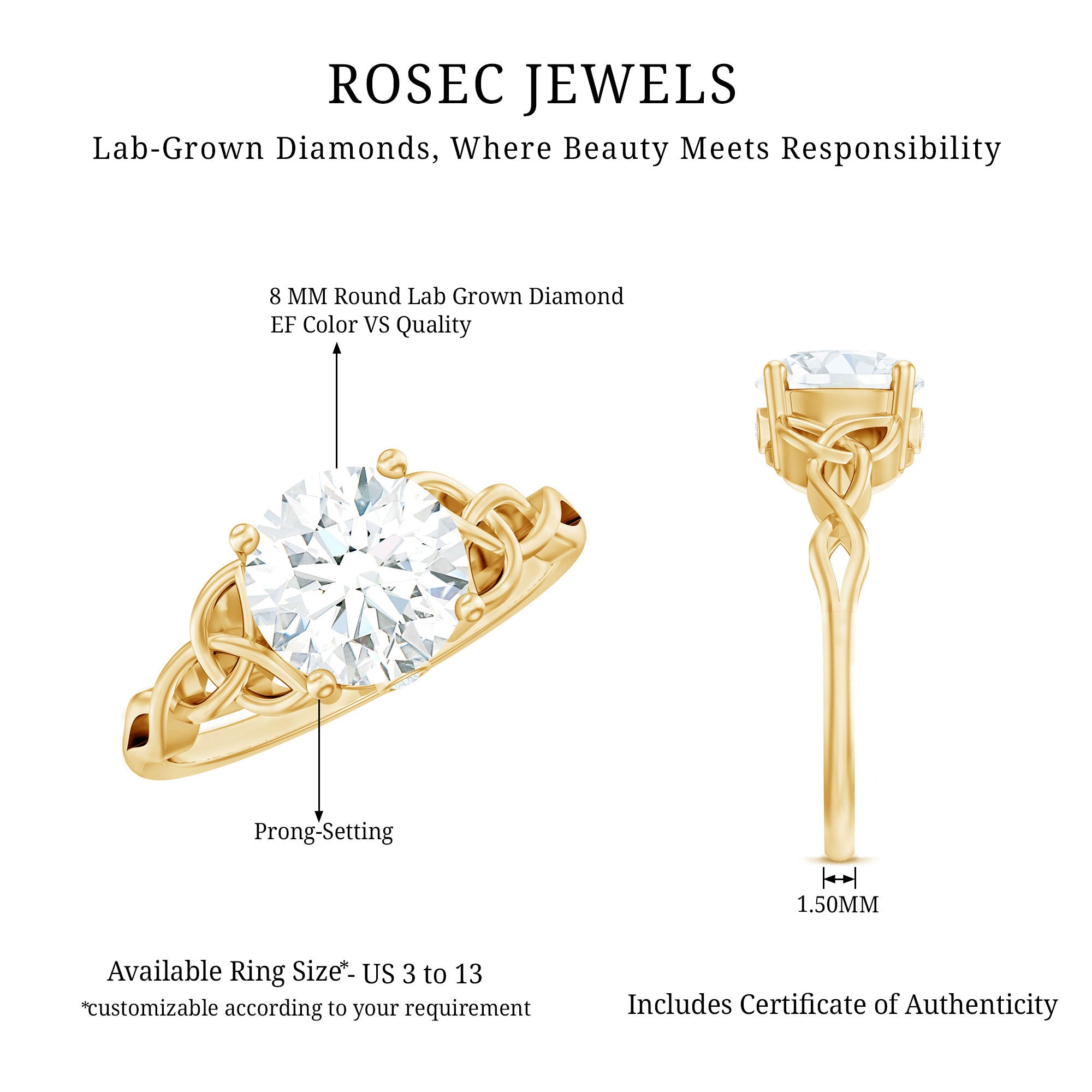 Rosec Jewels, is well known for its experience and wide catalogue of handcrafted engagement rings to suit every style and budget. We keep our collection updated with the trending and inspiring pieces like solitaires and statement rings to designer and minimal pieces. Our round engagement rings feature everything from classic diamonds and moissanites to colored gemstones, both natural and lab-grown. Our high-quality certified gemstones undergo strict quality checks for their authenticity. We have a simple 60-day return policy for complete peace of mind and our fast, reliable shipping ensures that your ring arrives on time.