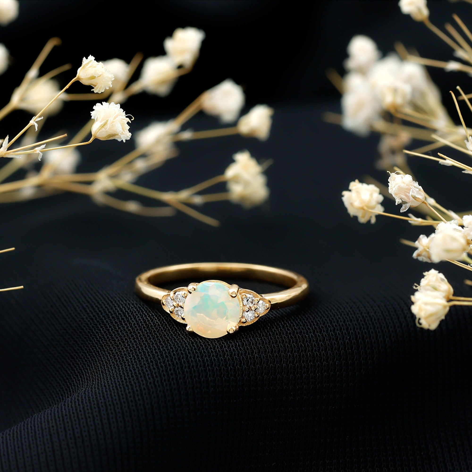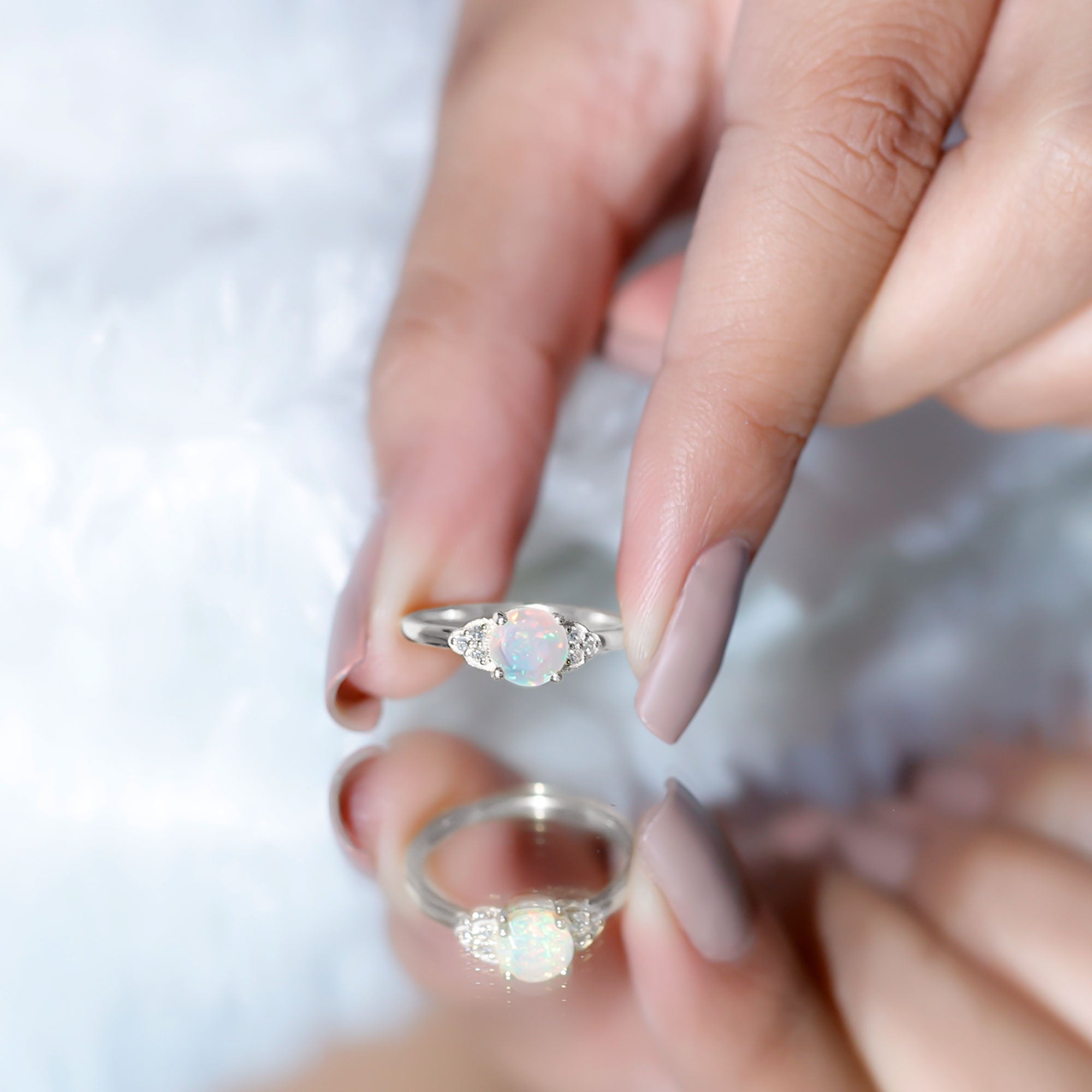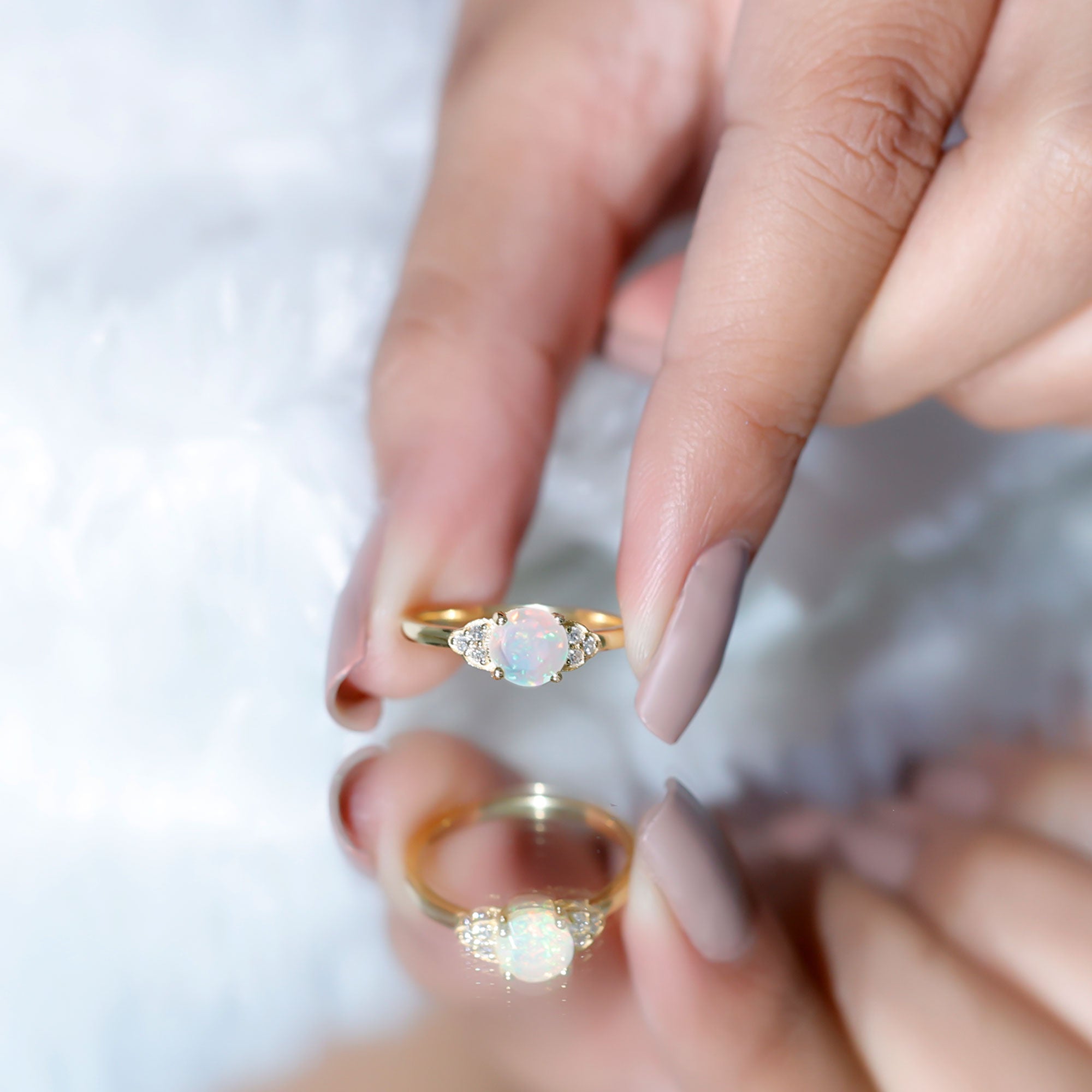 - Great in all settings: Round cut engagement rings are super sparkly and super classic. Round gemstone whether its green emerald or Rainbow Opal looks best in almost all types of settings.