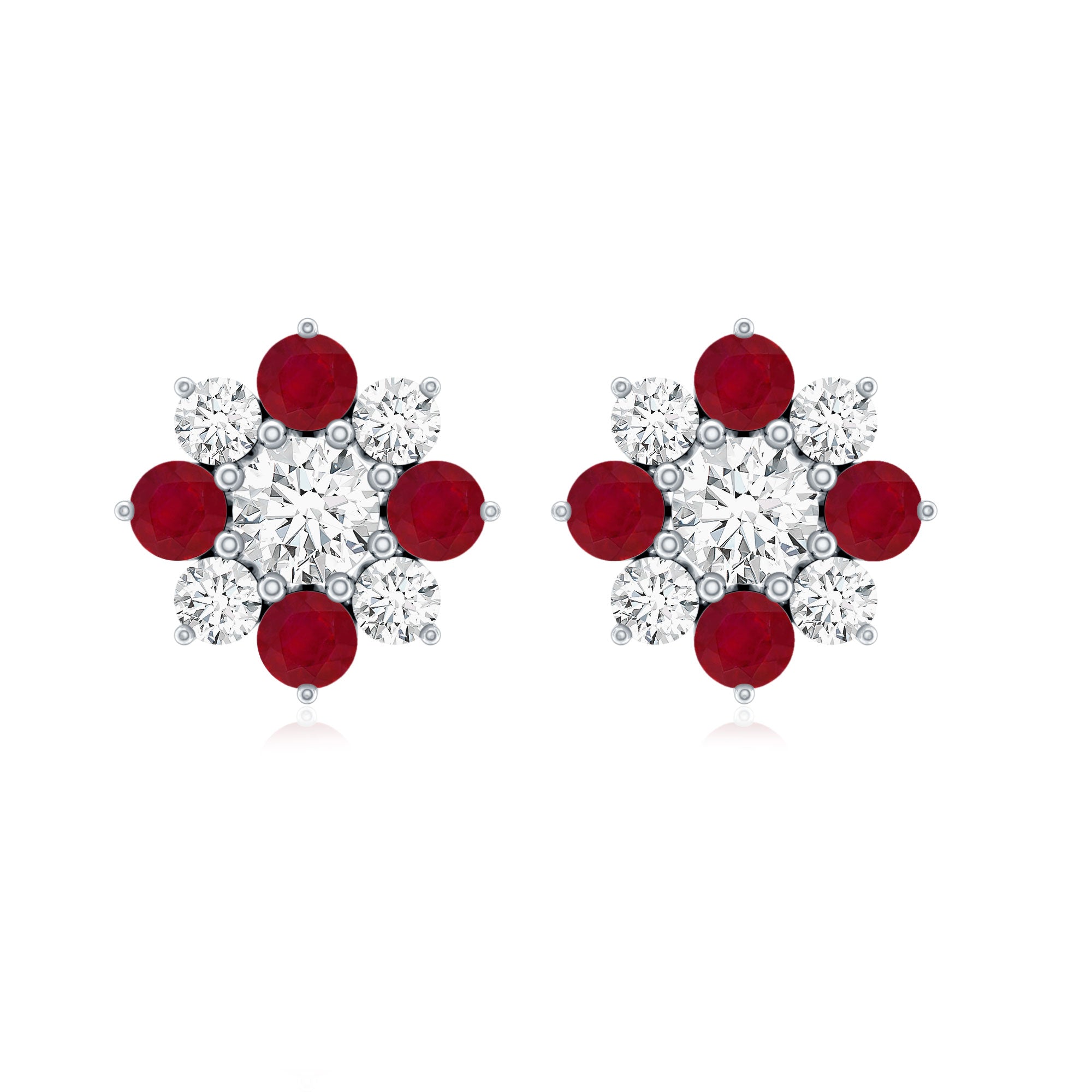 Mainly, this design of studs highlights the beauty and brilliance of ruby. These earrings are available in various metals like white gold, yellow gold, and sterling silver. The choice depends on your budget and preferences.