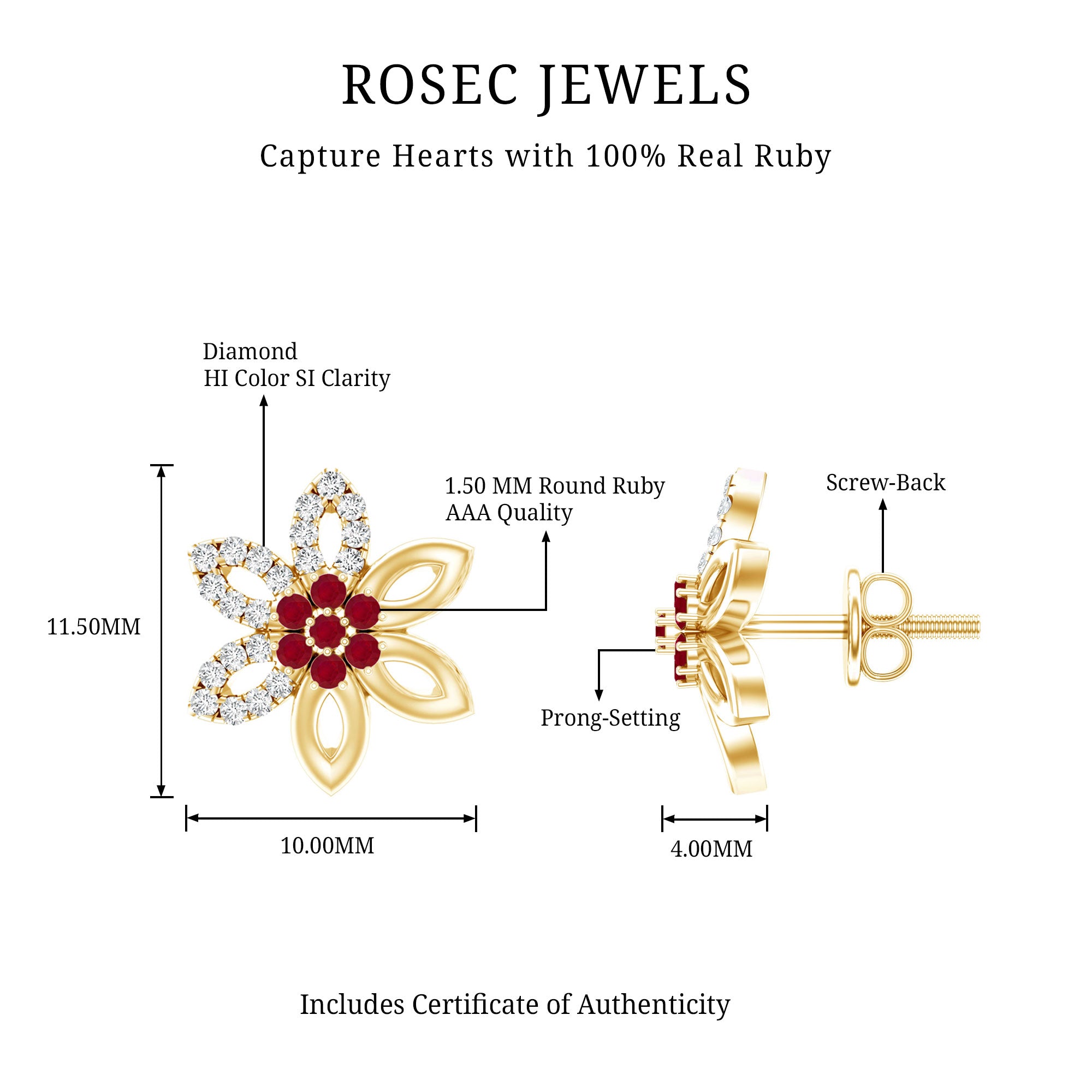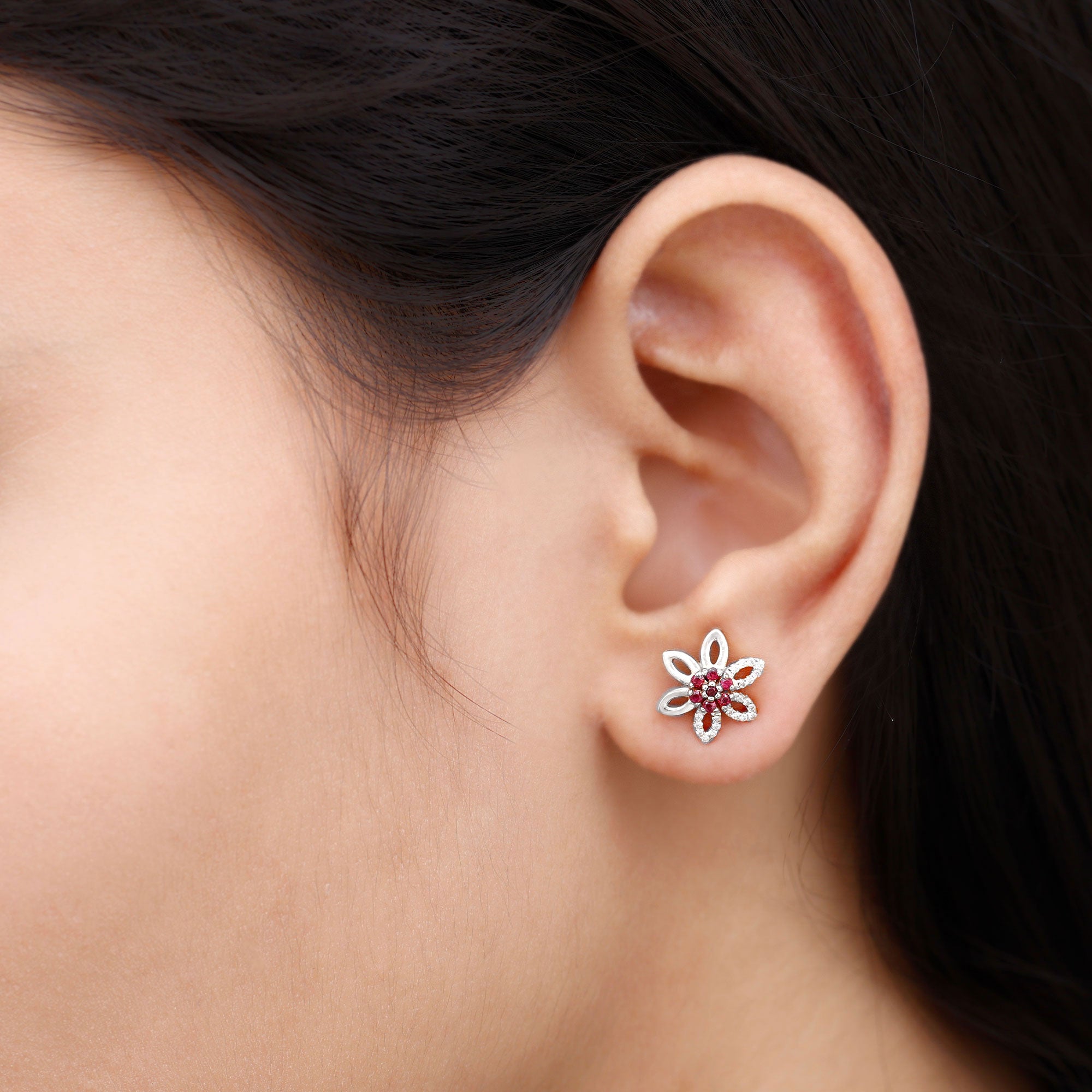 Looking for a pair of gold stud earrings that evoke the beauty of nature? Our collection of flower stud earrings is inspired by the gentle features of the natural world and captivates attention with every movement. This design blends ruby with shimmering moissanite or diamond to craft intricate floral or leaf motifs. Wearing these earrings ensures you stand out from the crowd with their exquisite elegance.