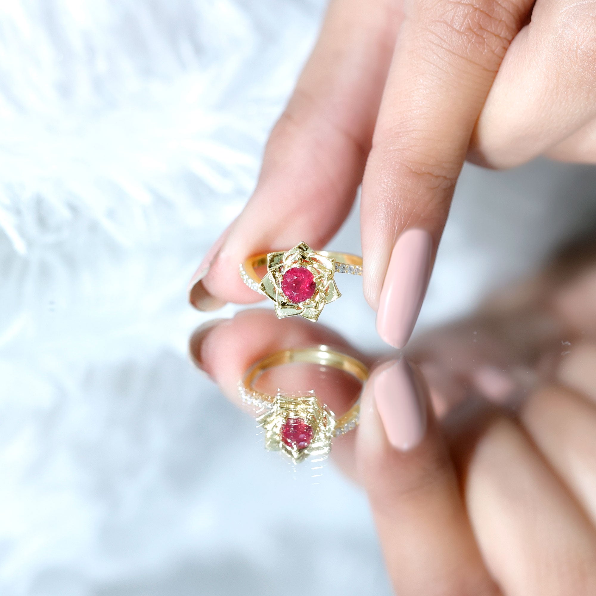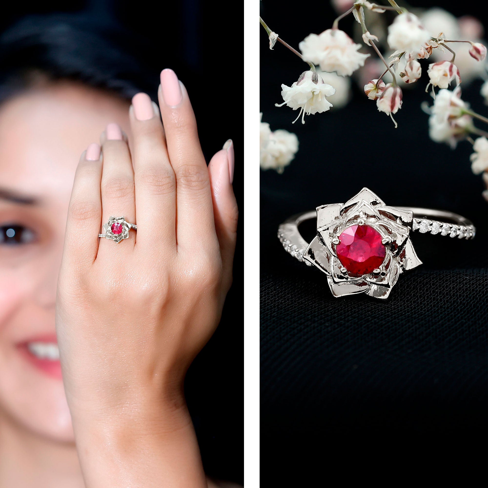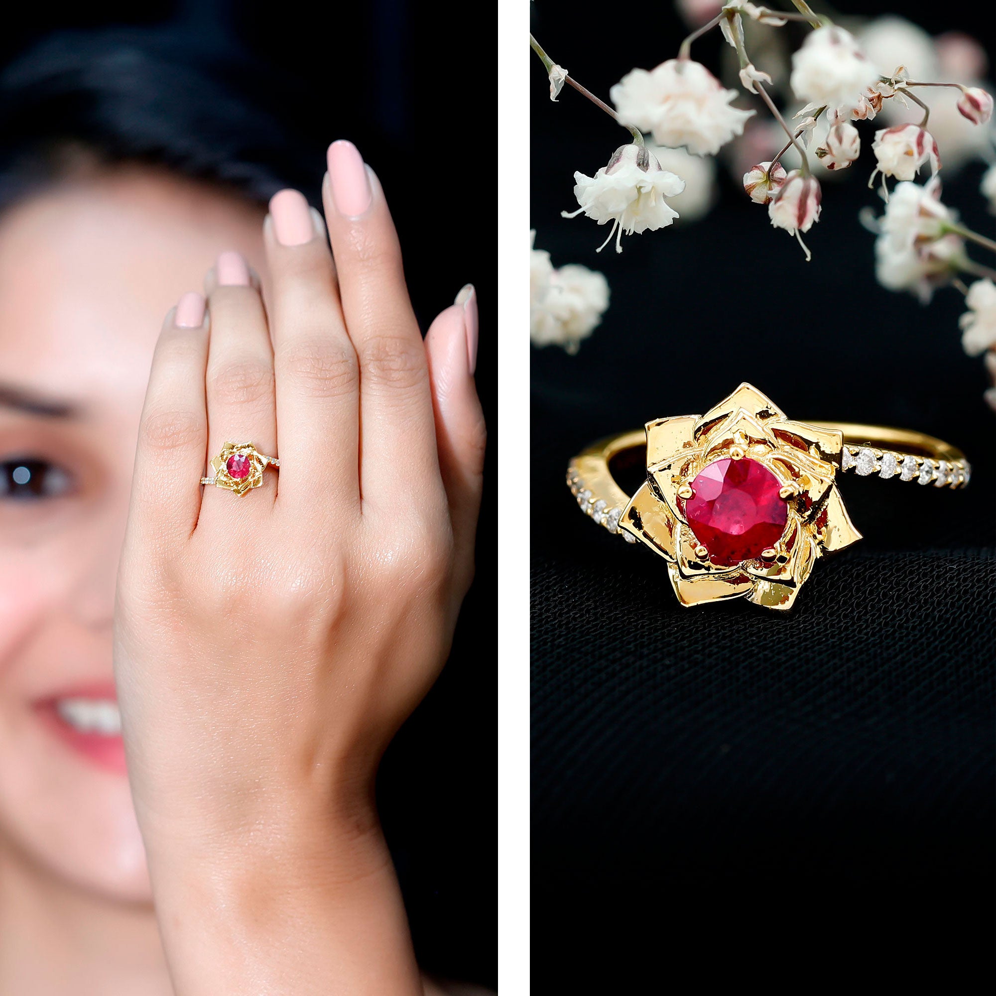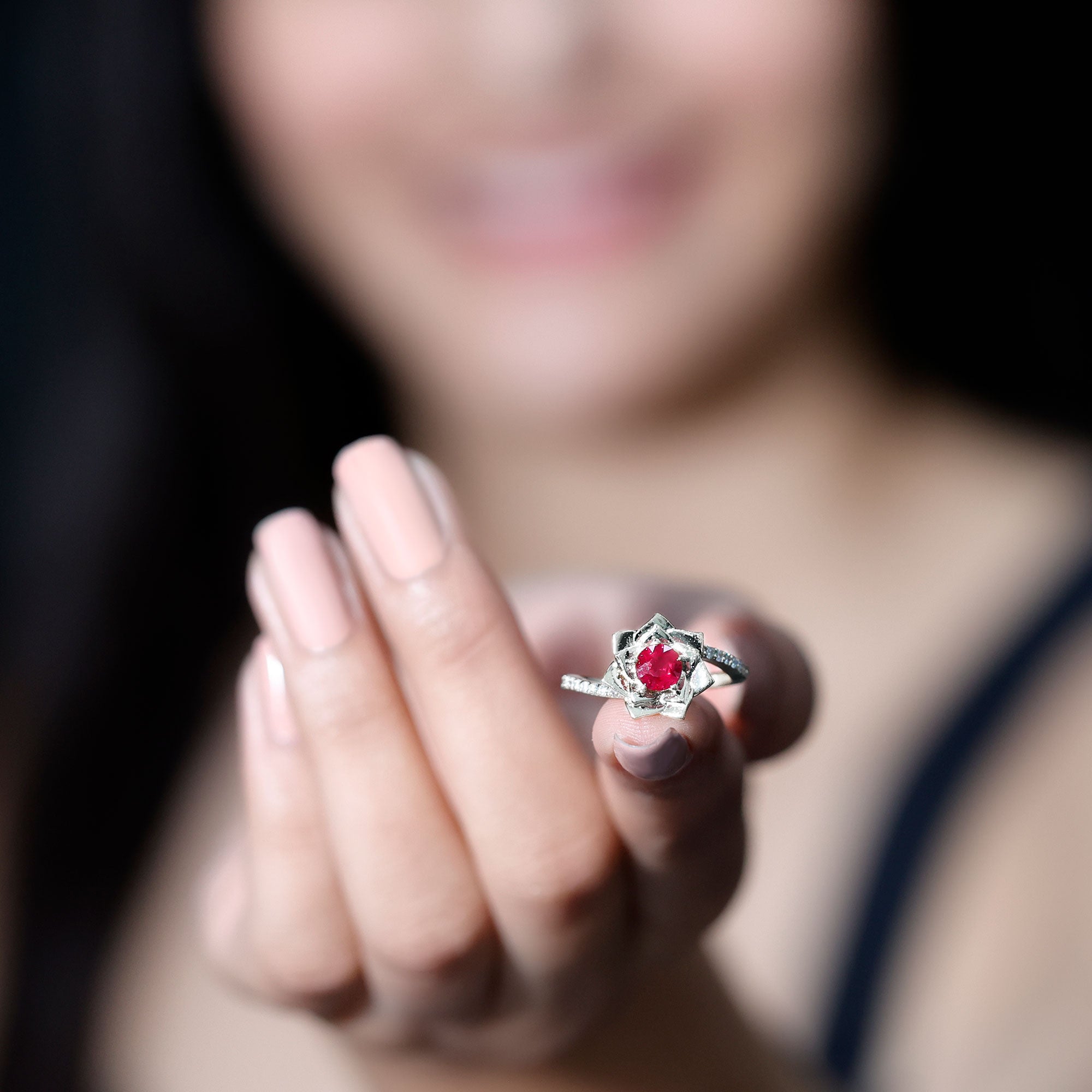 Ruby engagement rings are chosen by couples who want a proposal ring that feels personal, bold, and timeless. The deep red center stone carries long-standing symbolism associated with love and commitment, making it a meaningful alternative to traditional diamond solitaires.