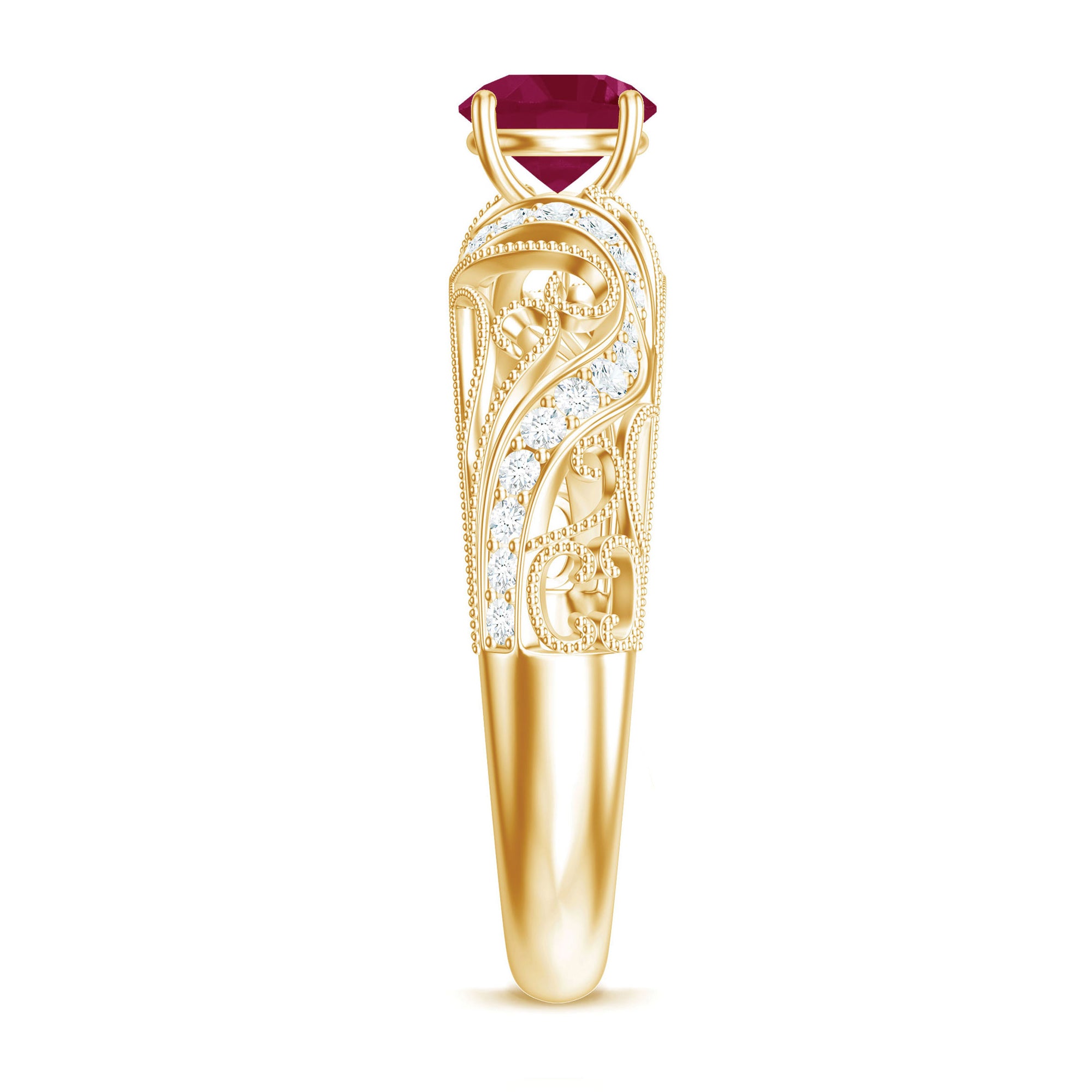 Yes. Ruby pairs especially well with vintage-inspired settings, including halo and detailed band designs, where the rich color enhances intricate metalwork.