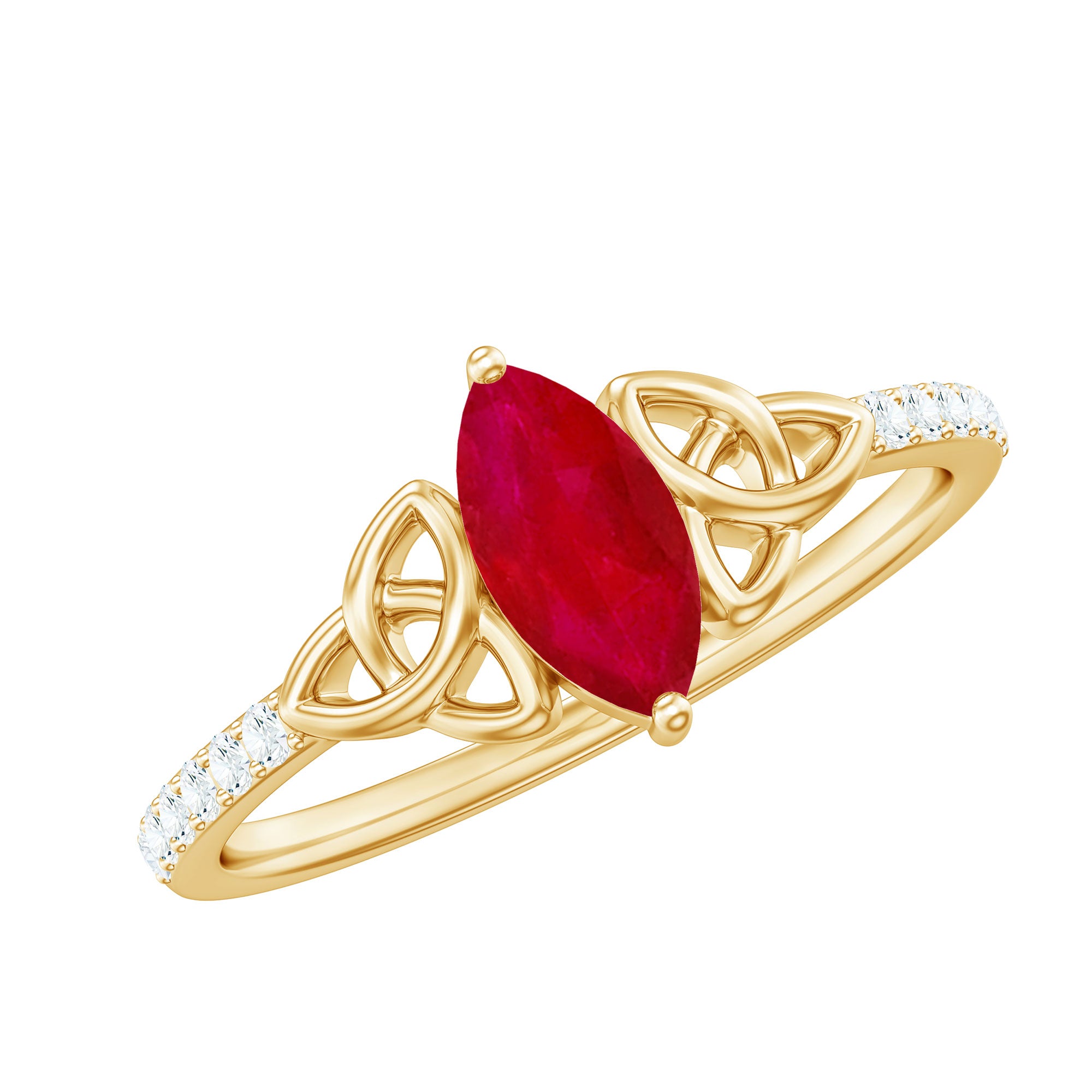 Solitaire Rings: - Graced by a single ruby gemstone, this solitaire ring holds a distinctive vibe. The simplicity of this solitaire ruby rings capture the hearts of onlookers. This type of style is best for those women who appreciate it as simple yet classic. Each ruby in solitaire ring set on yellow gold, or white gold metal brightens the design with its unlimited sparkle.