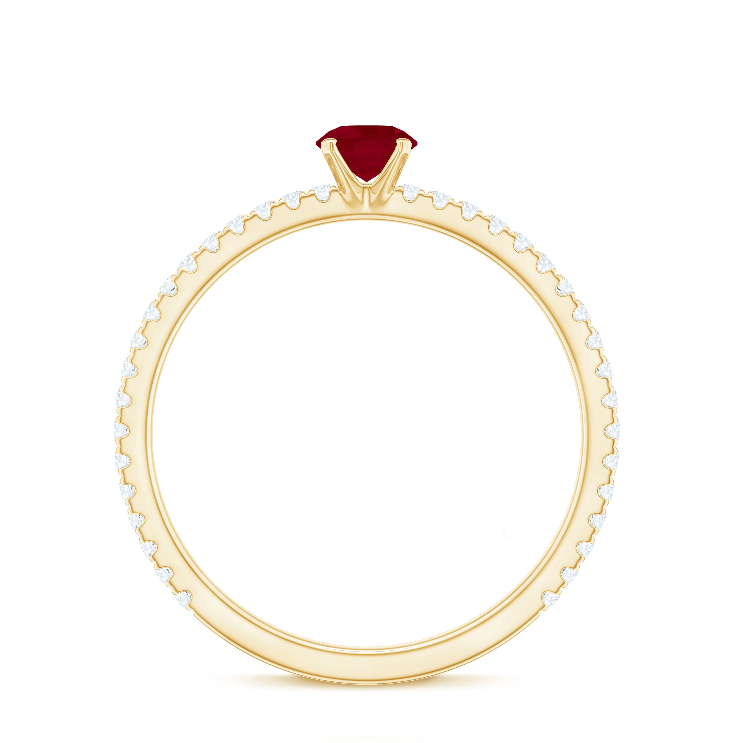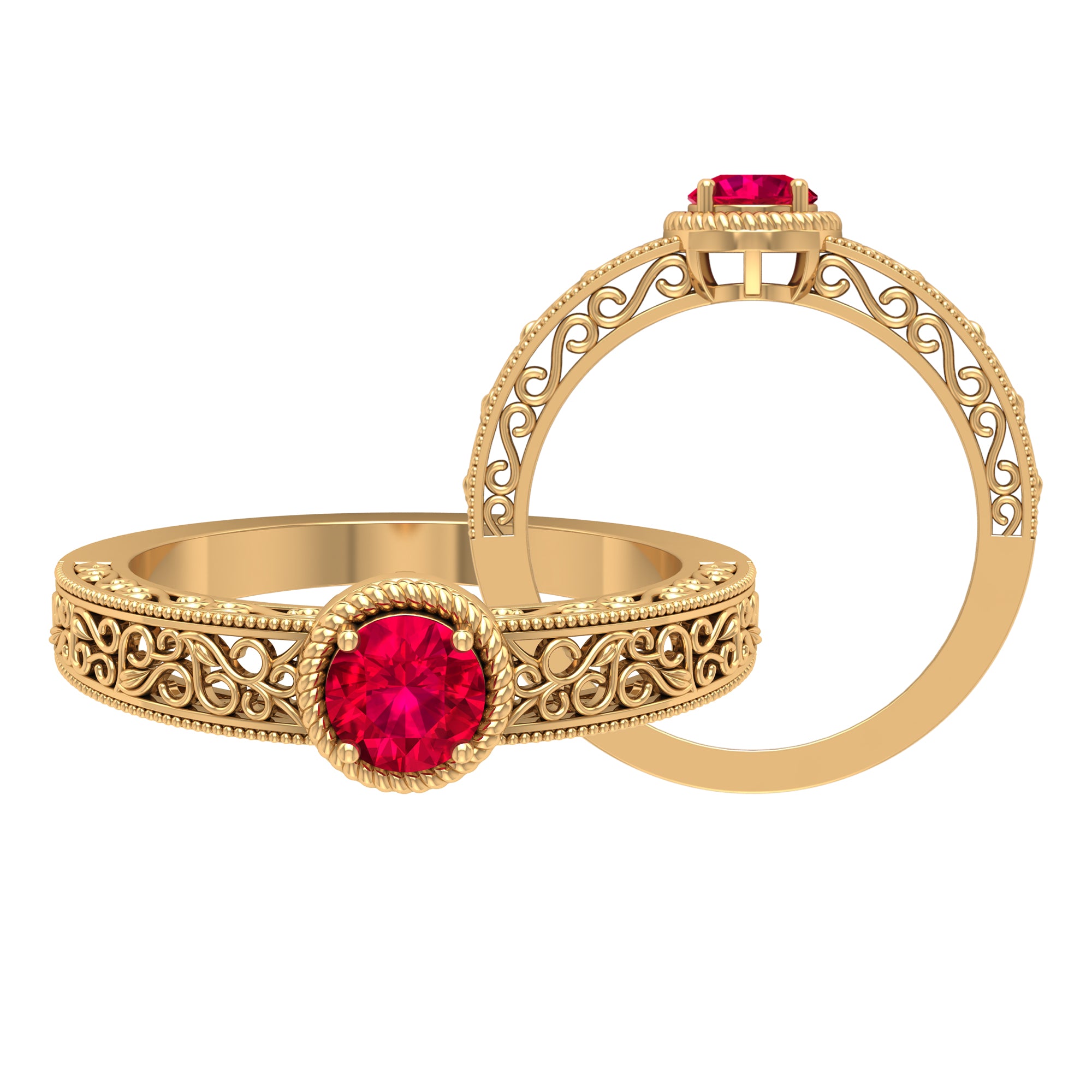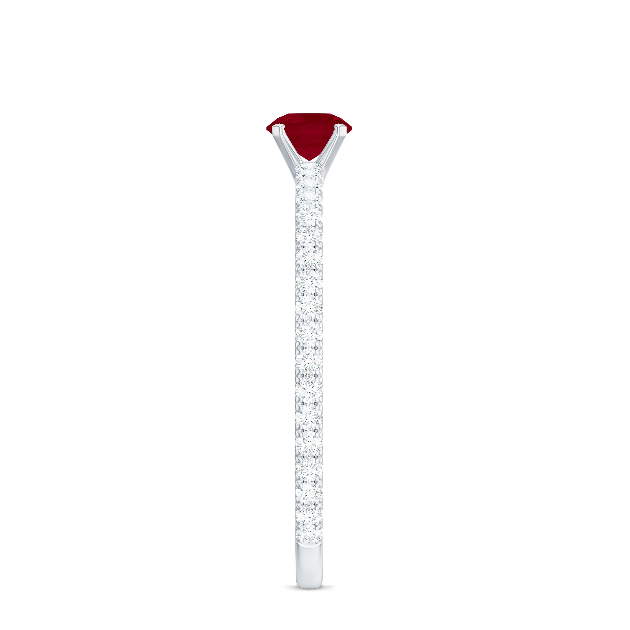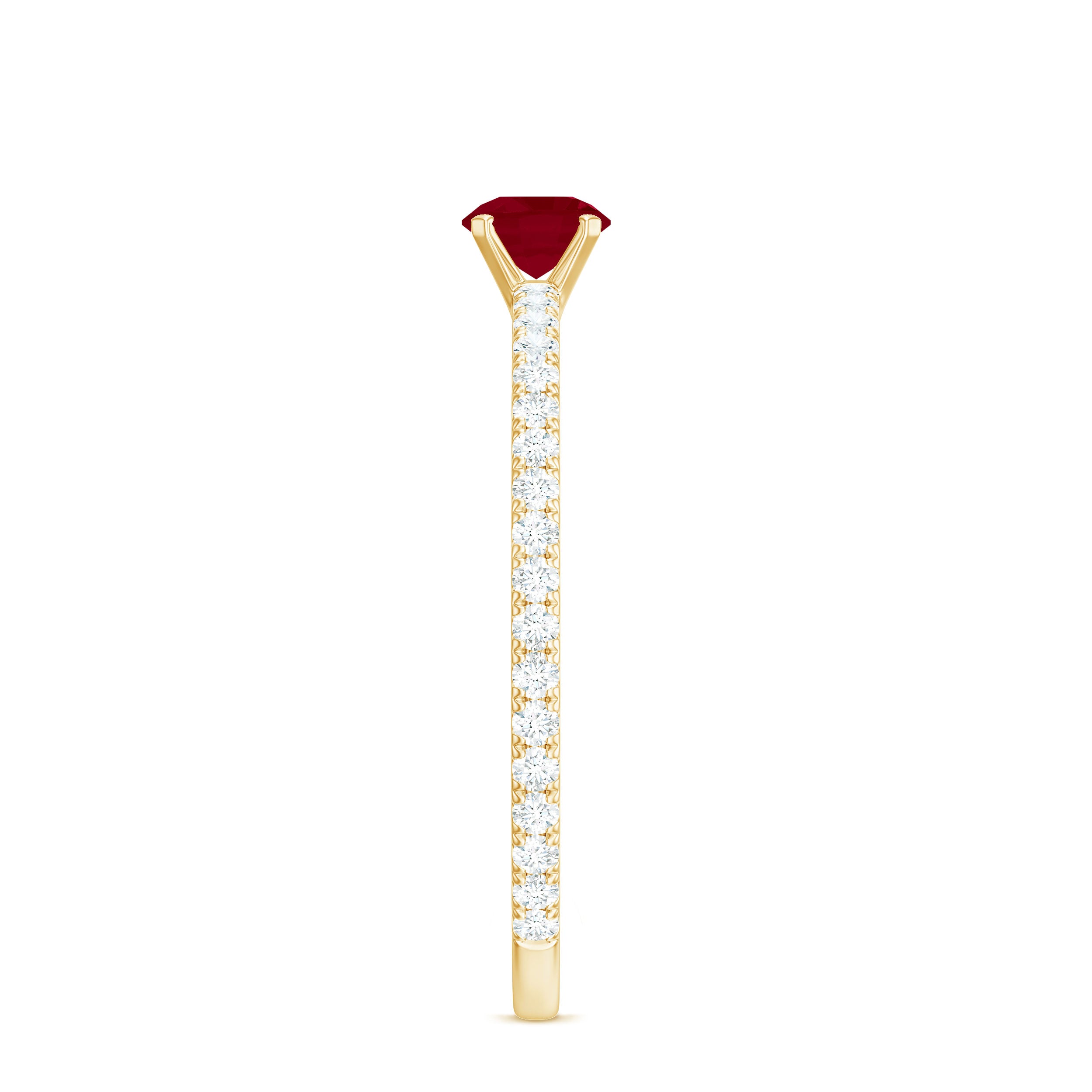 Solitaire Rings: - Graced by a single ruby gemstone, this solitaire ring holds a distinctive vibe. The simplicity of this solitaire ruby rings capture the hearts of onlookers. This type of style is best for those women who appreciate it as simple yet classic. Each ruby in solitaire ring set on yellow gold, or white gold metal brightens the design with its unlimited sparkle.