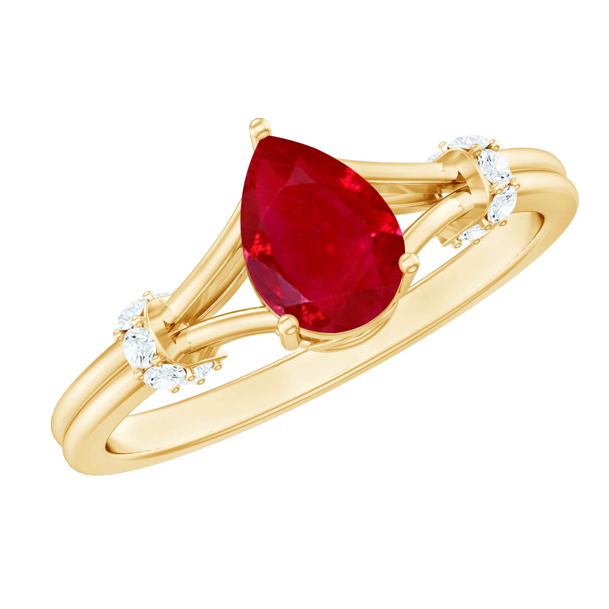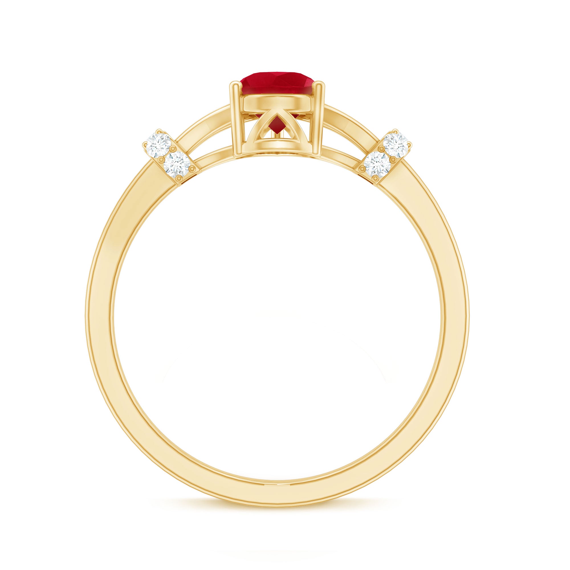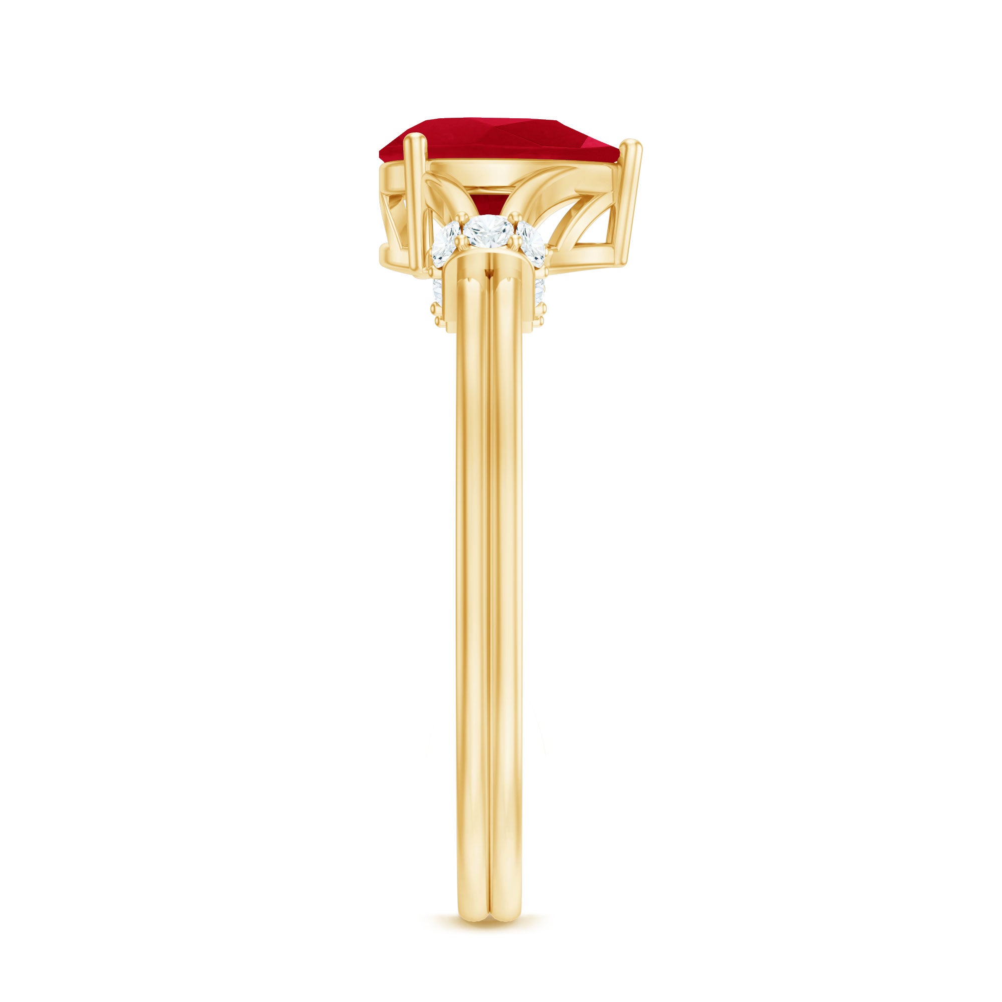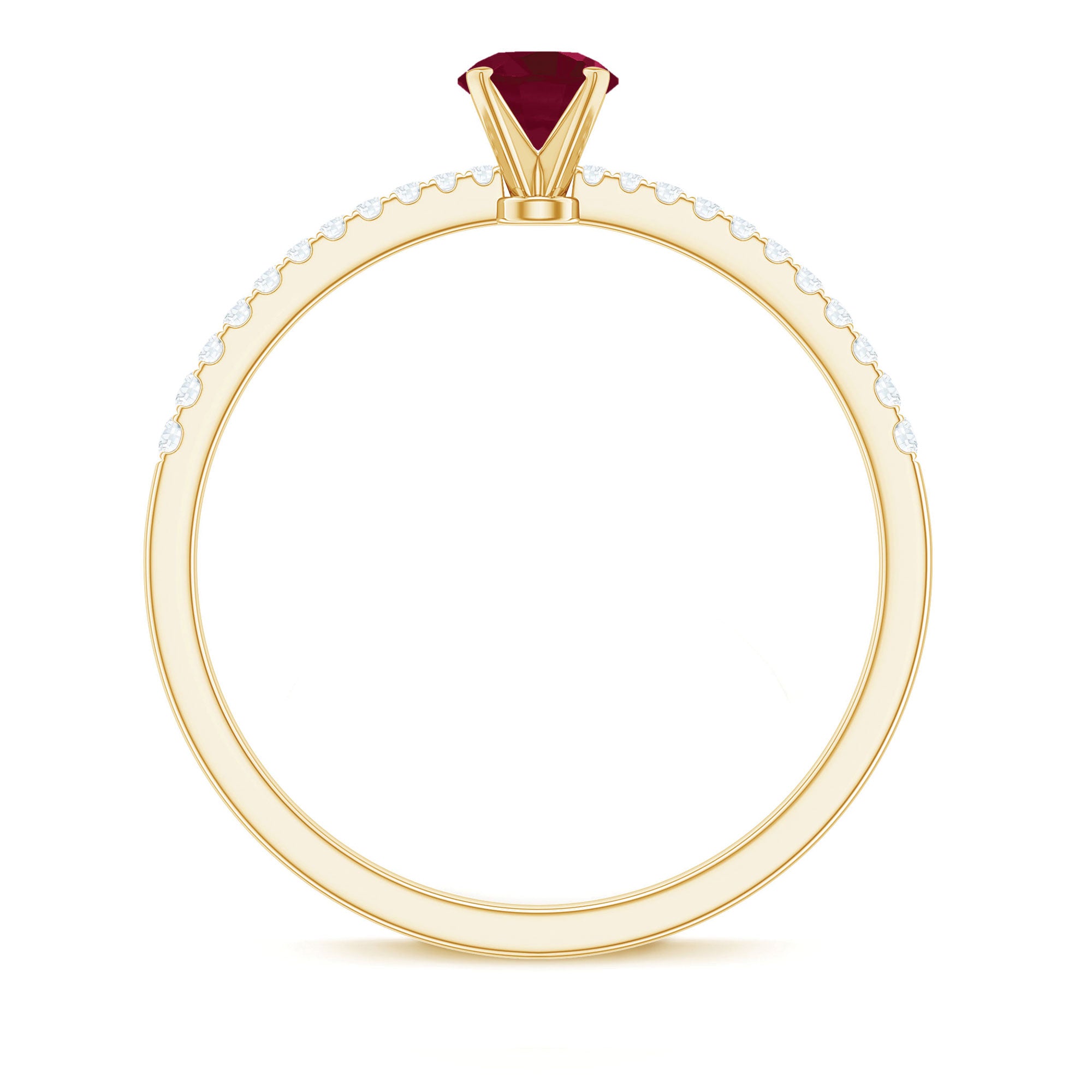 Solitaire Rings: - Graced by a single ruby gemstone, this solitaire ring holds a distinctive vibe. The simplicity of this solitaire ruby rings capture the hearts of onlookers. This type of style is best for those women who appreciate it as simple yet classic. Each ruby in solitaire ring set on yellow gold, or white gold metal brightens the design with its unlimited sparkle.