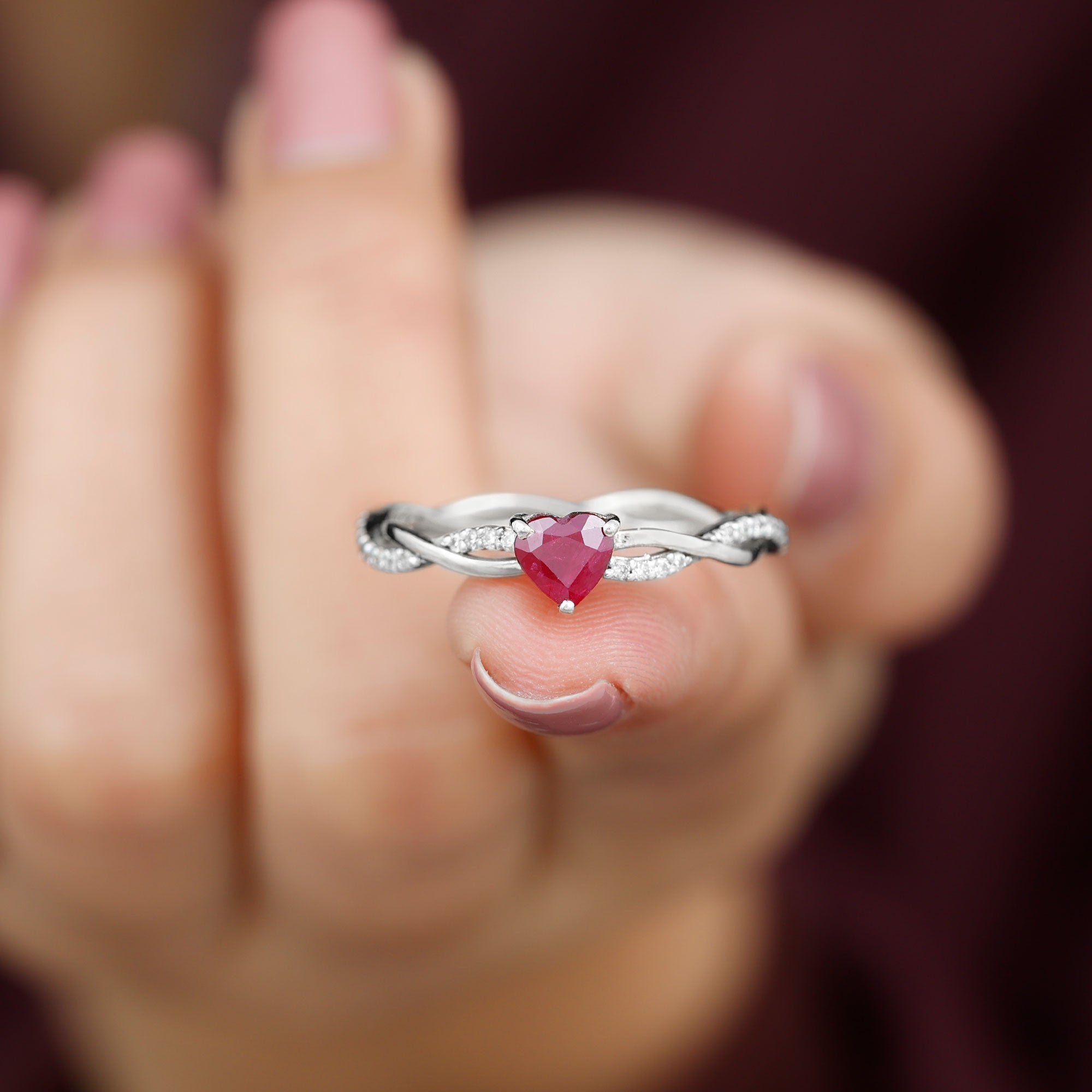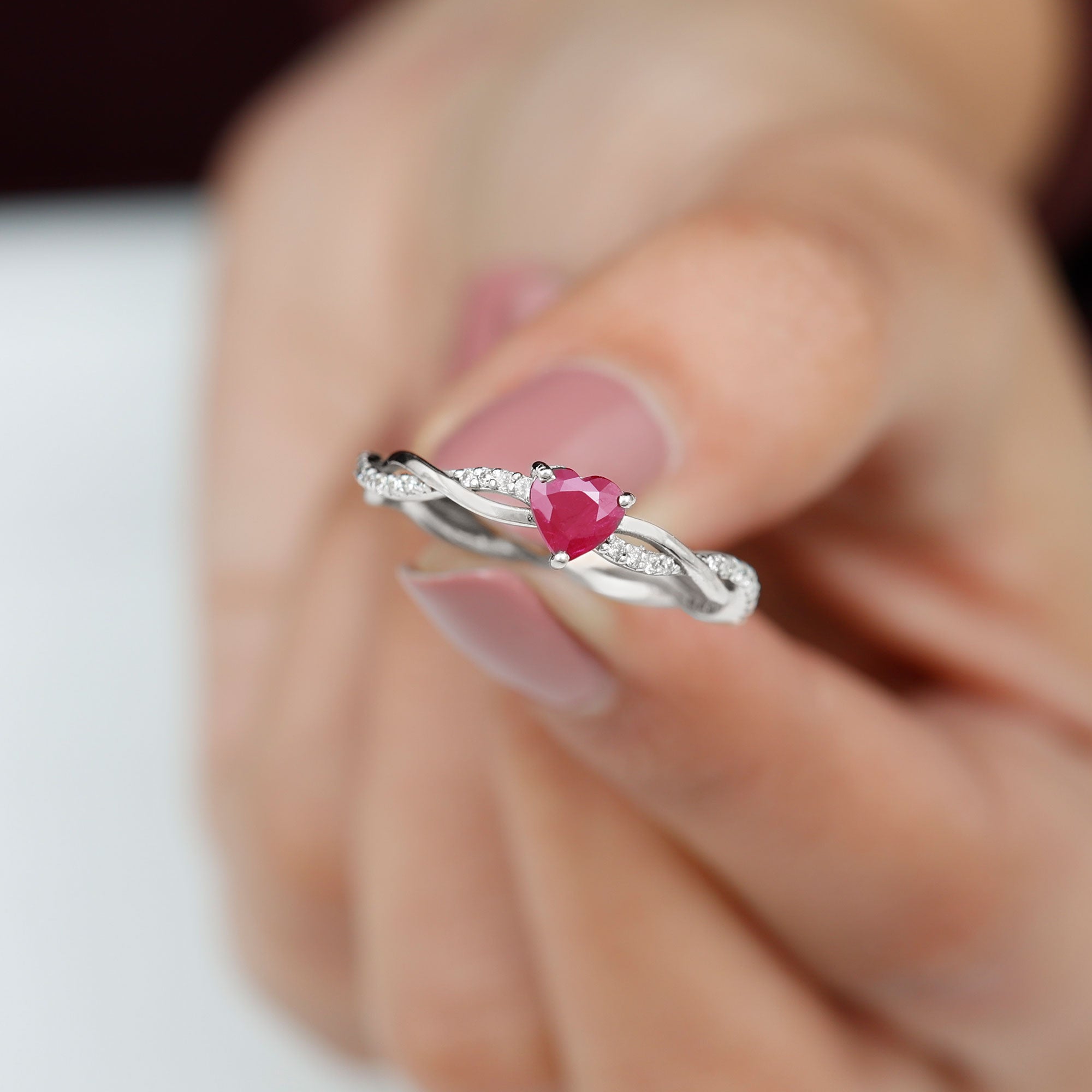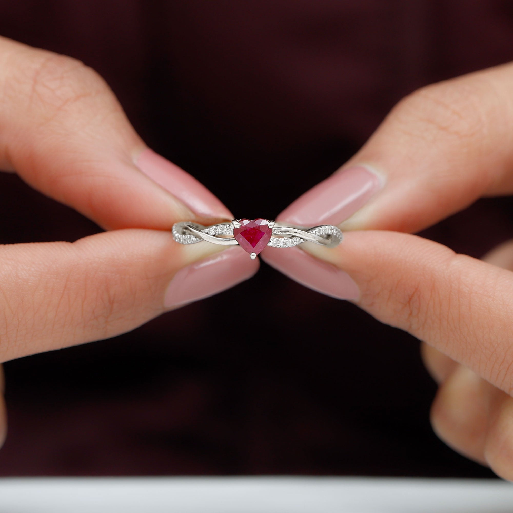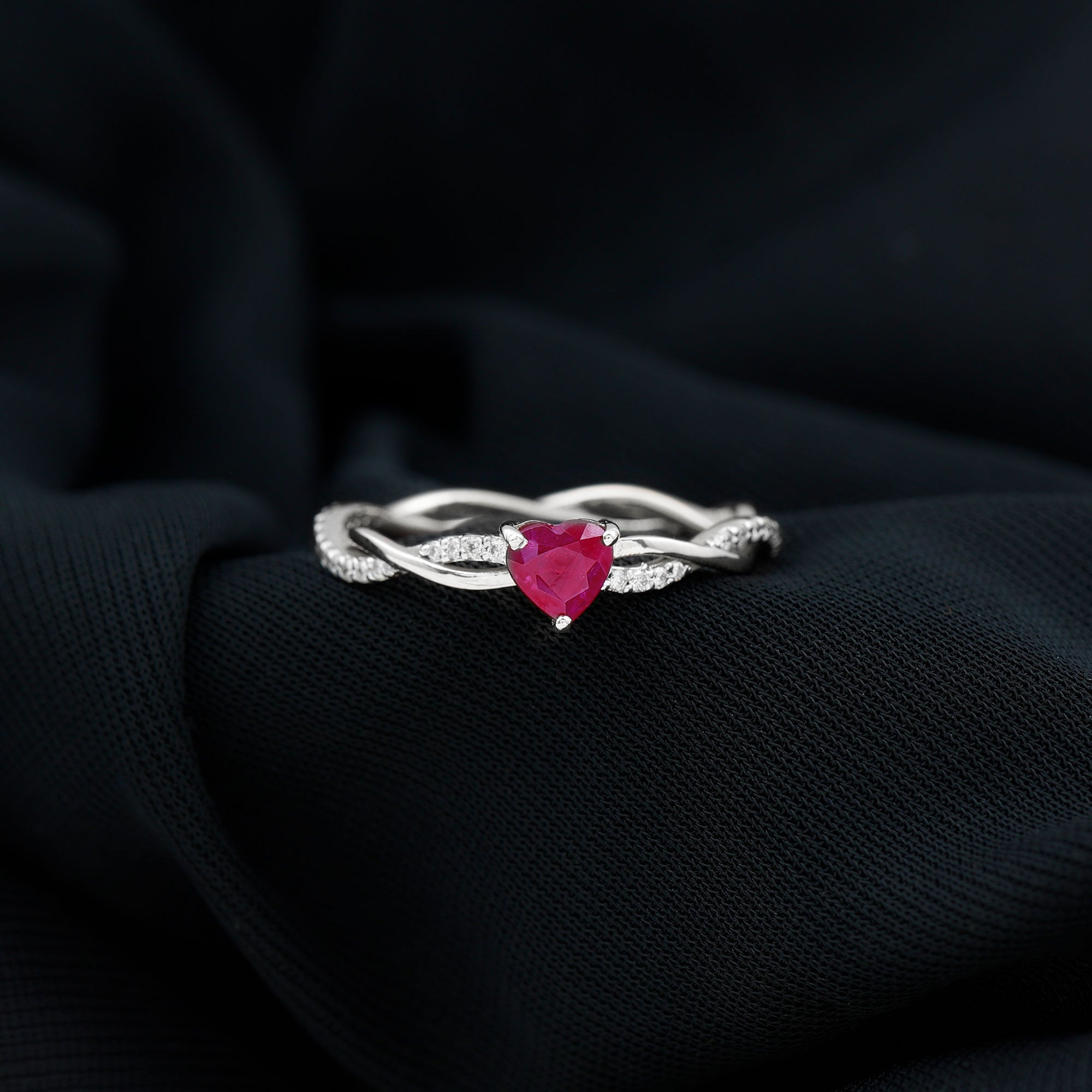 Heart Rings: - our heart ruby rings are elegantly secured in a prong setting or bezel setting. These rings feature a heart-shaped ruby as the center of attraction, which is the symbol of love, passion, and devotion, a popular choice for romantic occasions and daily wear. The deep red ruby makes the stunning contrast with the white gold metal, a must-have accessory to your wardrobe.