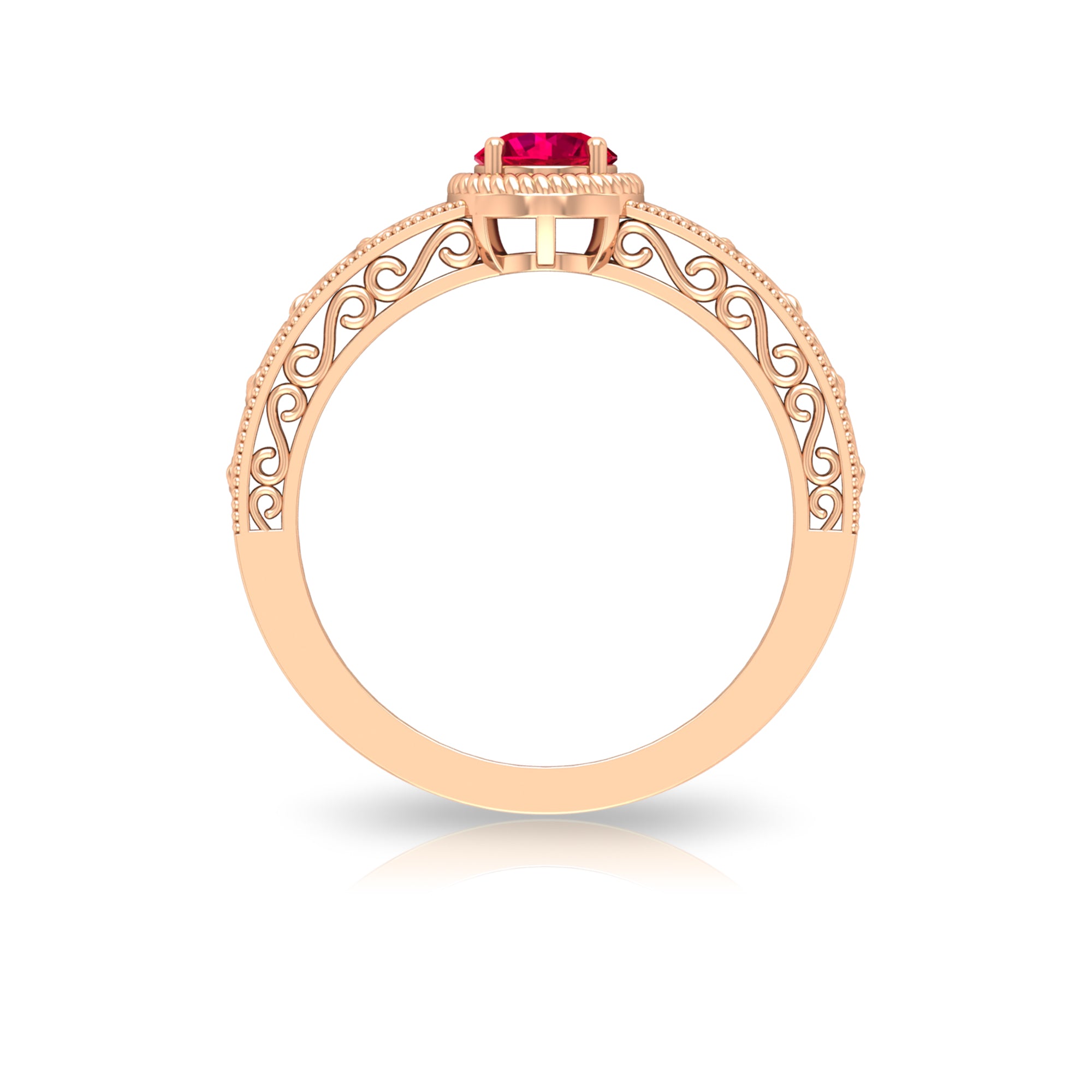 The higher the ruby's quality, the more valuable and rarer it becomes. The main factors influencing a ruby's price include its size, measured in carat weight, and the intensity of its color. Rubies described as blood red or pigeon blood fetch some of the highest prices due to their vibrant hues, which are generally valued. Generally, the price per carat of rubies is lower than that of diamonds but comparable to sapphires and emeralds. The price of a ruby ring at Rosec Jewels starts at $279 to over $1829, thus you’ll find a wide range of designs and metal choices, we are guaranteed to satisfy your needs.