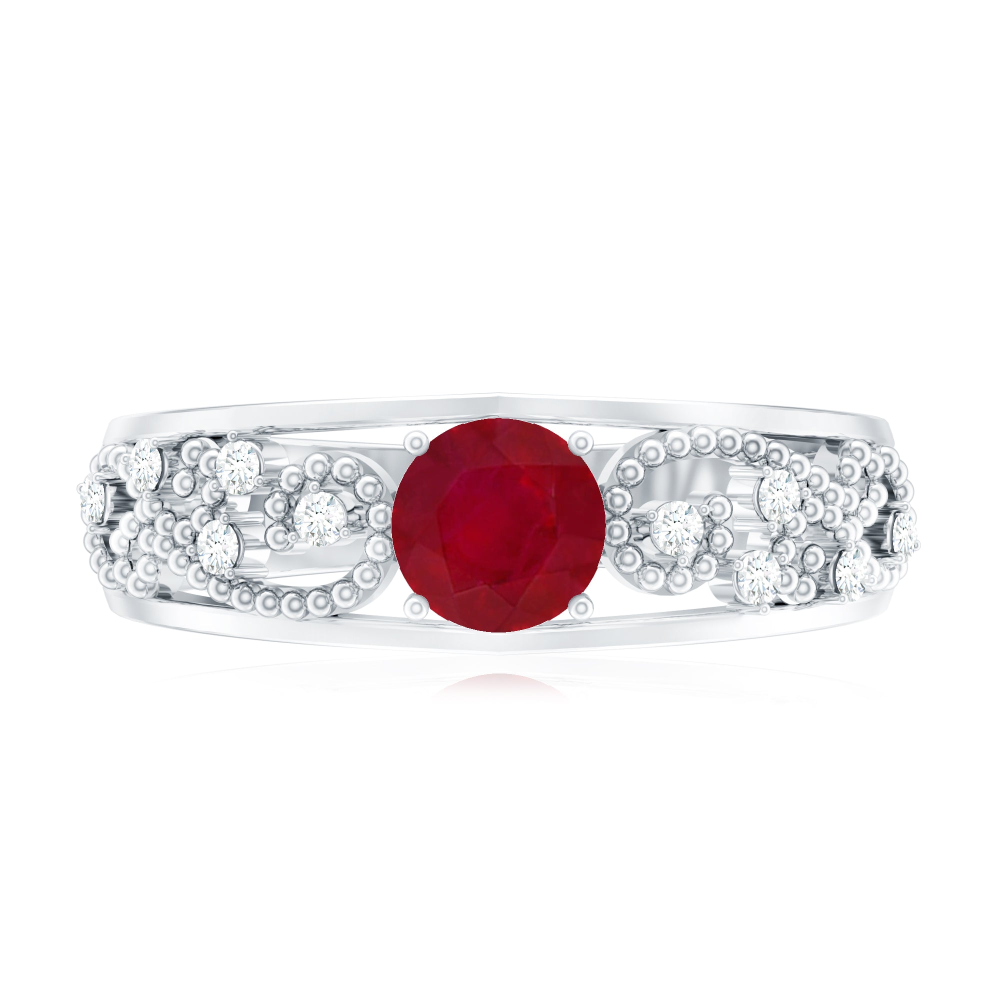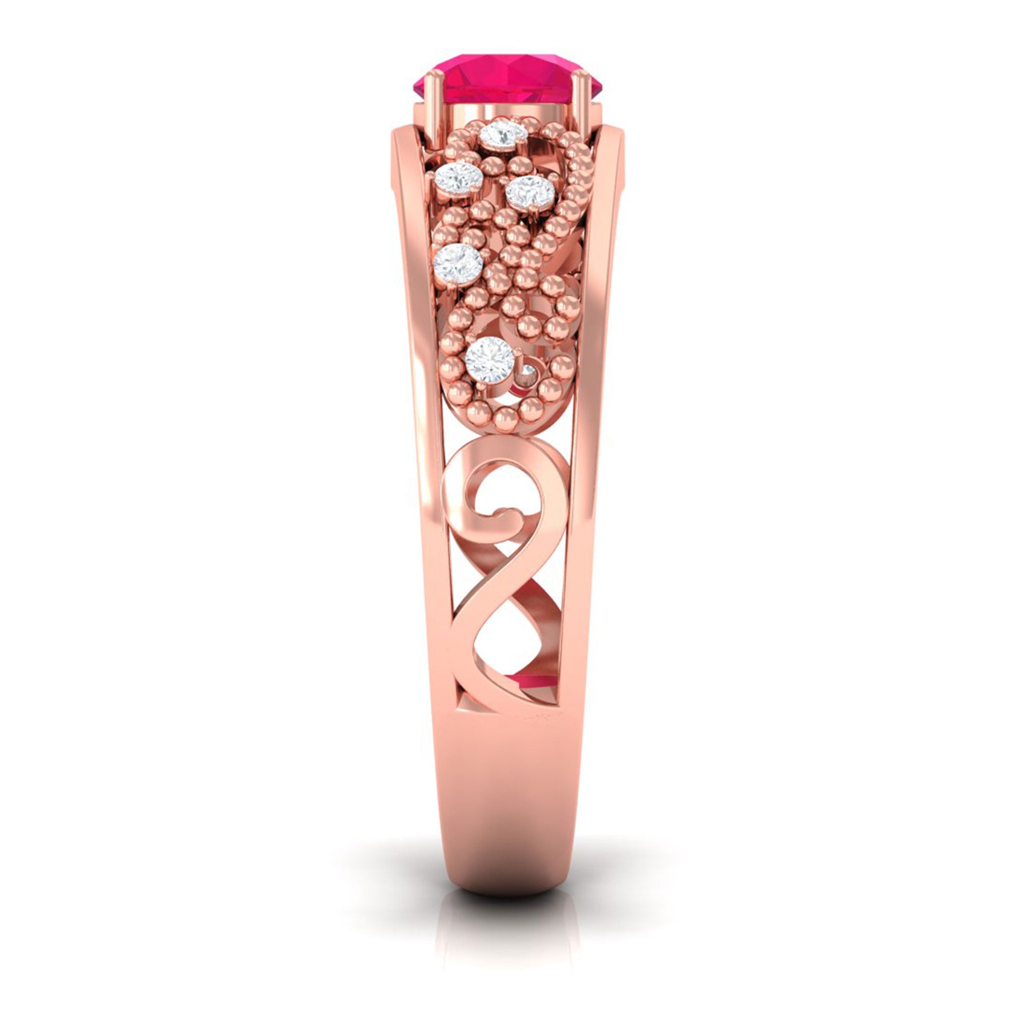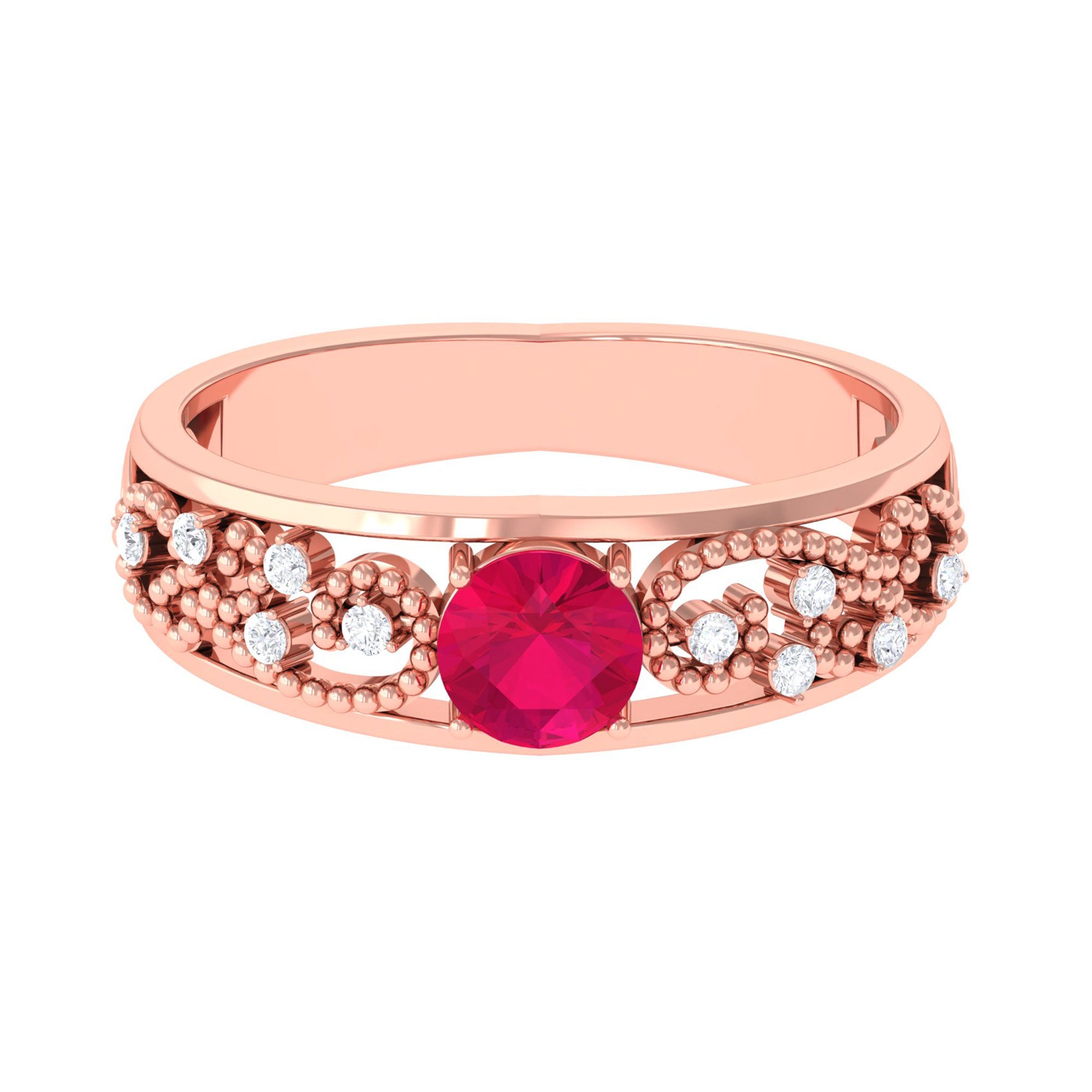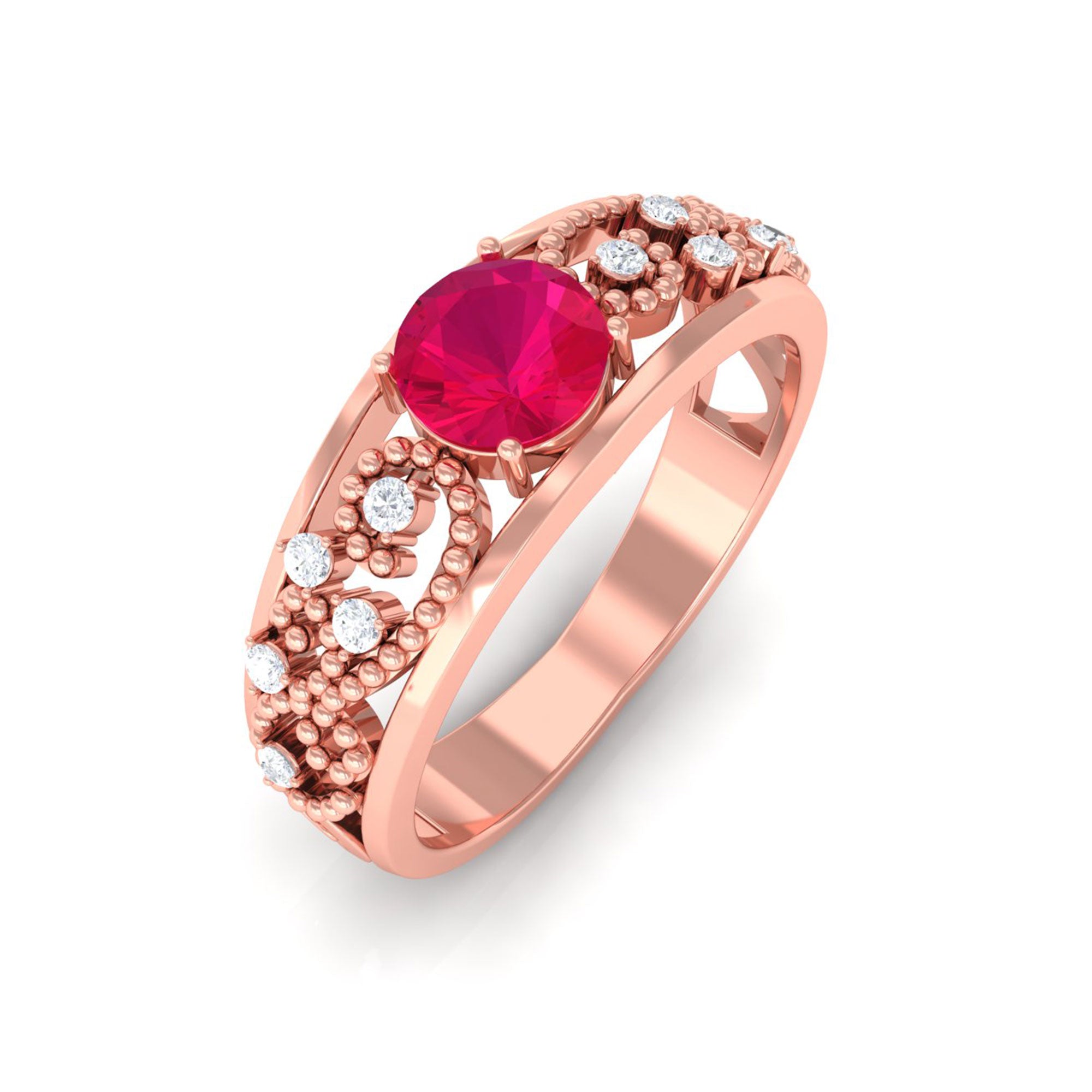 Ruby rings are available in solitaire, halo, three-stone, and vintage-inspired styles. Solitaire designs emphasize the natural depth of the center stone, while halo settings introduce surrounding brilliance for added dimension and protection.
