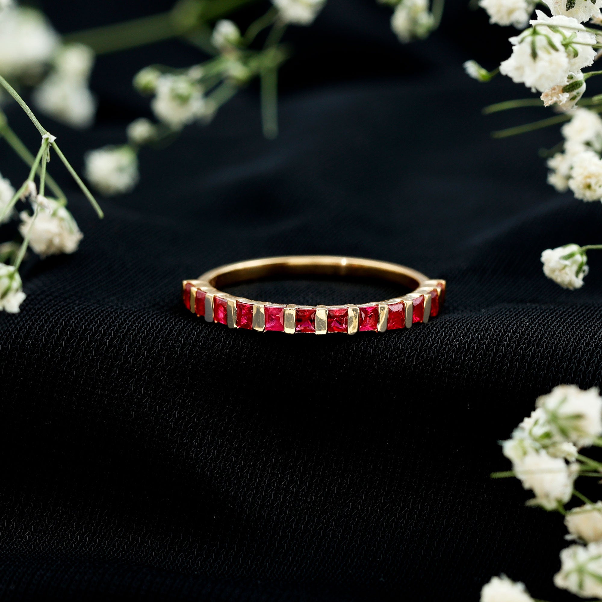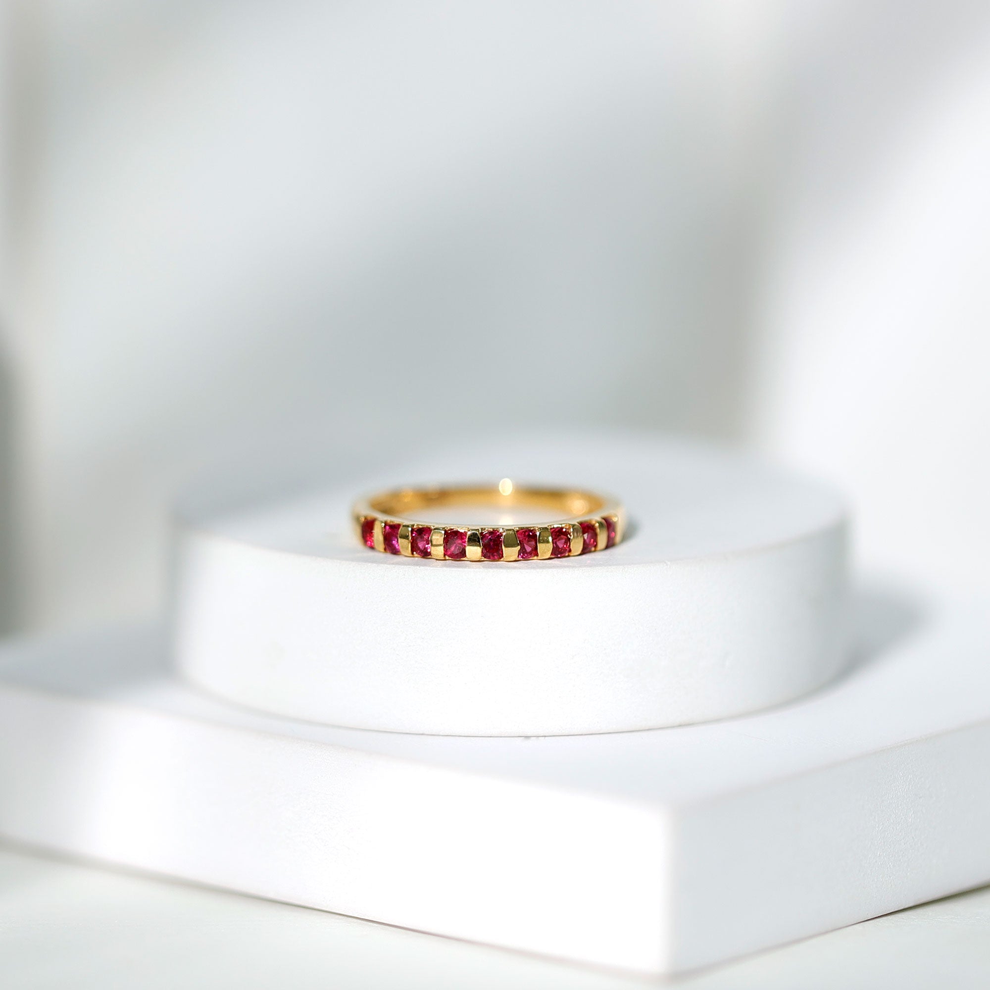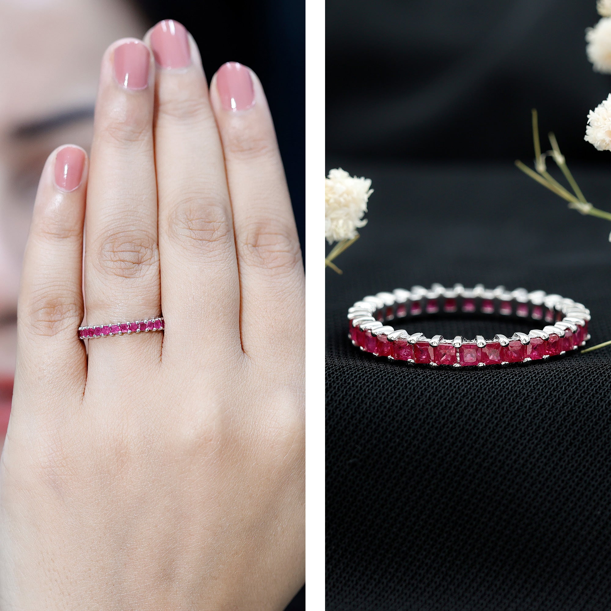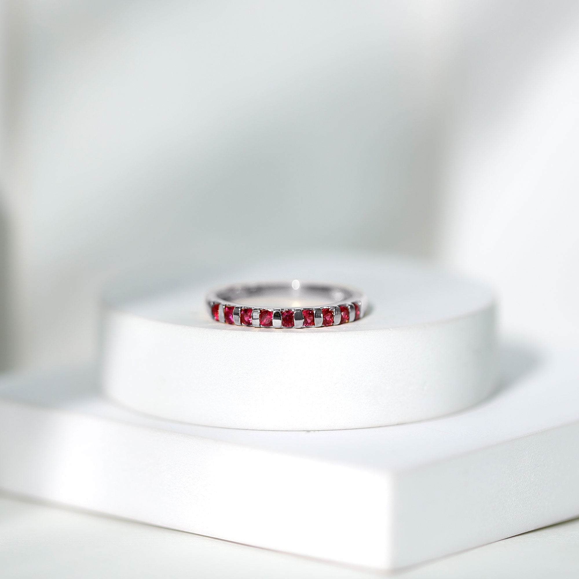 Ruby rings are chosen for their deep red color and enduring symbolism. As the July birthstone, ruby is traditionally associated with love and commitment, making it a meaningful choice for engagement, anniversary, and milestone jewelry.