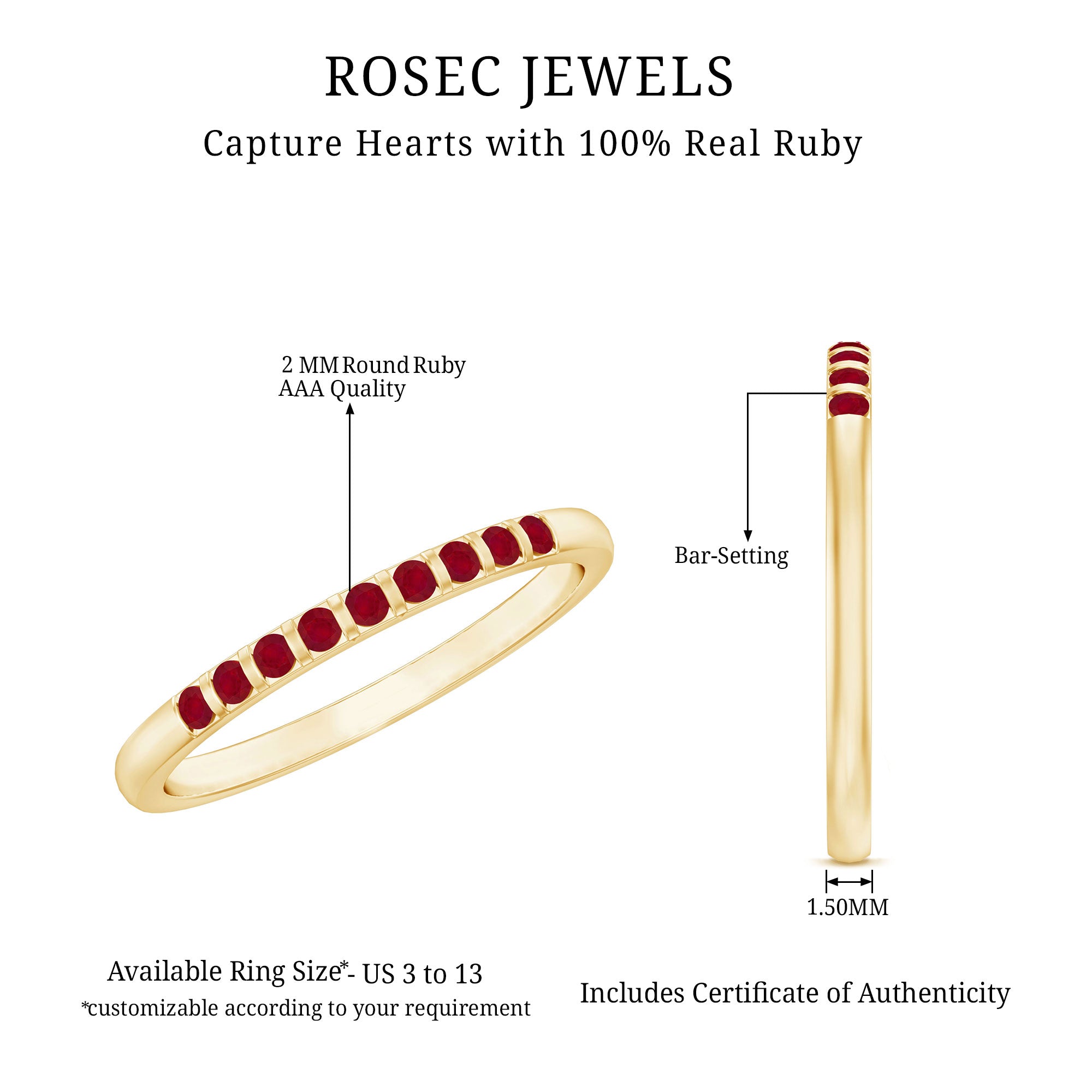 Ruby is a durable gemstone and can be worn daily when secured in a well-constructed setting. Designs with protective prongs or halo frames help reduce exposure to impact.
