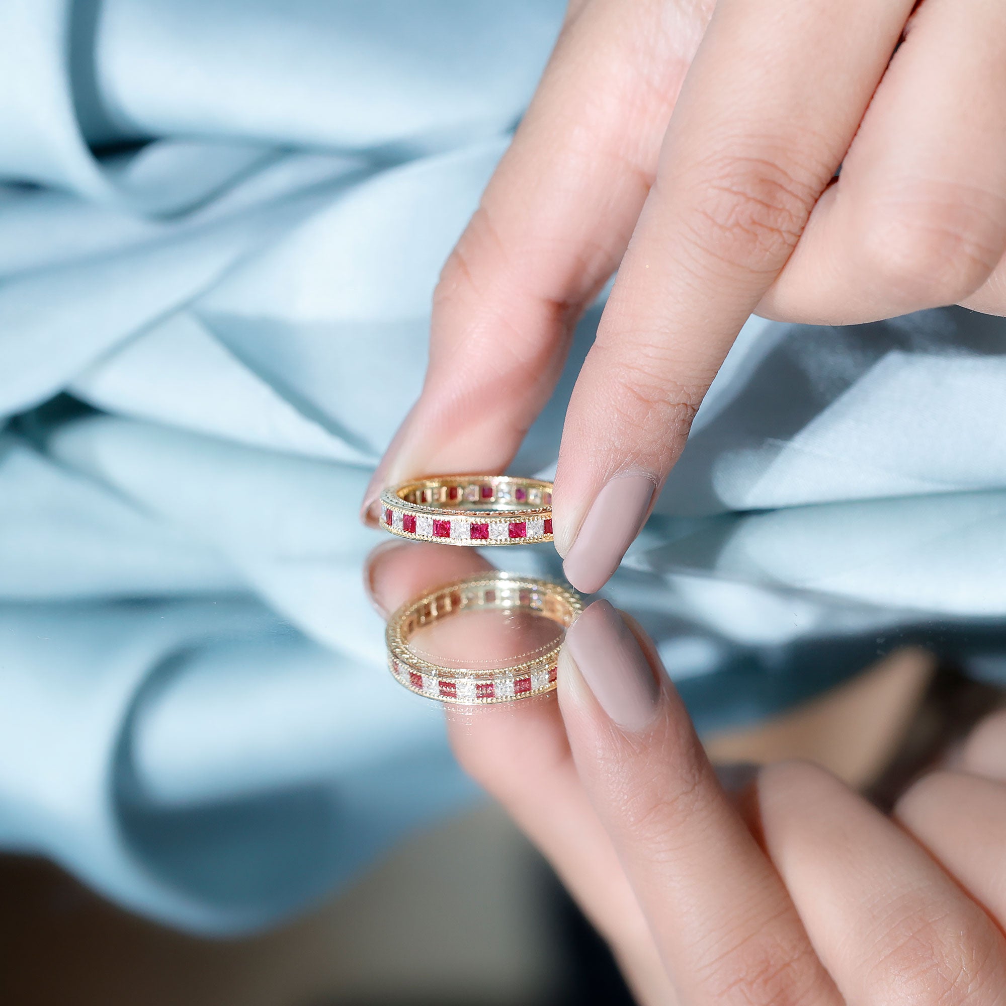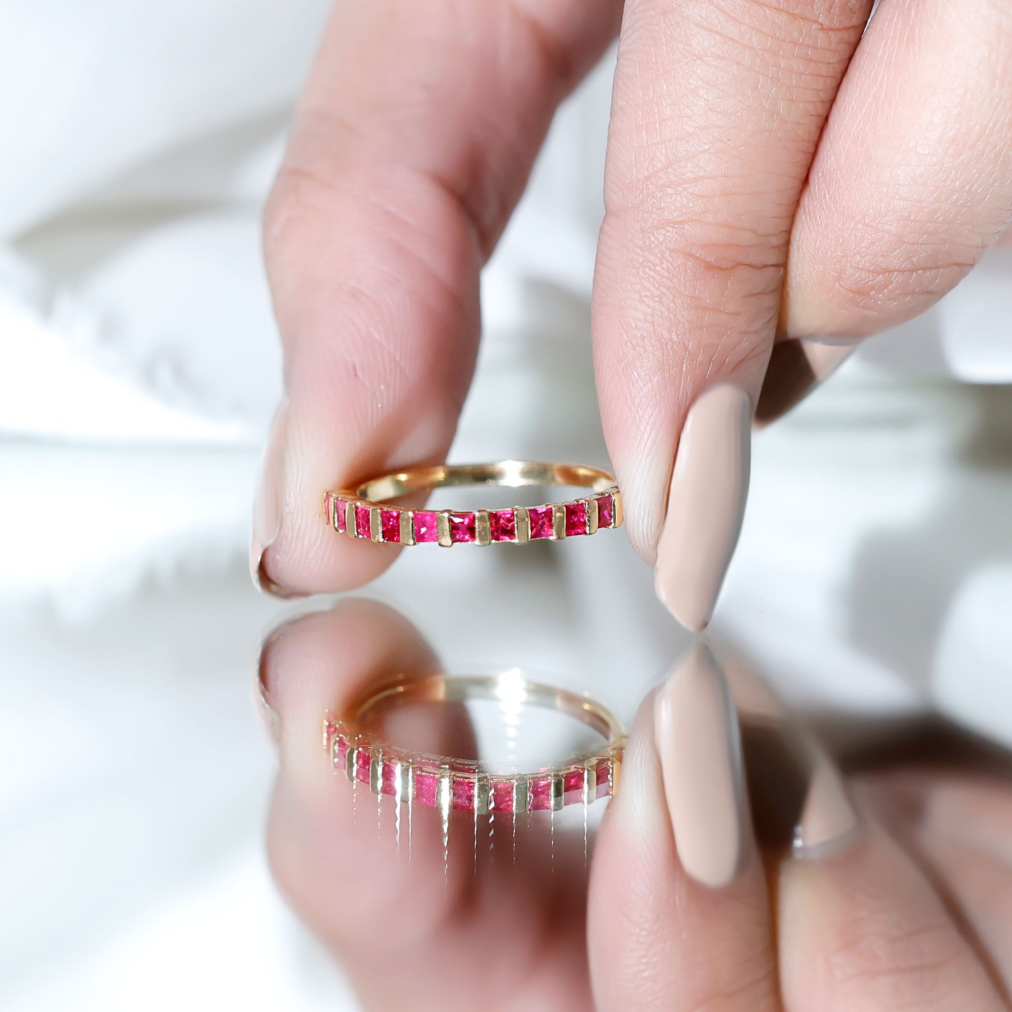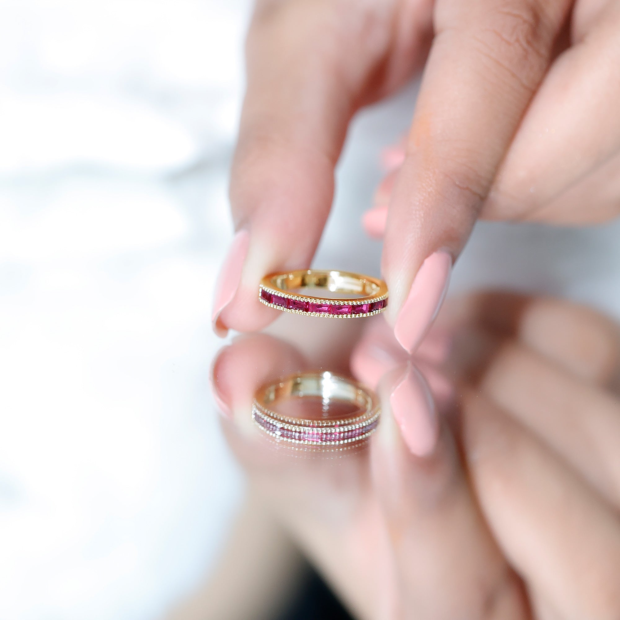 For long-term appearance, it is advisable to remove rings during heavy manual activities and store them separately from other jewelry. With thoughtful wear and secure settings, ruby rings maintain their color and structure over time.