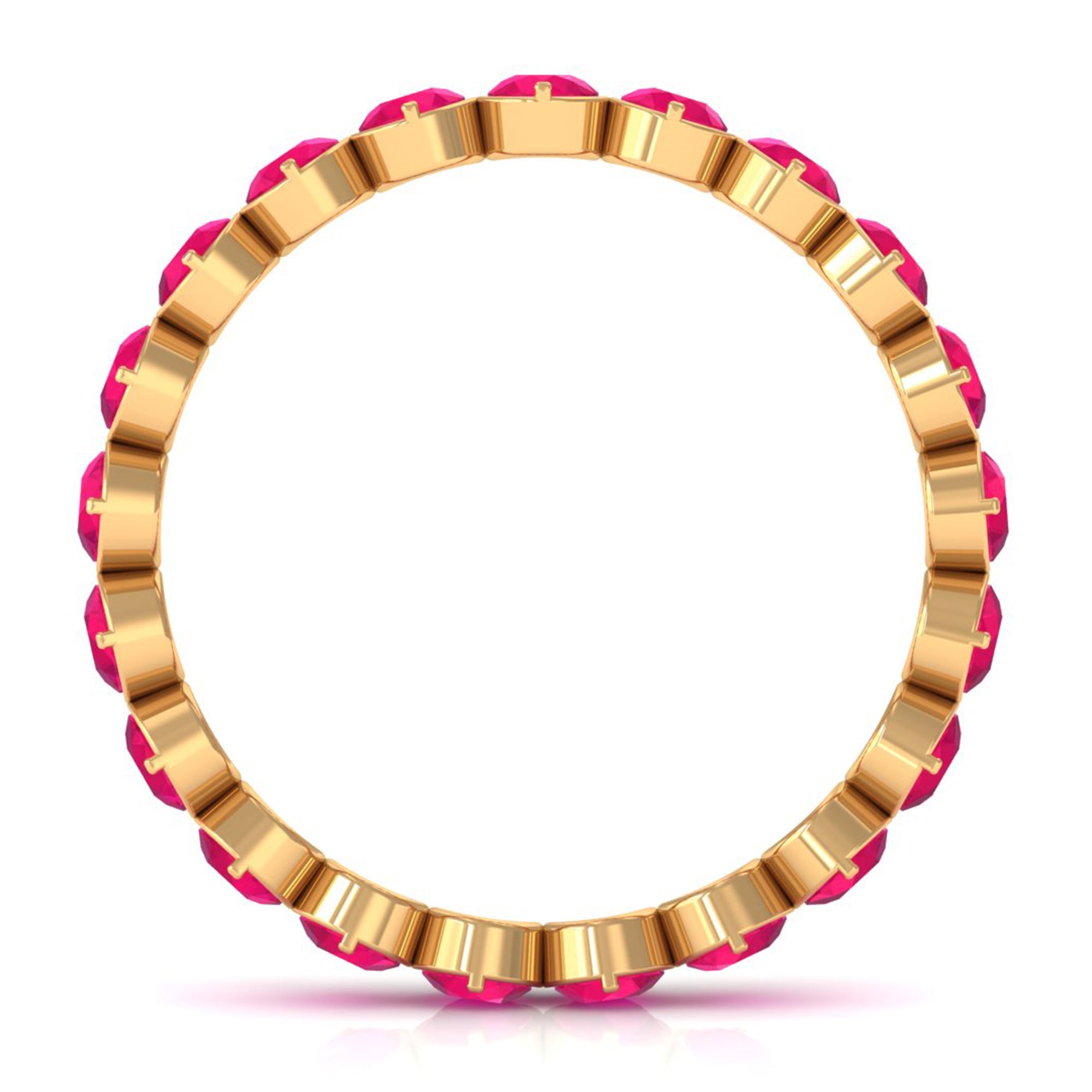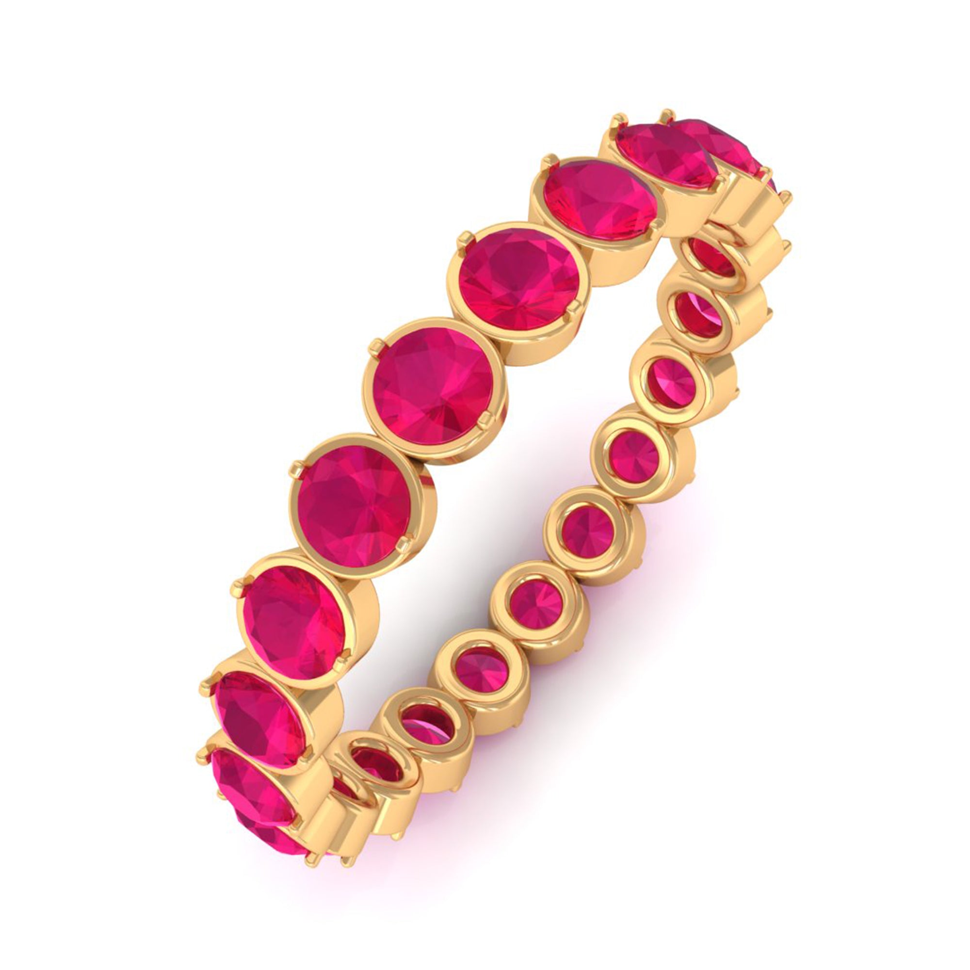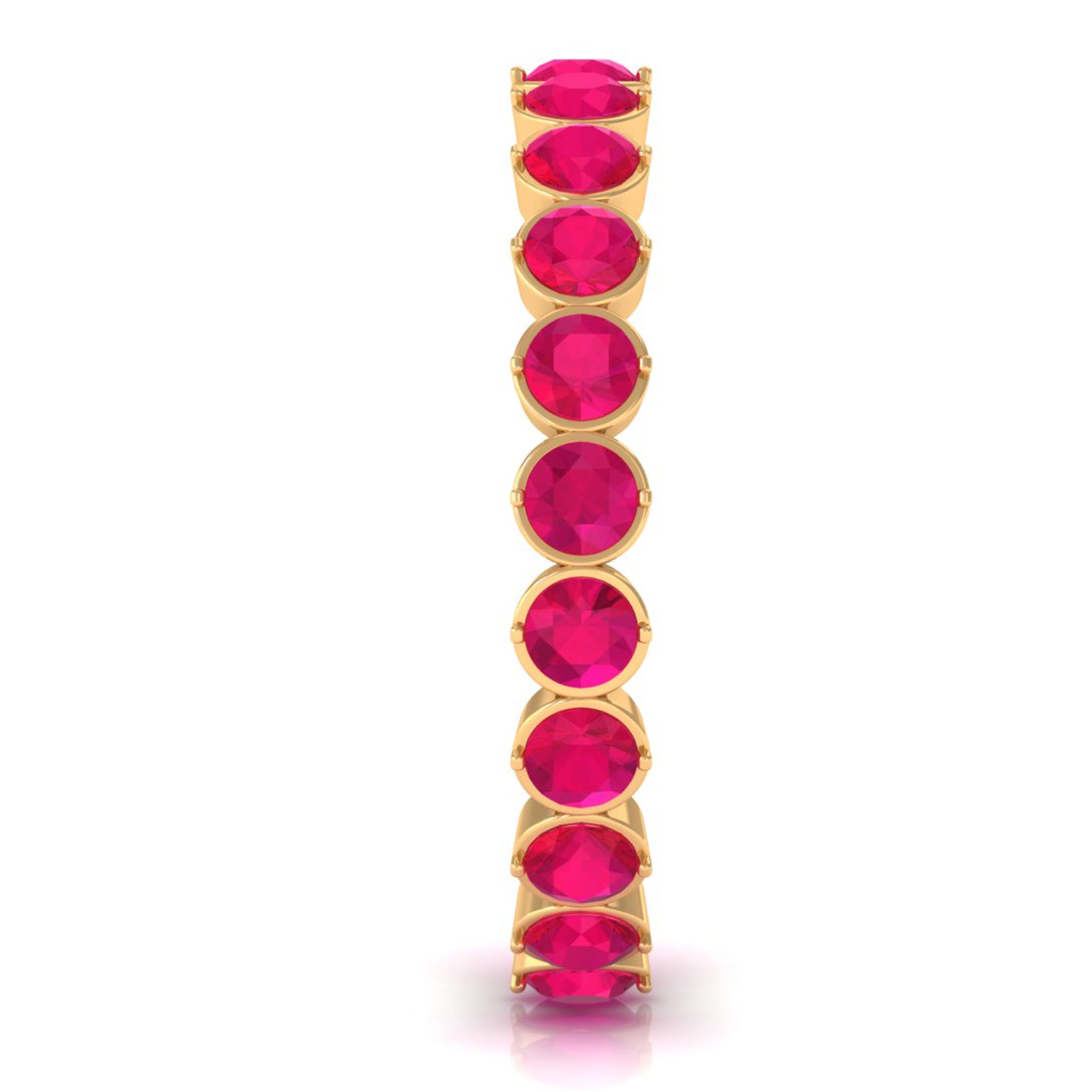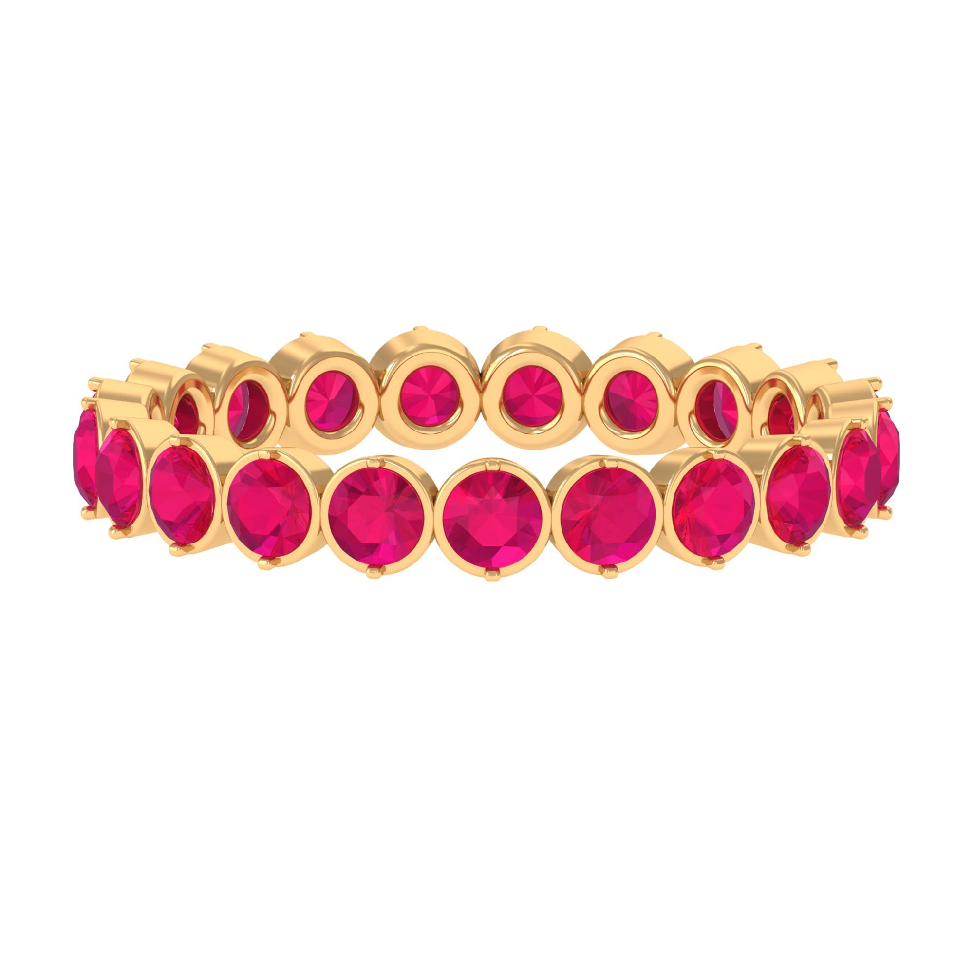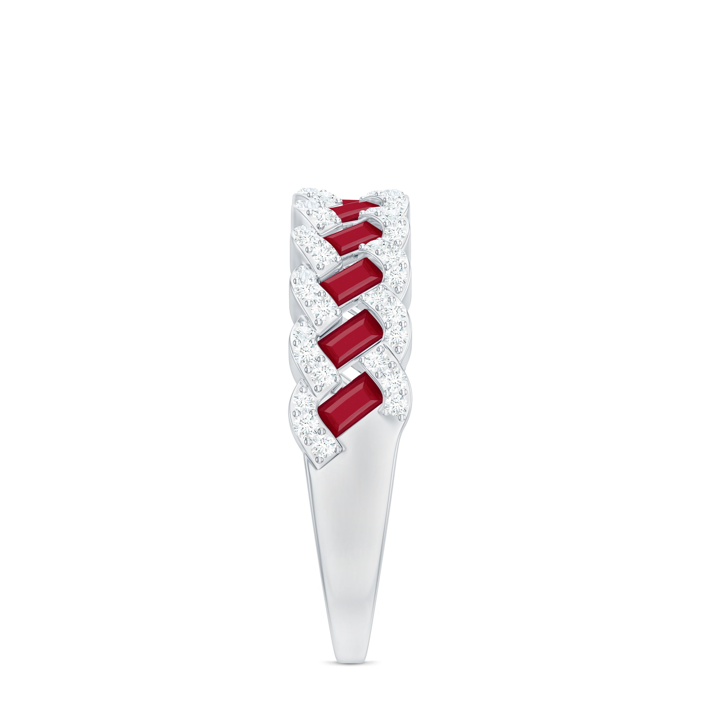 Yellow gold enhances ruby’s warmth, white gold creates crisp contrast, and rose gold softens the overall appearance. The best choice depends on your preferred aesthetic.