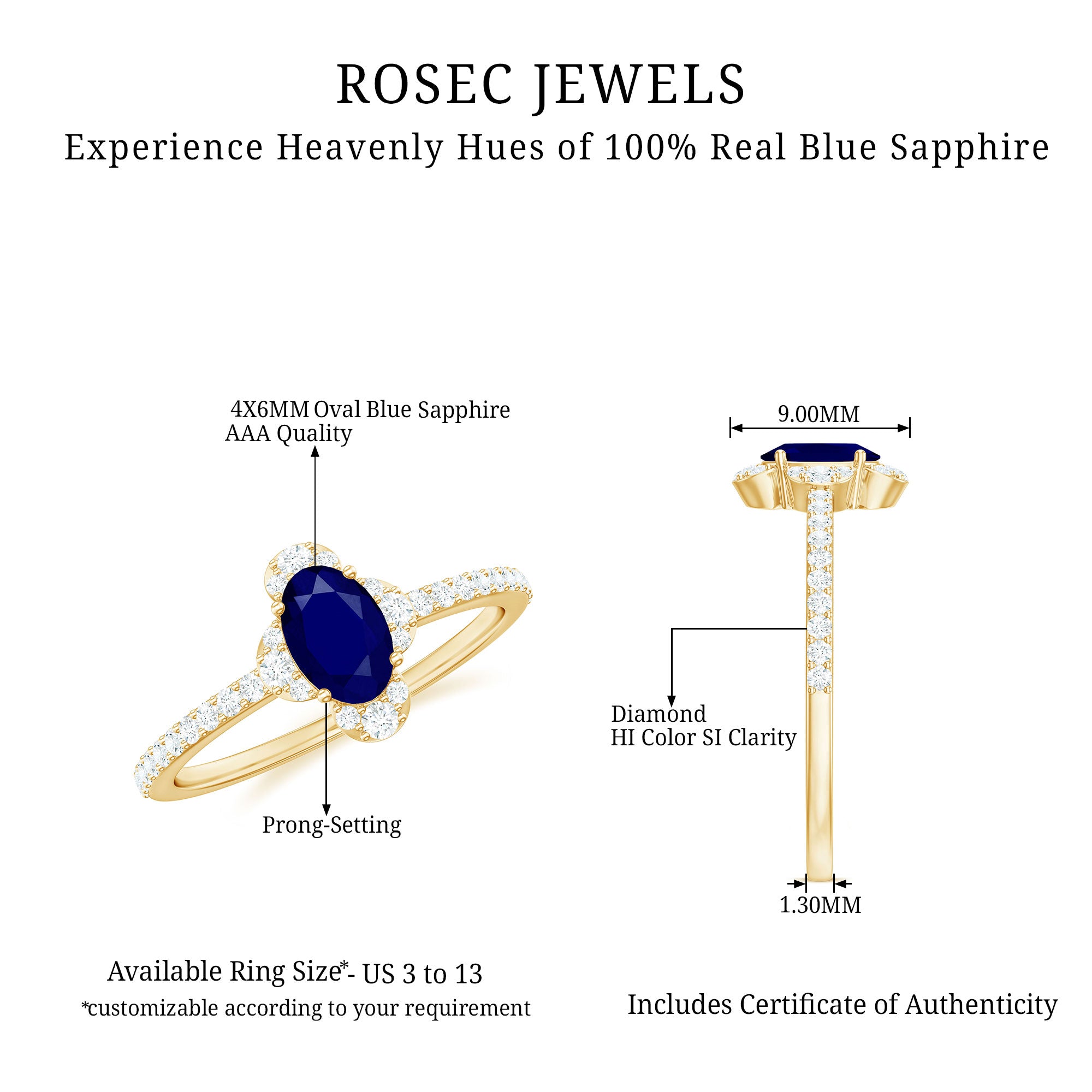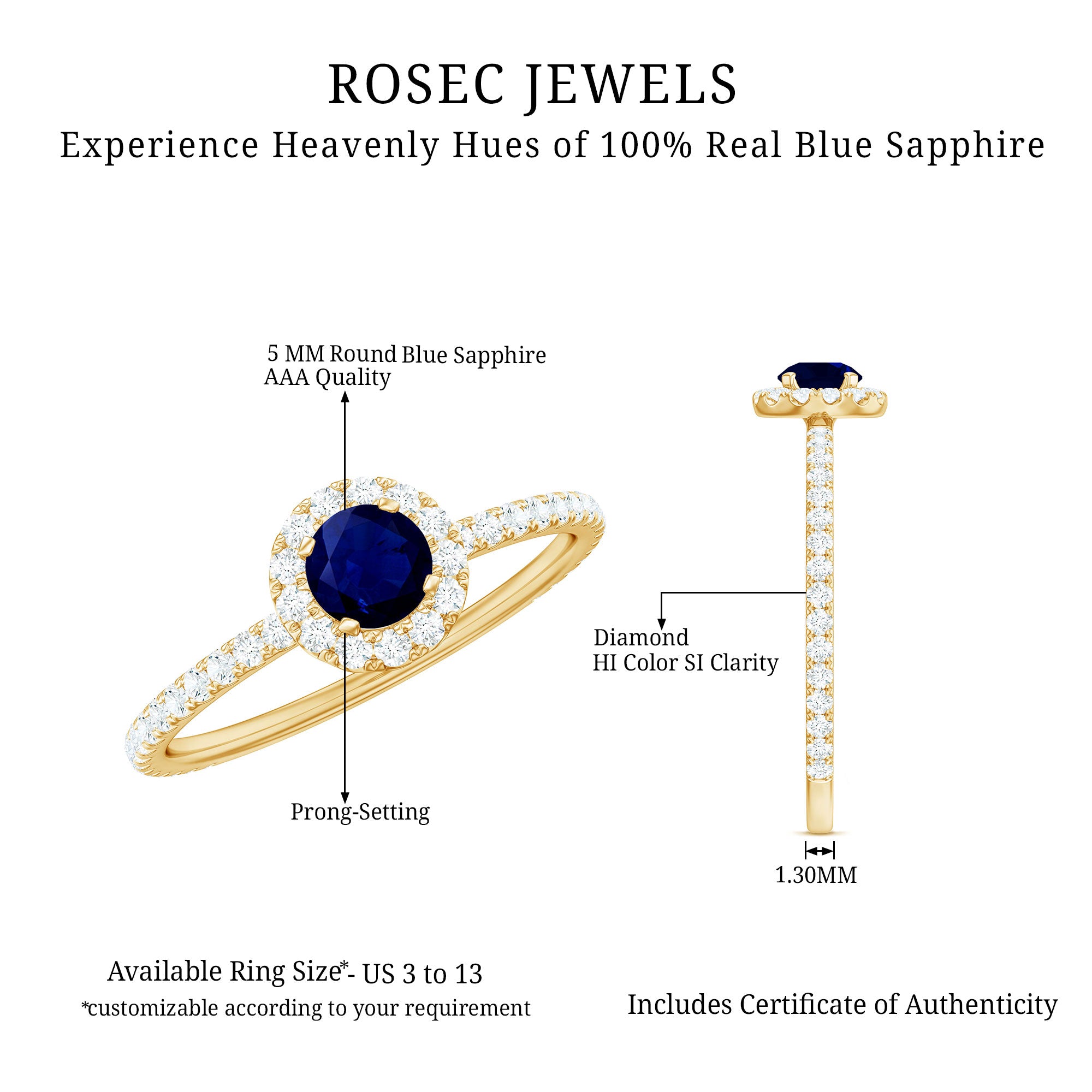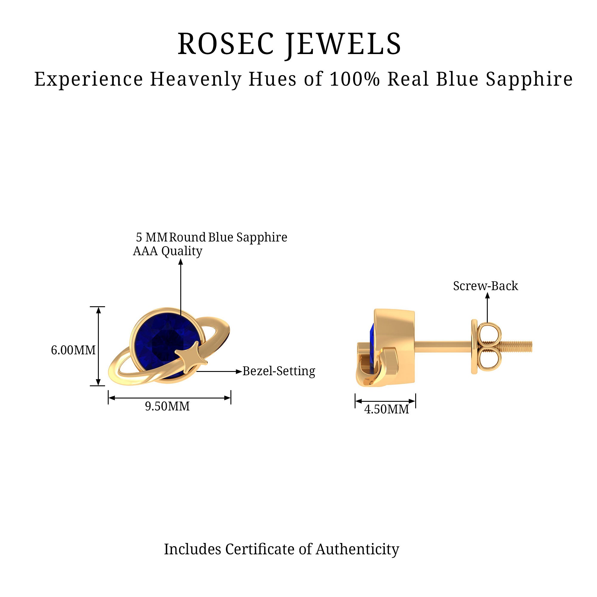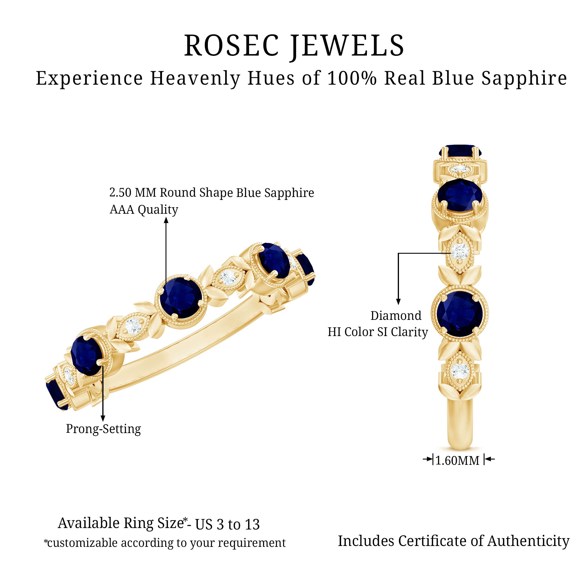 Yellow Gold: - Being precious, yellow gold offers a warm and sophisticated look when used to craft enduring sapphire jewelry. At Rosec Jewels, you can buy the sapphire jewelry set of 10k, 14k, and 18k yellow gold.