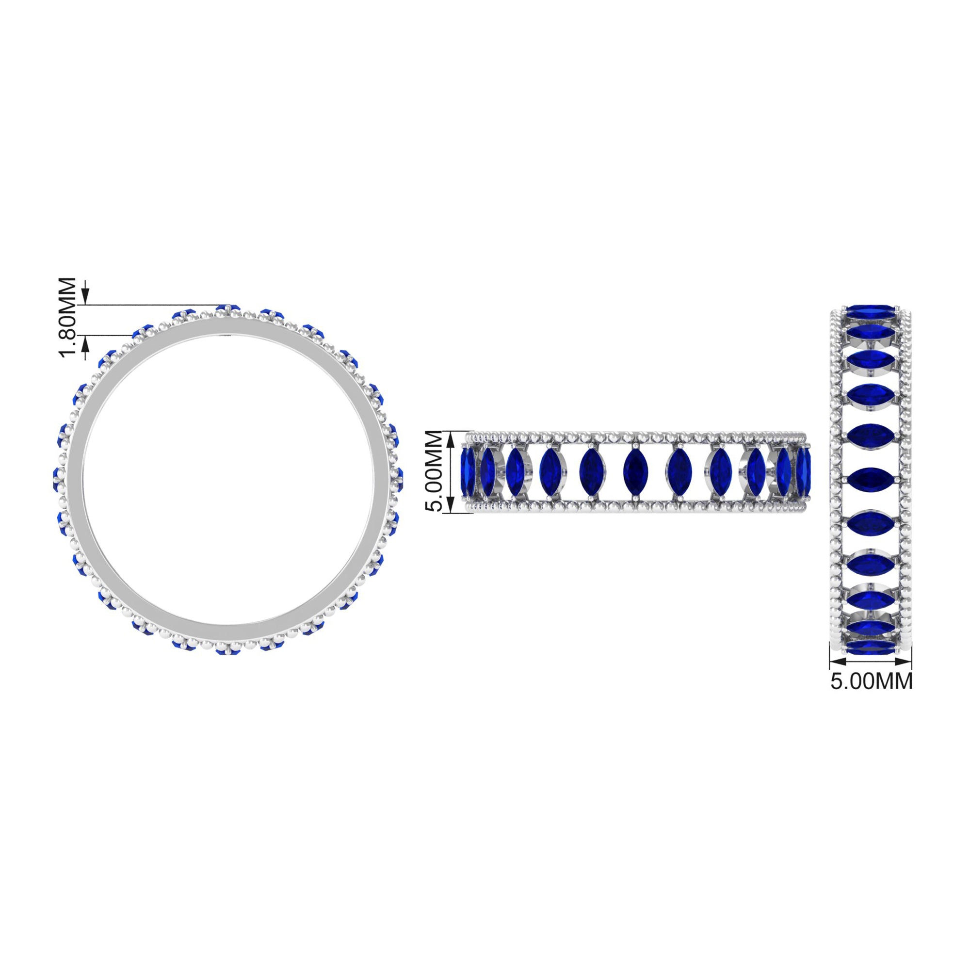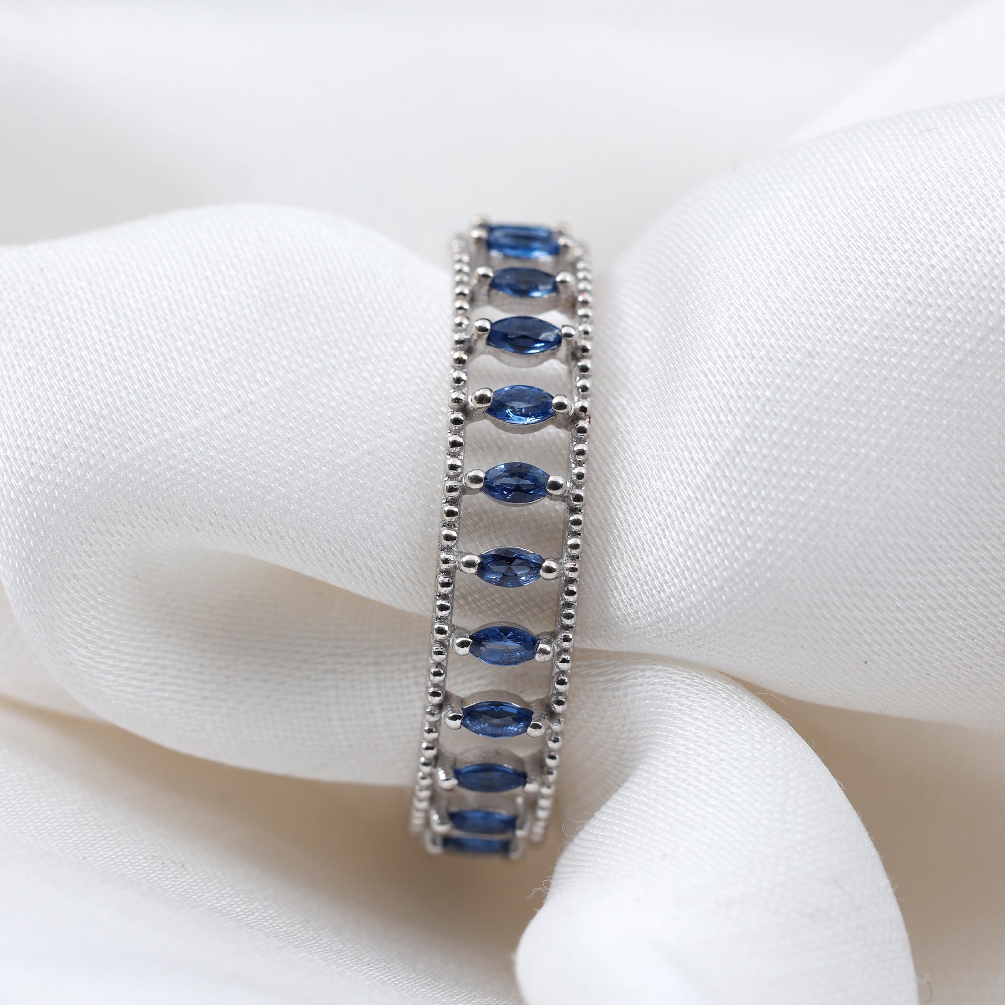 Silver: - Recognized for its affordability and versatility, a popular pick for blue sapphire jewelry, its white tone complements the blue shade of this gemstone, offering an elegant and classy look.