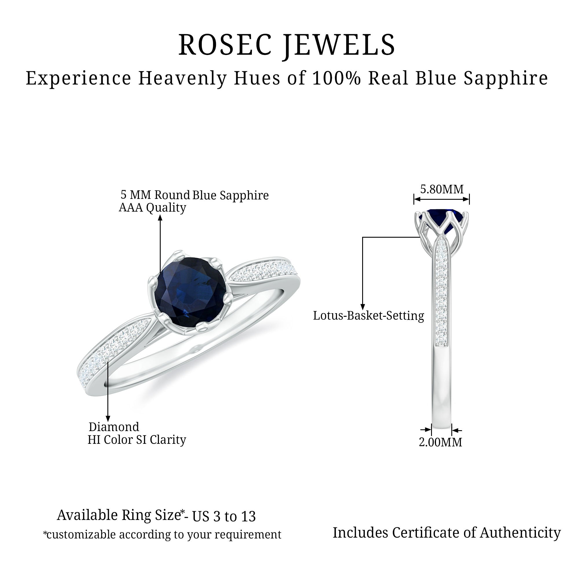 Durability: - Sapphires scored 9 on the Mohs scale, making it a durable gemstone for everyday wear.