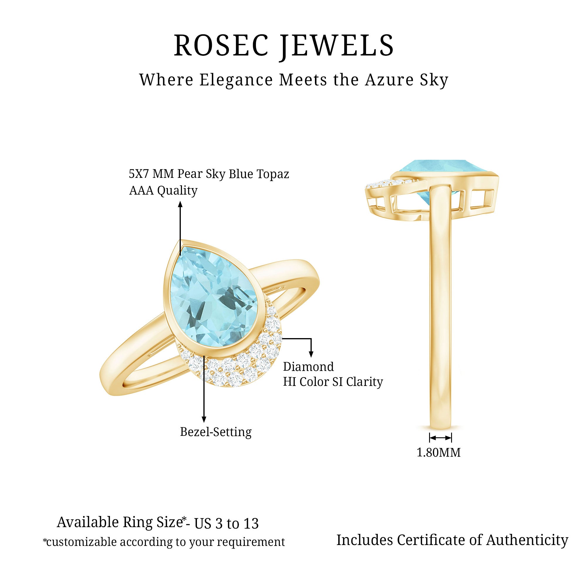 • Sky Blue Topaz Halo Rings:- this collection of rings is inspired by a halo of small glistening diamonds with a center sky blue topaz gemstone. This style is not only glowing but also allows the center gemstone to appear larger. Their shimmery circumference can match with any shape or cut, which makes the sky blue topaz halo rings popular for every day comfort or occasional wear.