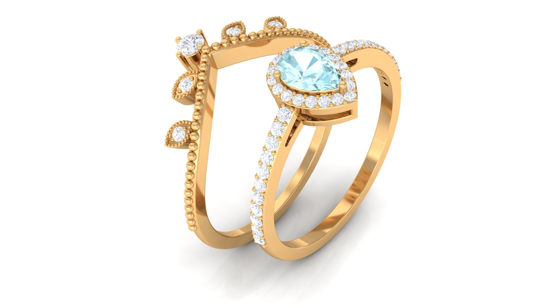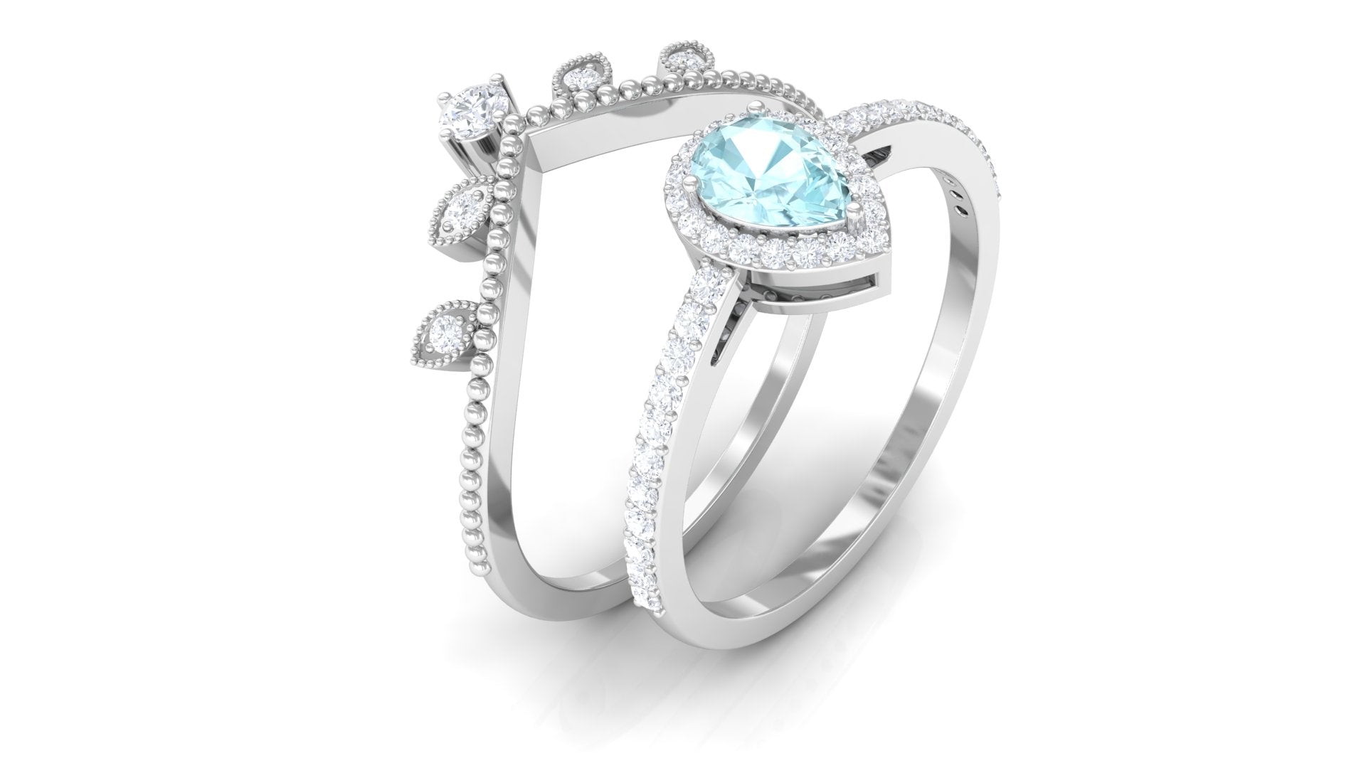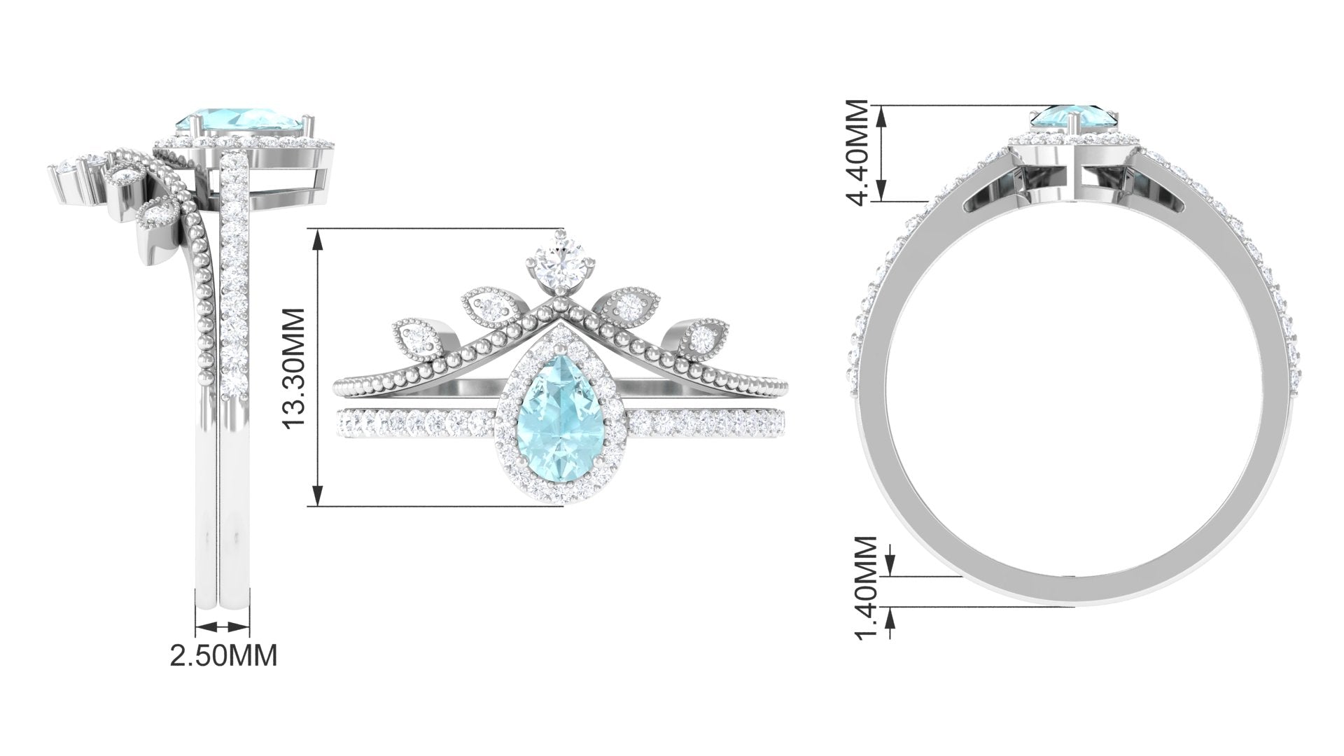 • Sky Blue Topaz Engagement Set: - Featuring two rings (the bride's engagement ring and wedding ring) complementing each other. Our sky blue topaz ring for her is often meaningful, more classic, and stylish, introducing dazzling halo patterns, and embellishments. Each set is crafted to captivate the hearts of onlookers, creating a dazzling ensemble for forever-shared moments.