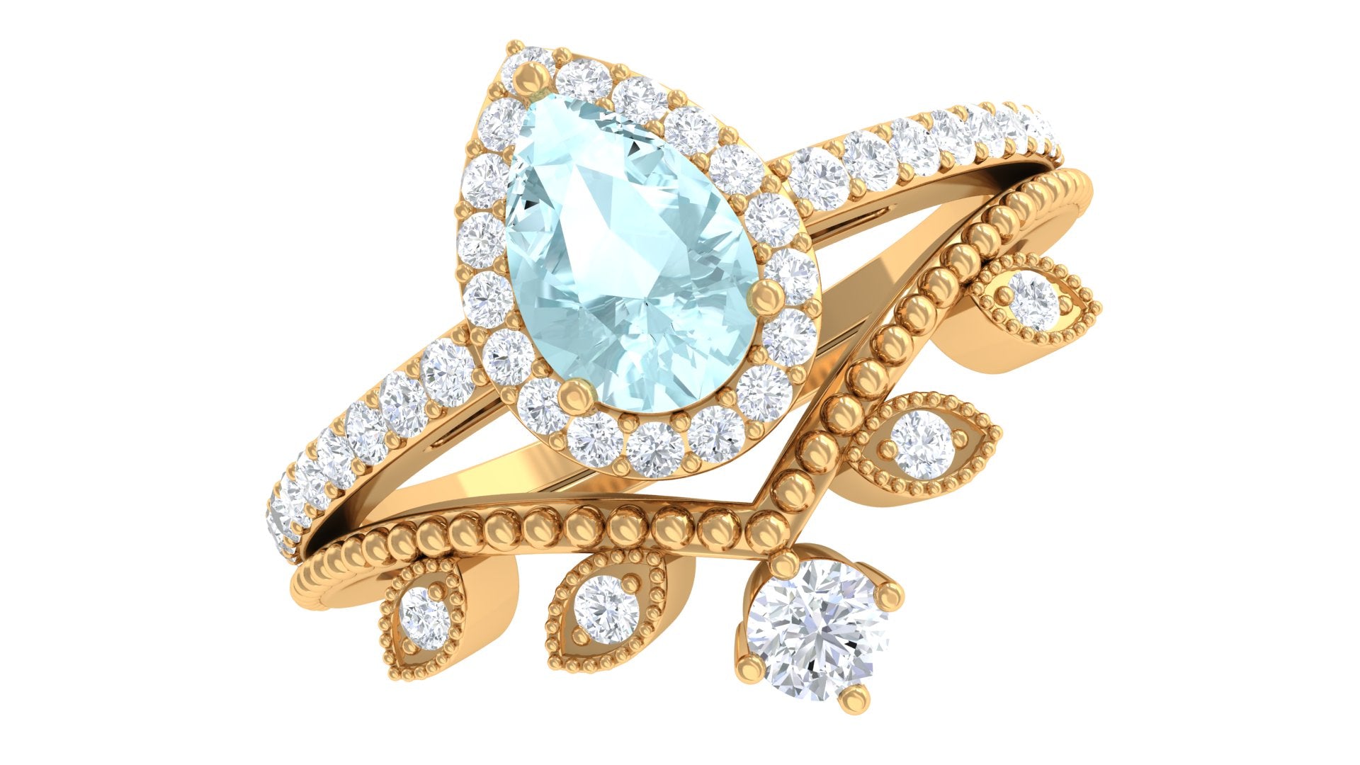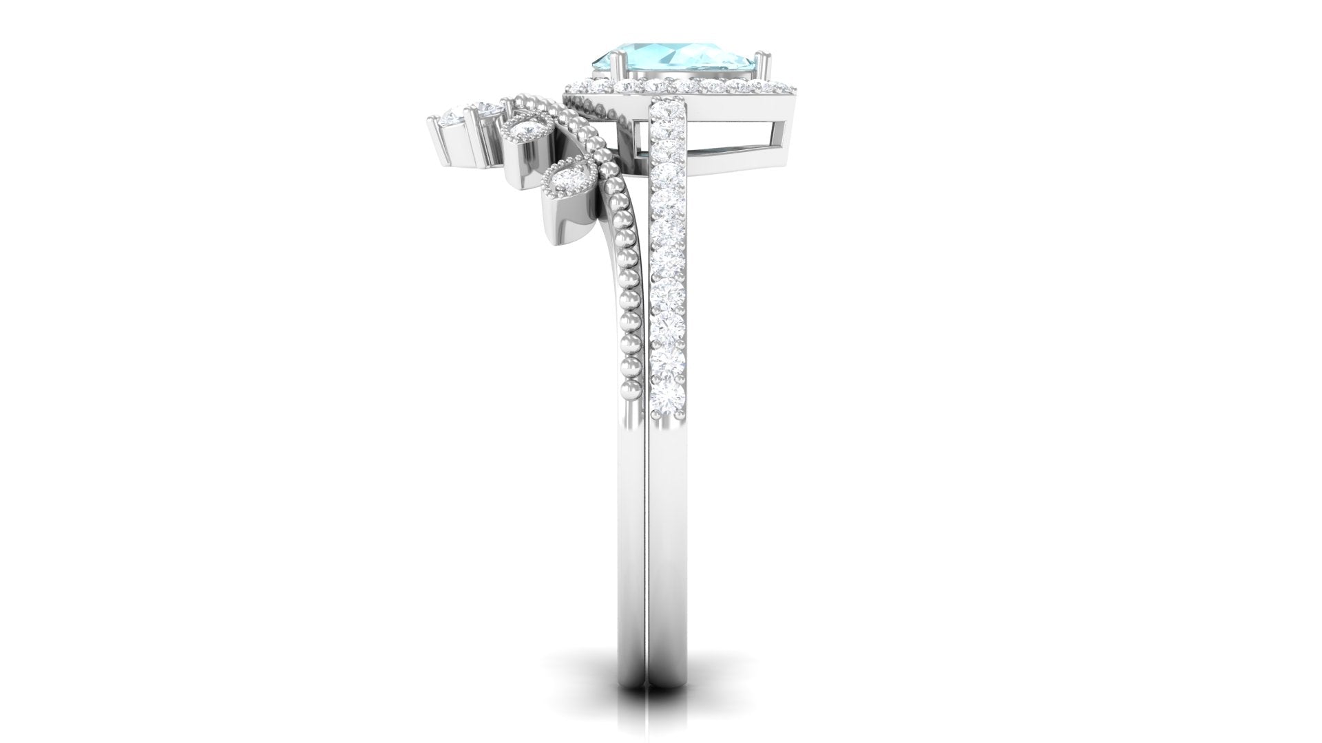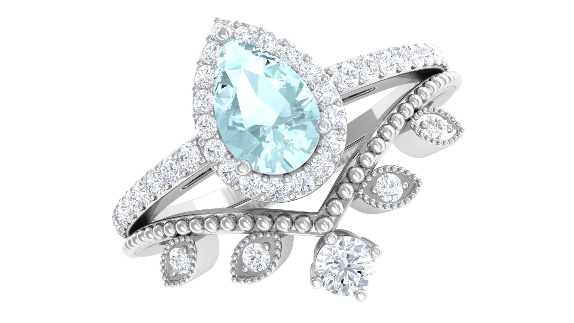 • Sky Blue Topaz Engagement Set: - Featuring two rings (the bride's engagement ring and wedding ring) complementing each other. Our sky blue topaz ring for her is often meaningful, more classic, and stylish, introducing dazzling halo patterns, and embellishments. Each set is crafted to captivate the hearts of onlookers, creating a dazzling ensemble for forever-shared moments.