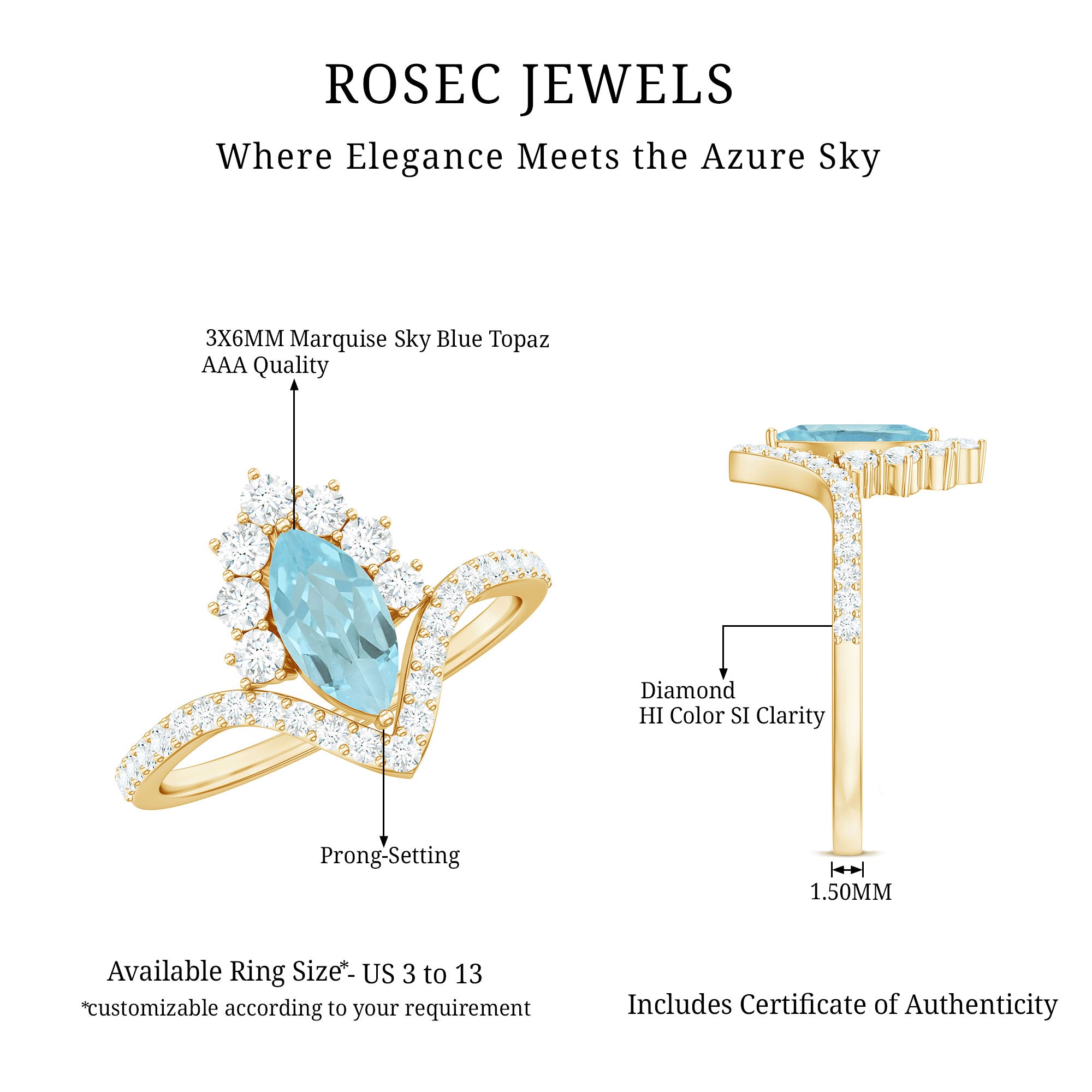 • Sky Blue Topaz Cocktail Rings:- Attention-grabbing engagement ring, showcasing the perfect contrast of sky blue topaz gem and diamond accent. Our cocktail wedding bands are crafted with sky blue topaz and also embroidered with moissanite or glistening diamonds for mesmerizing appeal. These rings create a bold statement, and ensure a memorable celebration of your union.