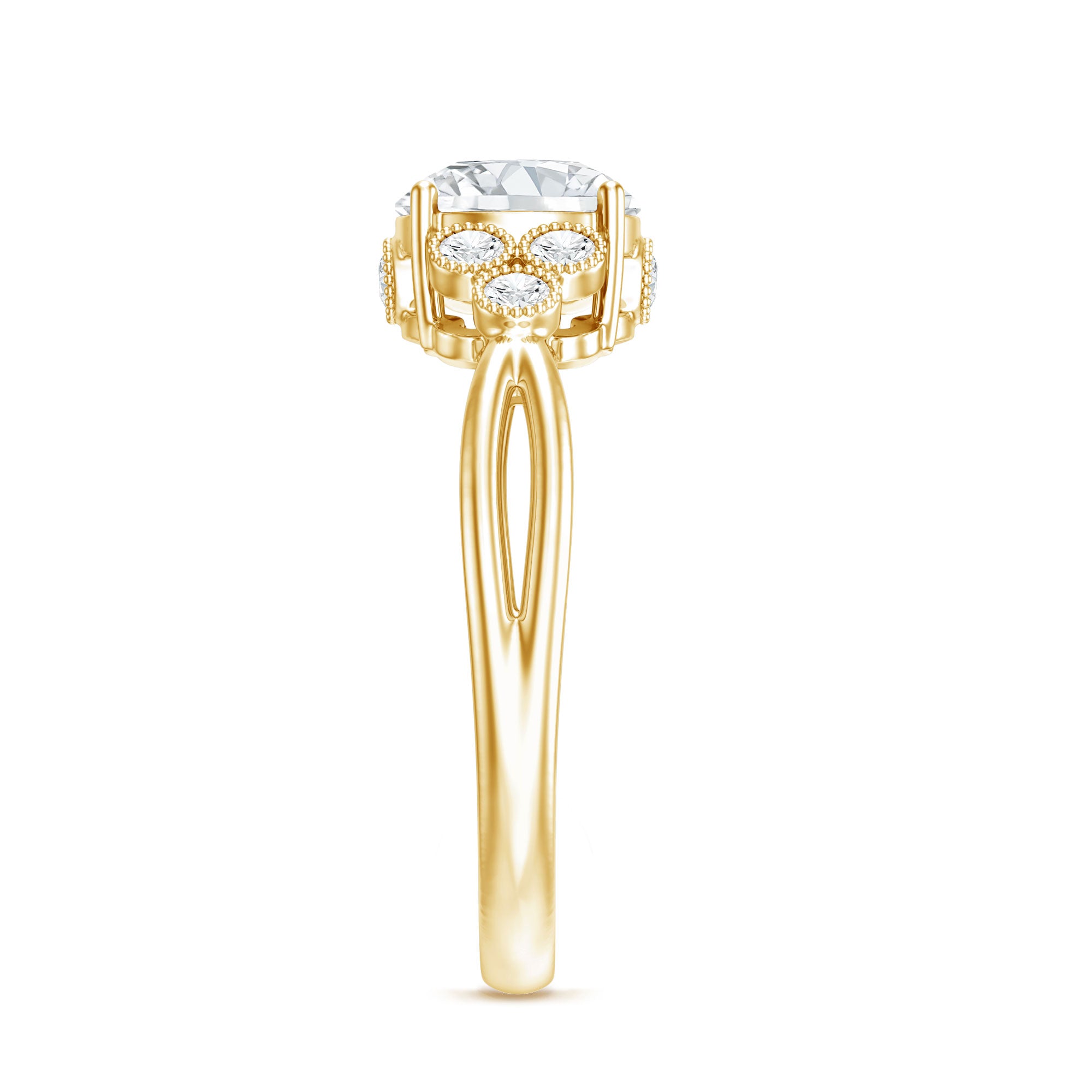Considered extremely flattering and fancy, a Pear Shaped Solitaire Ring features a Center Stone that is characterized by a pointy end and a rounded edge (often termed as teardrop shape). It makes for one of the most Unique Solitaire Engagement Rings out there, all thanks to the beautiful bow-tie effect that it exudes (as the result of light not reaching the middle of the Center Stone).