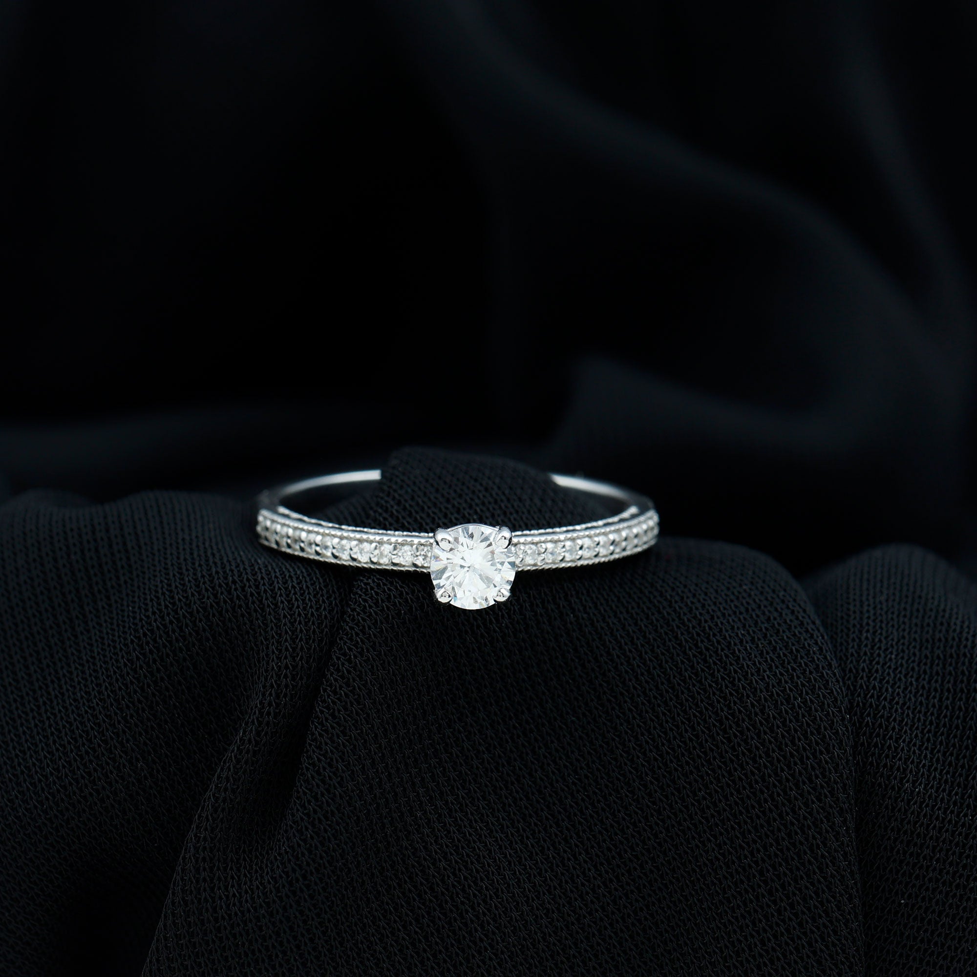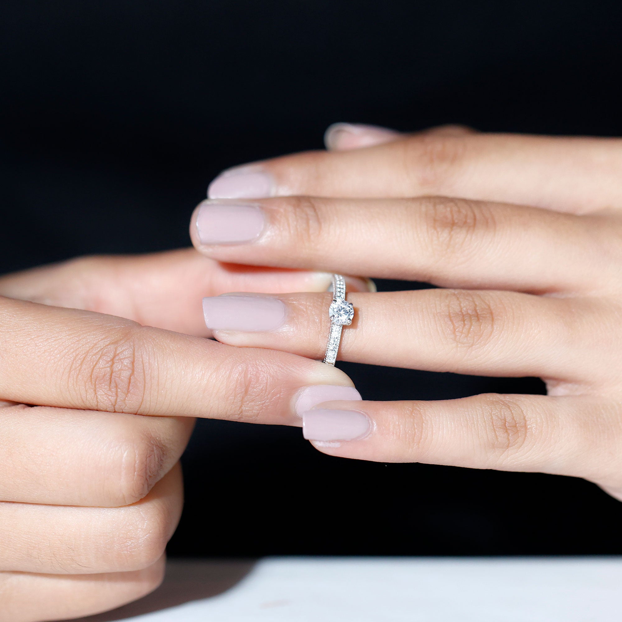 Regarded as the most conventional, timeless, and Simple Solitaire Engagement Ring, this one is fashioned with a Round and symmetrical shape (just like the name suggests). What sets a Round Solitaire Ring apart is the fact that it it exudes most brilliance (more than any other shape) owing to its 58 facets that are strategically arranged to maximize the interaction with light.