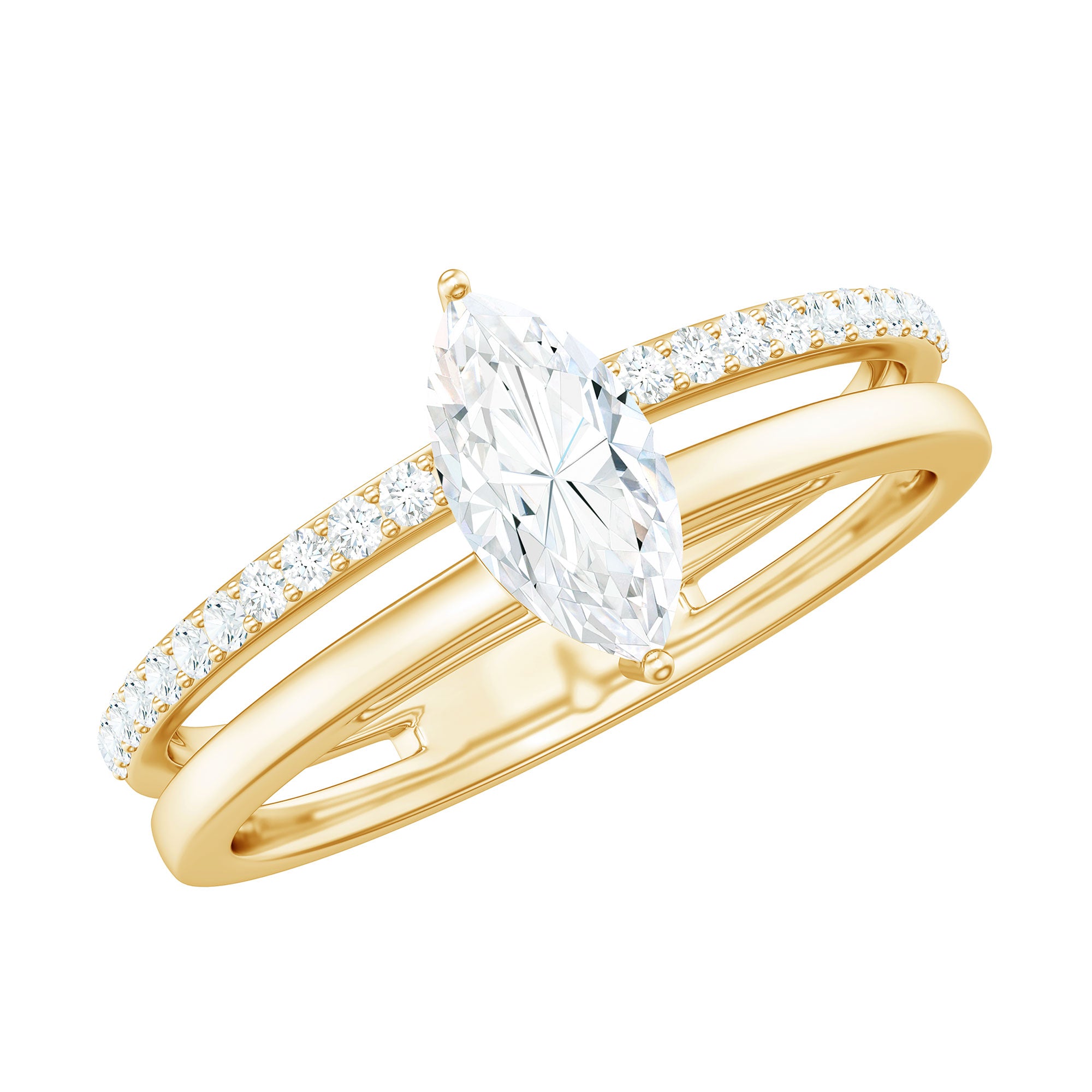 Desired for its fancy look, a Solitaire Marquise Engagement Ring is characterized by a smile-resembling shape that features curved sides and pointed tips. Owing to its elongated shape, it gives off the illusion of a larger looking ring. Moreover, thanks to the arrangement of 58 facets, it also catches the eye with its beautiful bow-tie effect.
