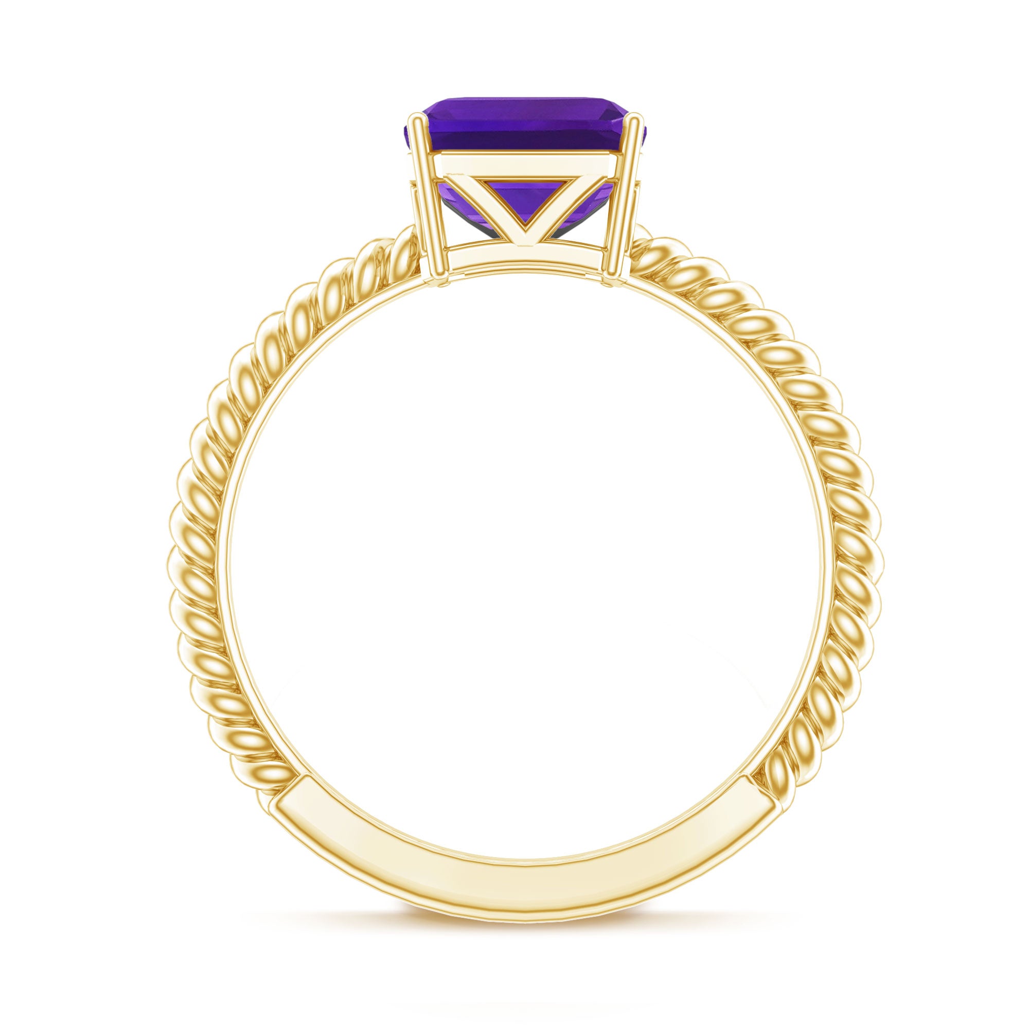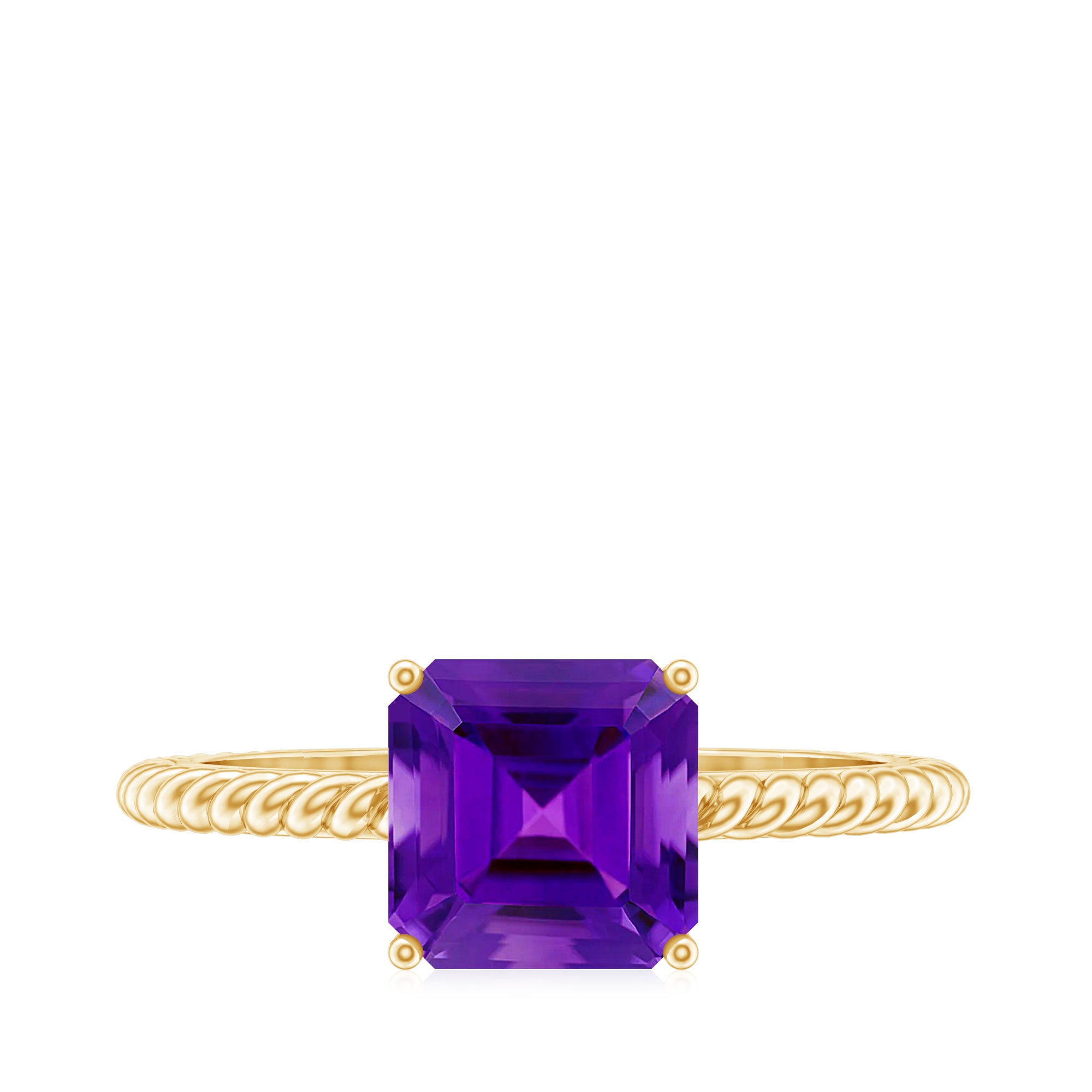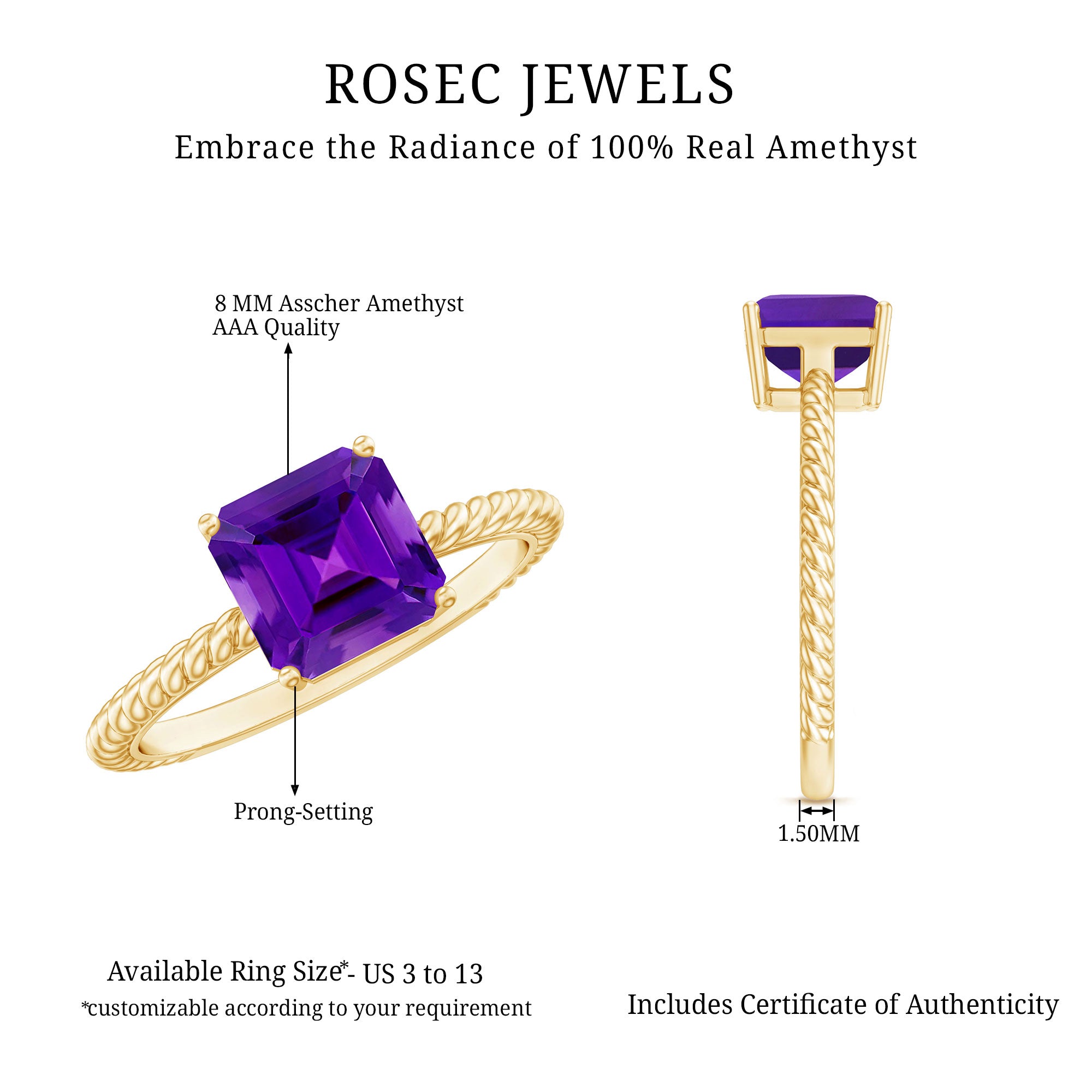 A Single Stone Ring fashioned in Asscher Cut is best defined as a Square Solitaire Engagement Ring that possesses cropped corners, which lends it a more Octagonal Shape. Owing to the strategical arrangement of its 58 facets that showcase a “hall of mirrors’ look, it exudes a vintage Art Deco vibe.