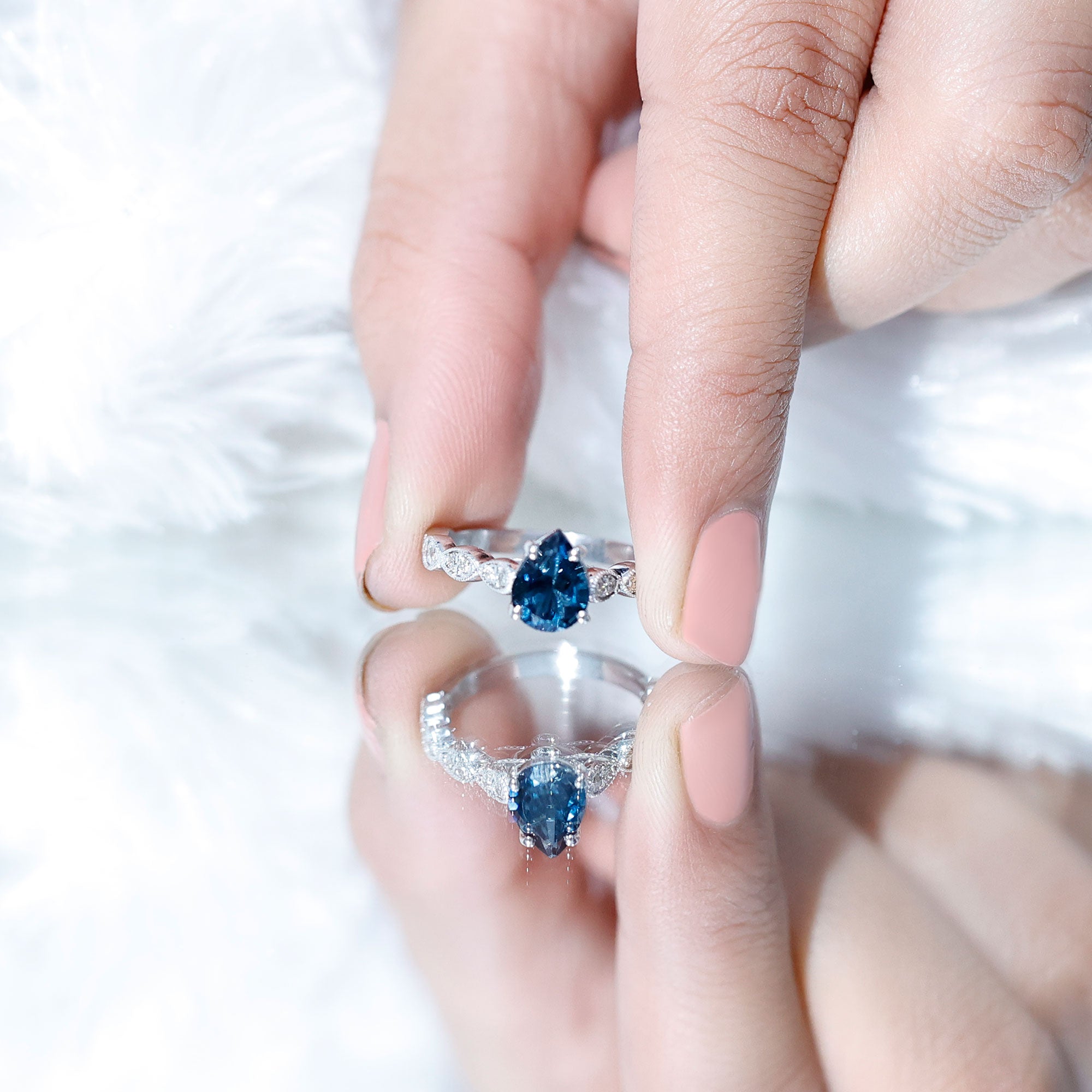 Considered extremely flattering and fancy, a Pear Shaped Solitaire Ring features a Center Stone that is characterized by a pointy end and a rounded edge (often termed as teardrop shape). It makes for one of the most Unique Solitaire Engagement Rings out there, all thanks to the beautiful bow-tie effect that it exudes (as the result of light not reaching the middle of the Center Stone).