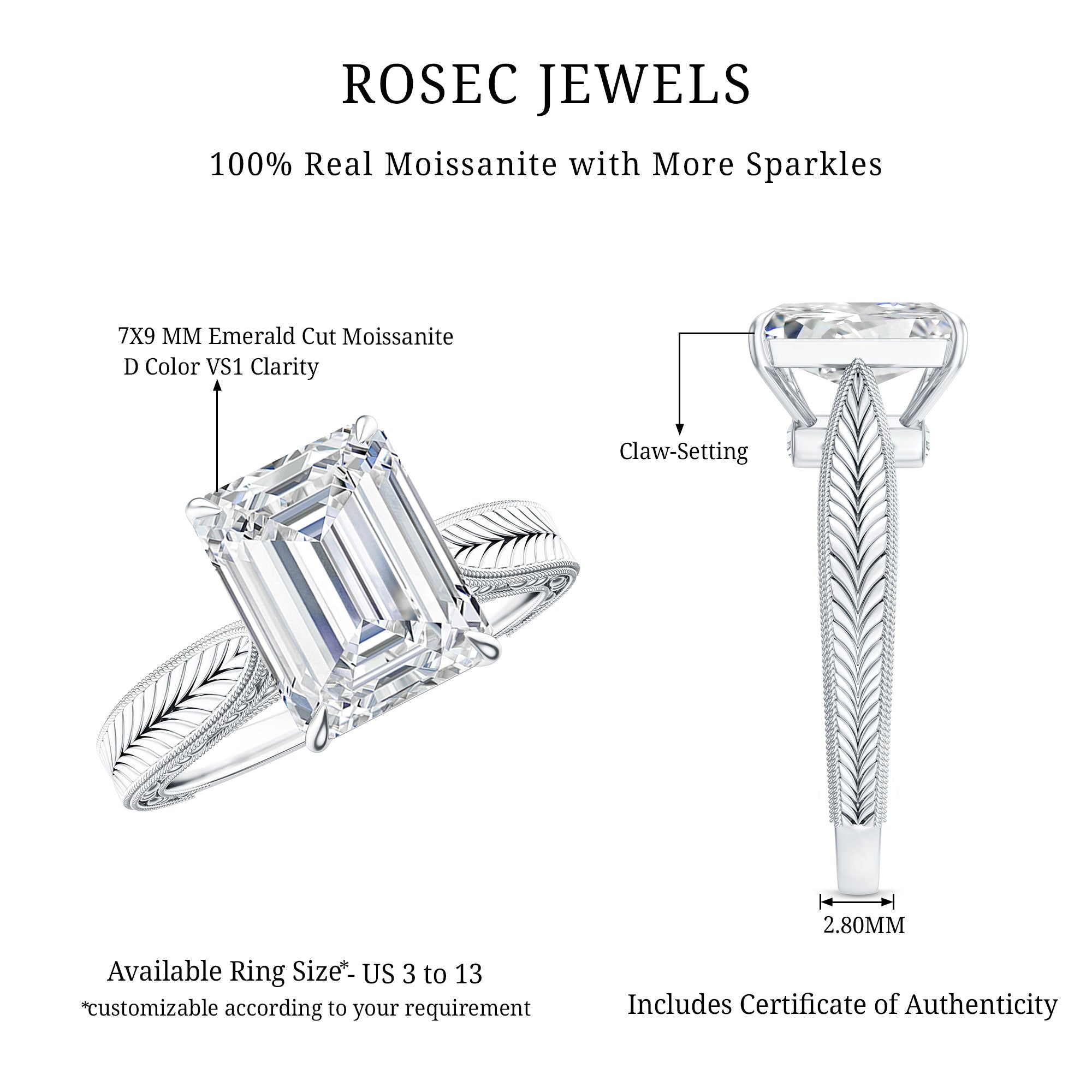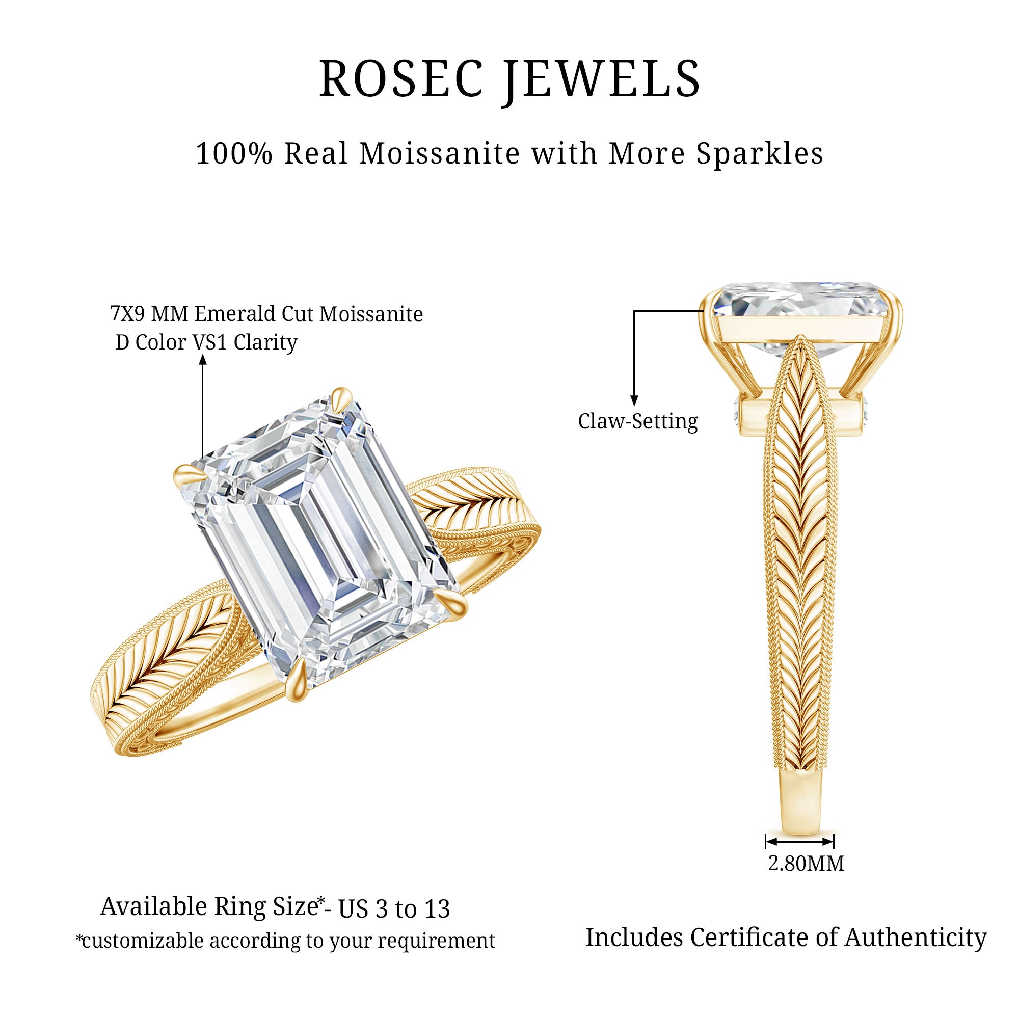 A phenomenal choice among the many Vintage Solitaire Engagement Rings, the ones adorned with Emerald Cut stand out for their oblong, rectangular shape. They are beautified by long, elegant lines and a step-cut faceting, that lend it a unique hall of mirrors effect (which specifically speaks to the couples looking for something grand and unique).