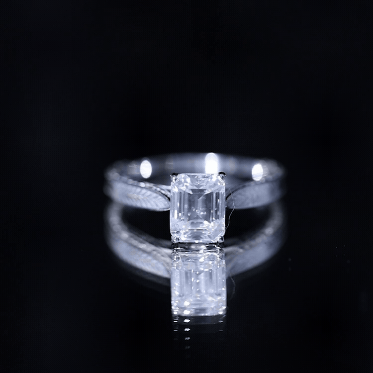 A Single Stone Ring fashioned in Asscher Cut is best defined as a Square Solitaire Engagement Ring that possesses cropped corners, which lends it a more Octagonal Shape. Owing to the strategical arrangement of its 58 facets that showcase a “hall of mirrors’ look, it exudes a vintage Art Deco vibe.