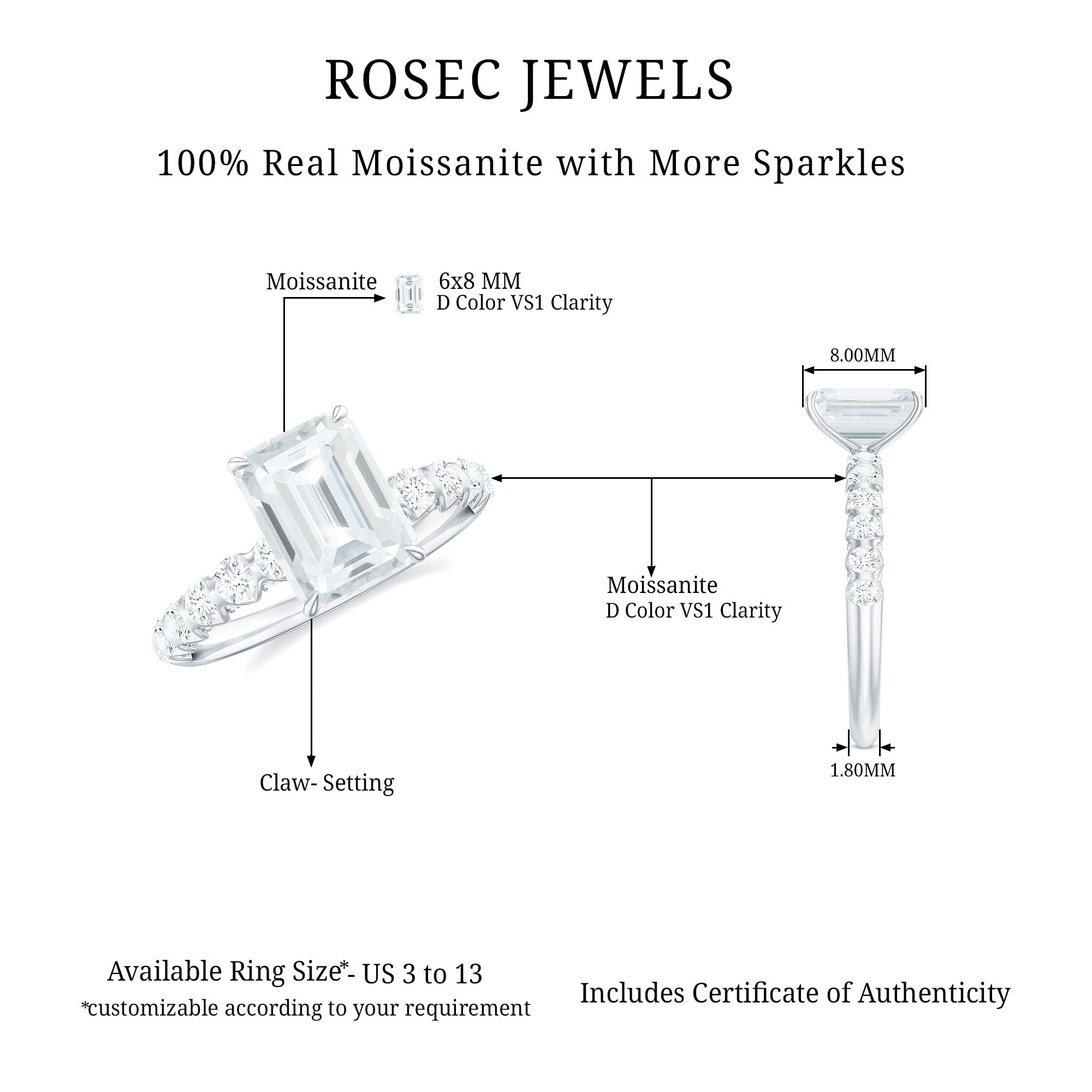 Besides that, the price is also dictated by your choice of Center Stone. While a Solitaire Ring embellished with Diamond or Precious Gemstone would be pricier, a semi-precious gemstone or Moissanite Solitaire Engagement Ring makes for a more pocket-friendly choice.