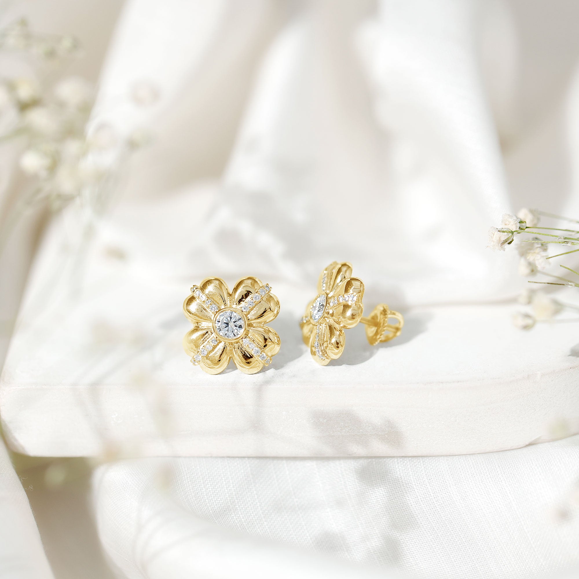 Floral Studs: Bring nature's elegance to your style with floral stud earrings. Delicate blooms add a feminine touch, making them a unique and charming accessory choice.
