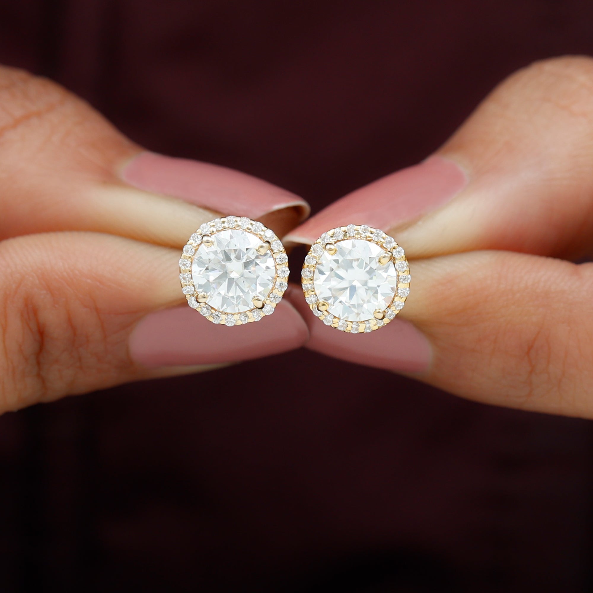 • Halo Studs: Instantly elevate your style with halo stud earrings, featuring a circle of gems that enhances the center stone, creating a dazzling effect.