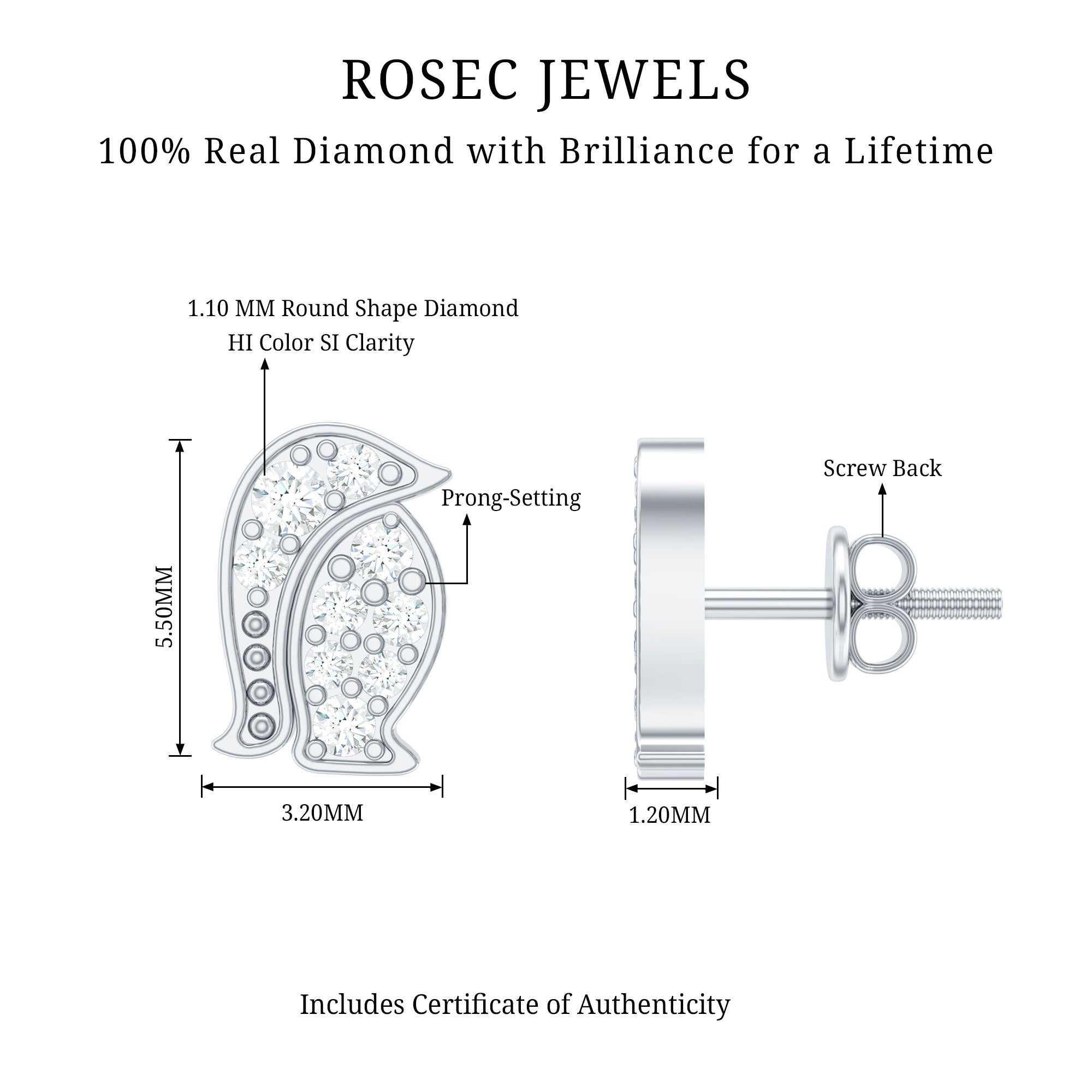 Exquisite Quality: Rosec Jewels is synonymous with exquisite quality, ensuring each pair is crafted with precision for a flawless finish.