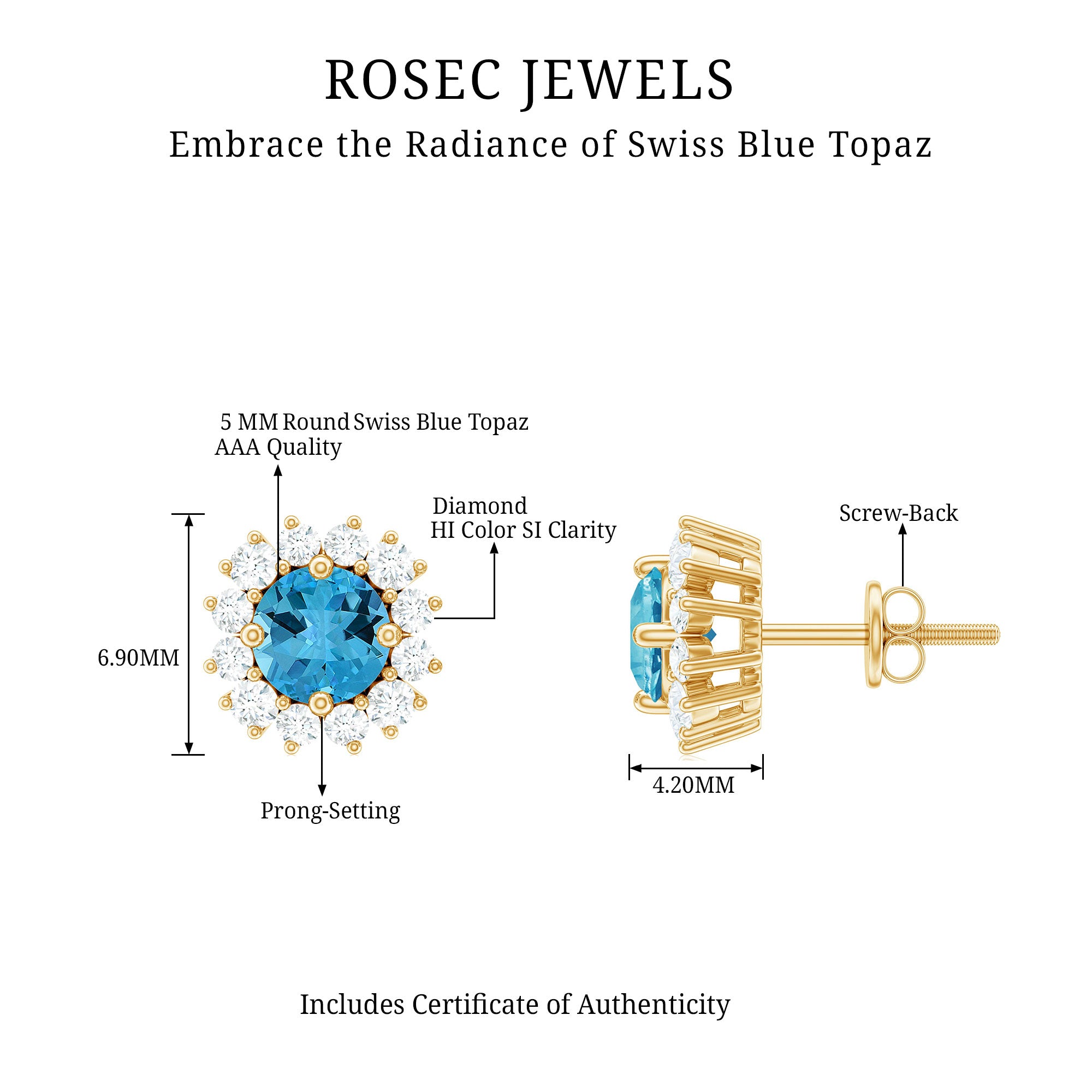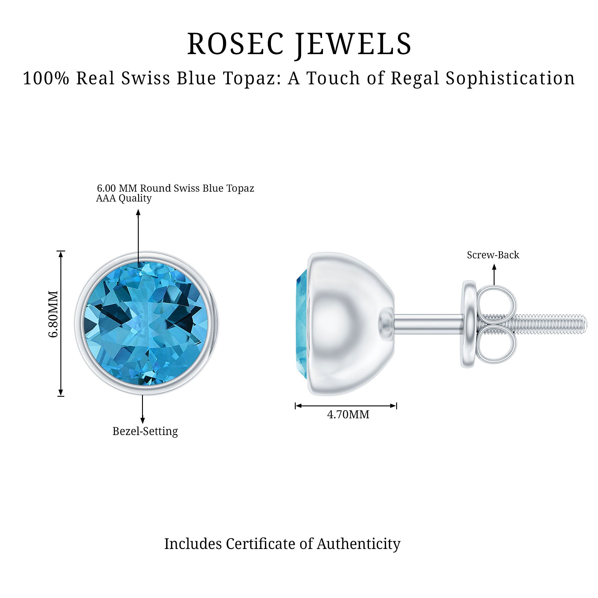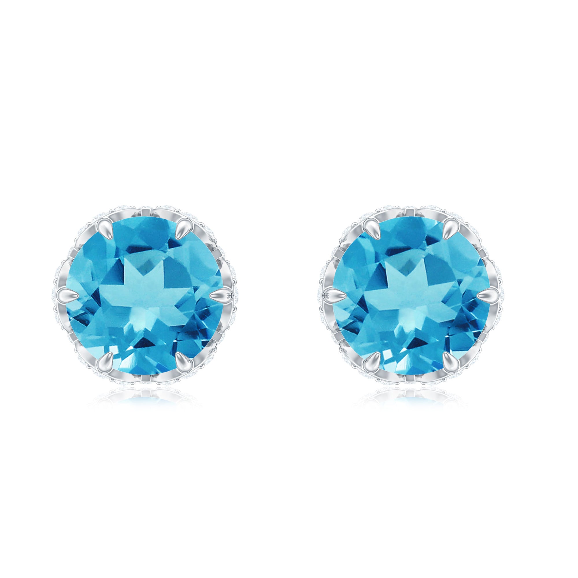 The shape of Swiss Blue Topaz Earrings ranges from a classic round, oval, baguette to a profound princess and marquise cut.